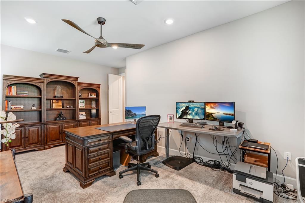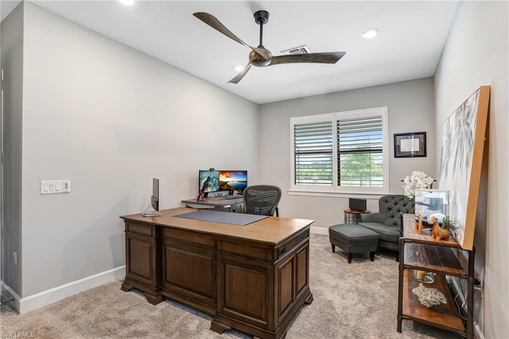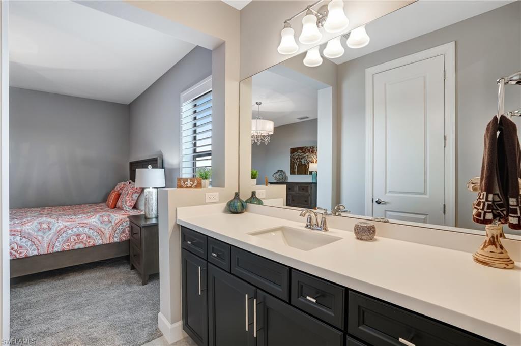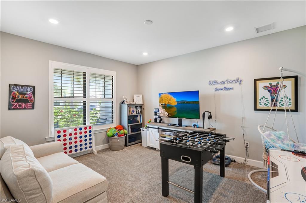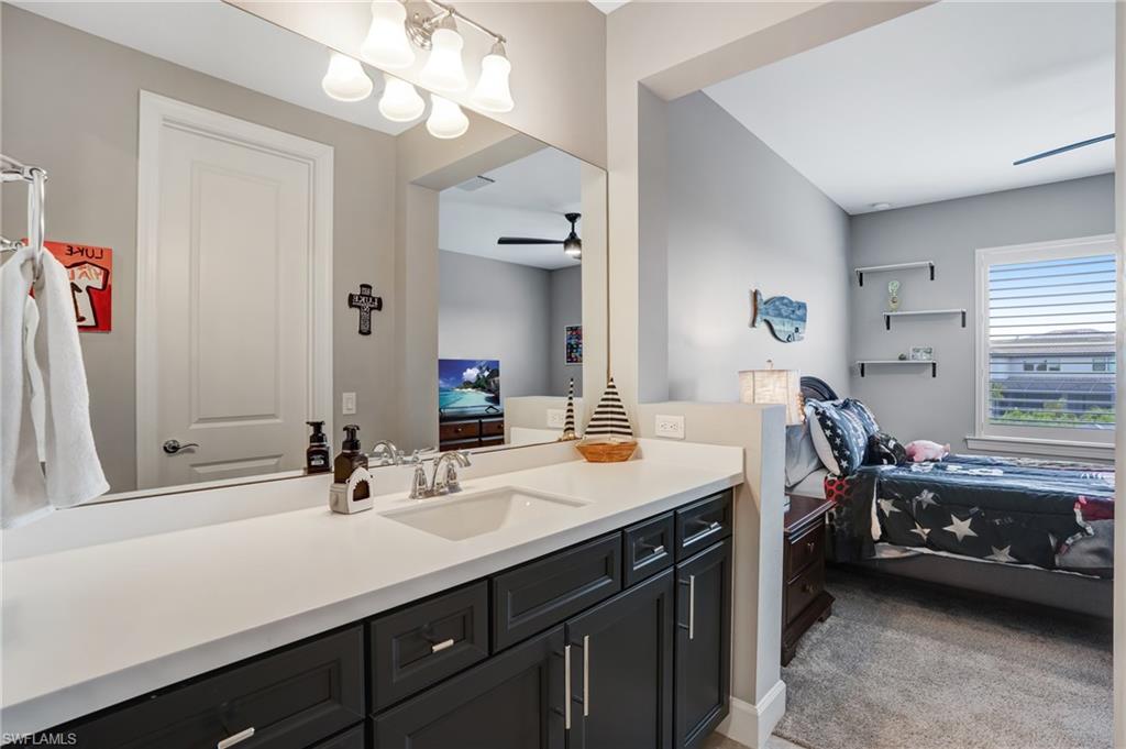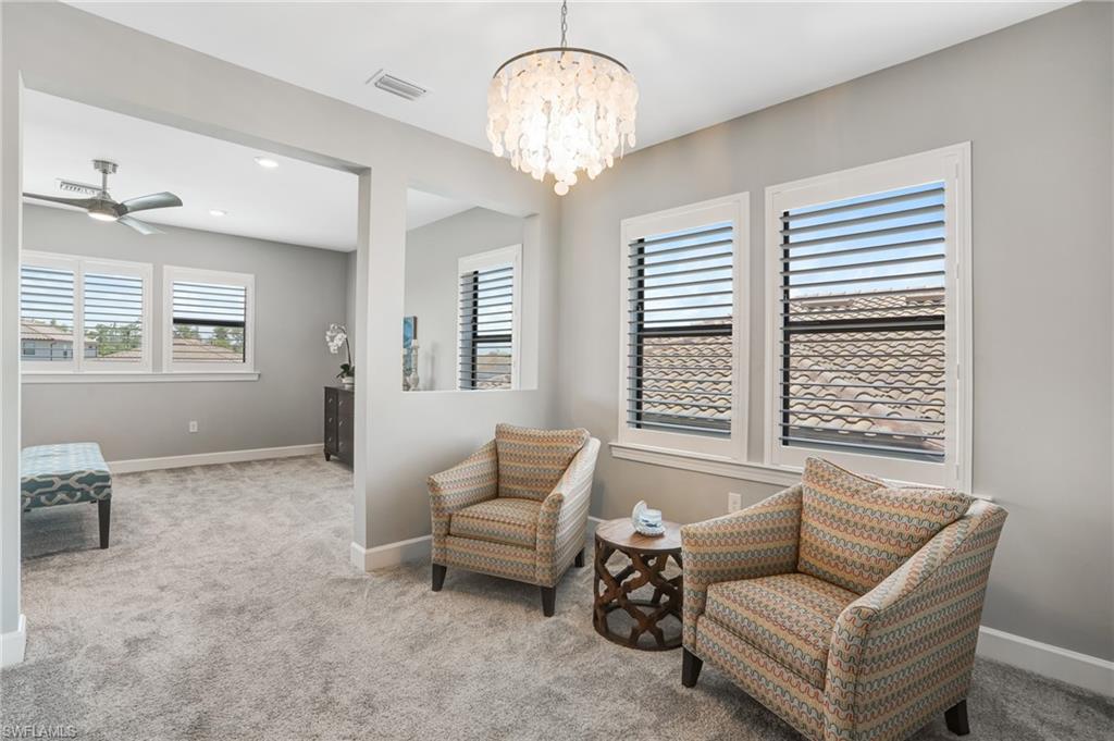 Live large, live beautifully, and live the SWFL lifestyle—welcome to this stunning, customized Heatherton home in the resort-style community of The Place at Corkscrew. Designed with elevated finishes and modern flexibility, this spacious floor plan offers room for everyone and everything, with 4 bedrooms, a game room, a den, and generous walk-in closets throughout. Inside, you’ll find upgraded trim work, designer lighting, plantation shutters, and thoughtful touches like an oversized drop zone and a showstopping 2-story accent wall in the great room. The open kitchen impresses with quartz countertops, built-in KitchenAid appliances, upgraded cabinetry, a walk-in pantry, and a massive island that anchors the space. Step outside and embrace the Florida lifestyle with a custom heated saltwater pool and spa featuring LED GlowBrite lighting, a sun shelf, and twin raised sheer waterfalls—all framed by a large covered lanai, perfect for golden-hour relaxation or entertaining. There's even a bathroom that doubles as a pool bath and rough-ins for your future outdoor kitchen. Set on a generously sized lot with 40-foot driveway setbacks and a 3-car garage with epoxy flooring and added storage, this home delivers both luxury and function. The Place at Corkscrew offers an unmatched lifestyle, featuring a full-service restaurant and bar, a resort pool with a 100-foot water slide and splash pad, a fitness center, café, sports courts, and a genuine sense of community connection. Ideally located in the heart of Estero, The Place at Corkscrew offers convenient access to everything Southwest Florida has to offer. You’re just minutes from I-75, top-rated schools, shopping and dining at Miromar Outlets and Coconut Point, and a short drive to Southwest Florida International Airport, white-sand Gulf beaches, and vibrant downtown Naples. Whether you're commuting, jet-setting, or enjoying a beach day, this location puts you close to it all.