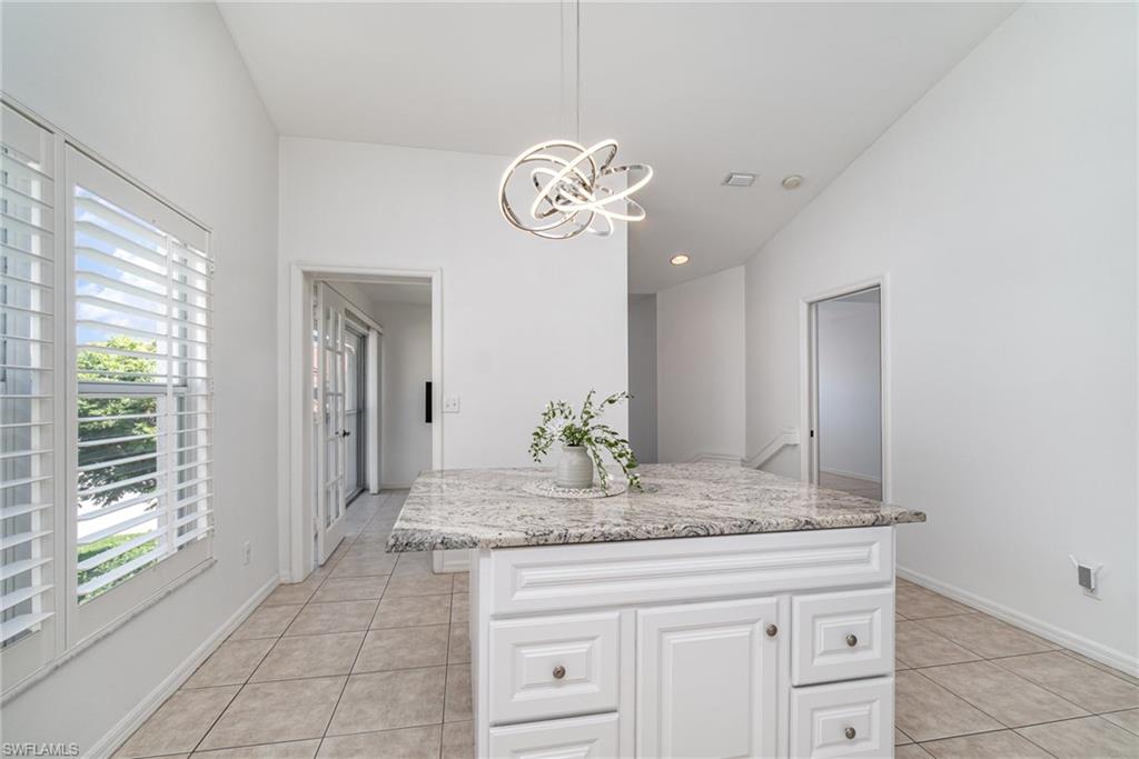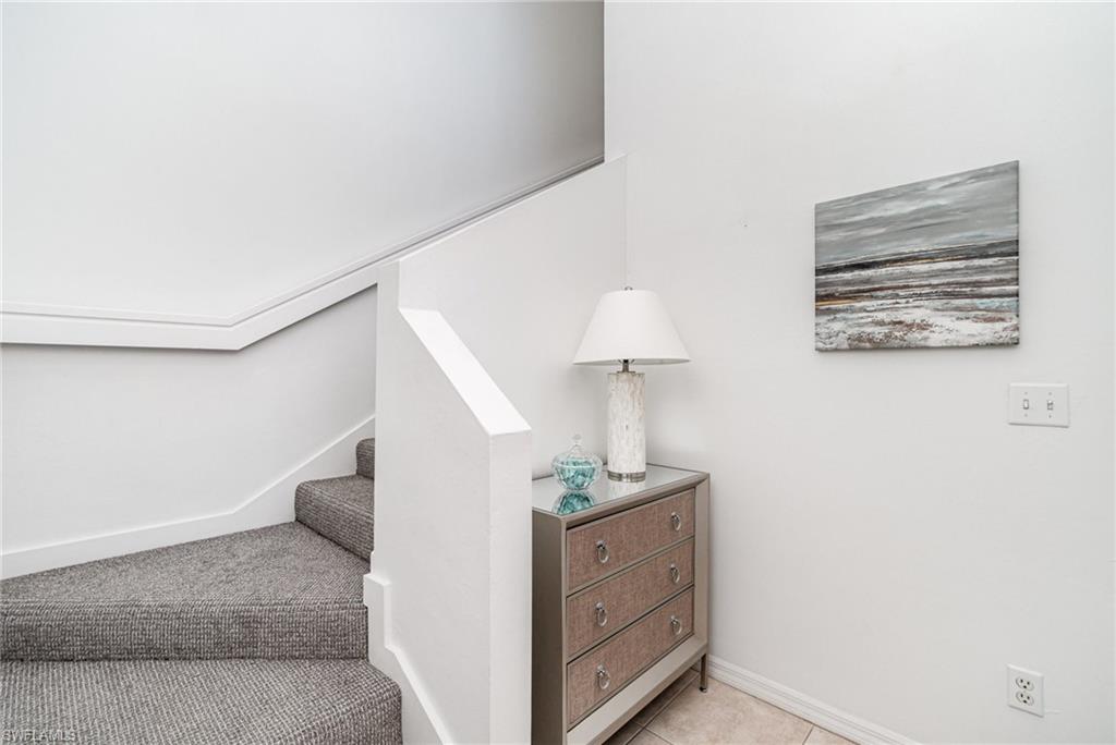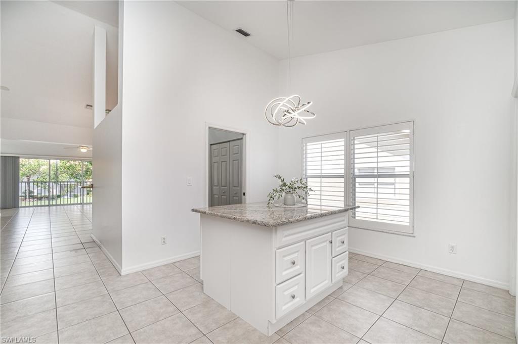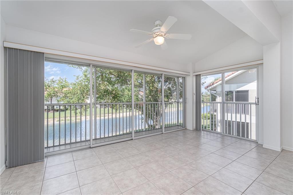 Experience the convenience of North Naples living in this spacious second-floor end-unit, offering extra privacy and an abundance of natural light. From the moment you arrive, you’ll be greeted by a lush, private courtyard entry—an inviting and tranquil space that sets the tone for this serene home. The thoughtfully designed layout includes three bedrooms plus a flexible enclosed den/office, so you’ll have plenty of room to create a home you can live in for years to come. The open-concept kitchen features granite counters and stainless steel appliances, while the addition of a secondary island doubles as a prep space, serving area, or casual dining spot. The island is also freestanding, giving you the option to remove it altogether to suit your style. Tile floors flow throughout the home, creating a clean and cohesive look that is easy to maintain. From the enclosed lanai you can take in the long, peaceful lake view—a perfect space for relaxing evenings or weekend lounging with the option of opening up the sliders to enjoy the fresh air. Recent updates—including a newer A/C and water heater—add to the home's value and efficiency while the 2018 roof replacement offers peace of mind for years to come. As part of the amenity-rich Carlton Lakes community, you’ll also have access to a spacious clubhouse complete with a fitness center, tennis courts, and a resort-style pool with lap lanes. Meandering walking trails and mature landscaping add to the community’s charm and just outside the main entrance of the community is the famous Seed to Table grocery store. Whether you're seeking a year-round residence or a seasonal escape, this well-appointed coach home brings the best of Naples to your doorstep.