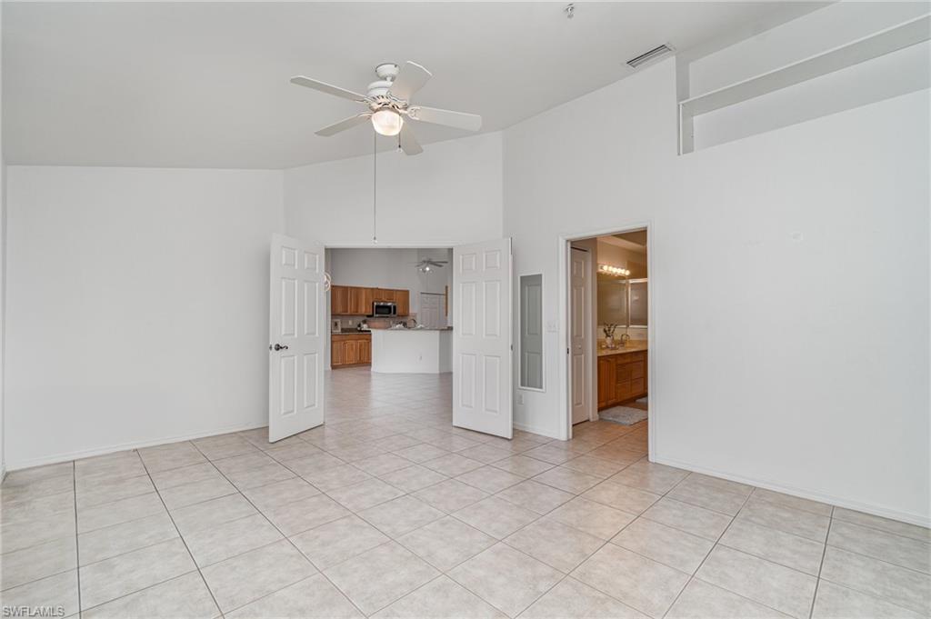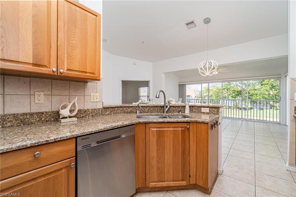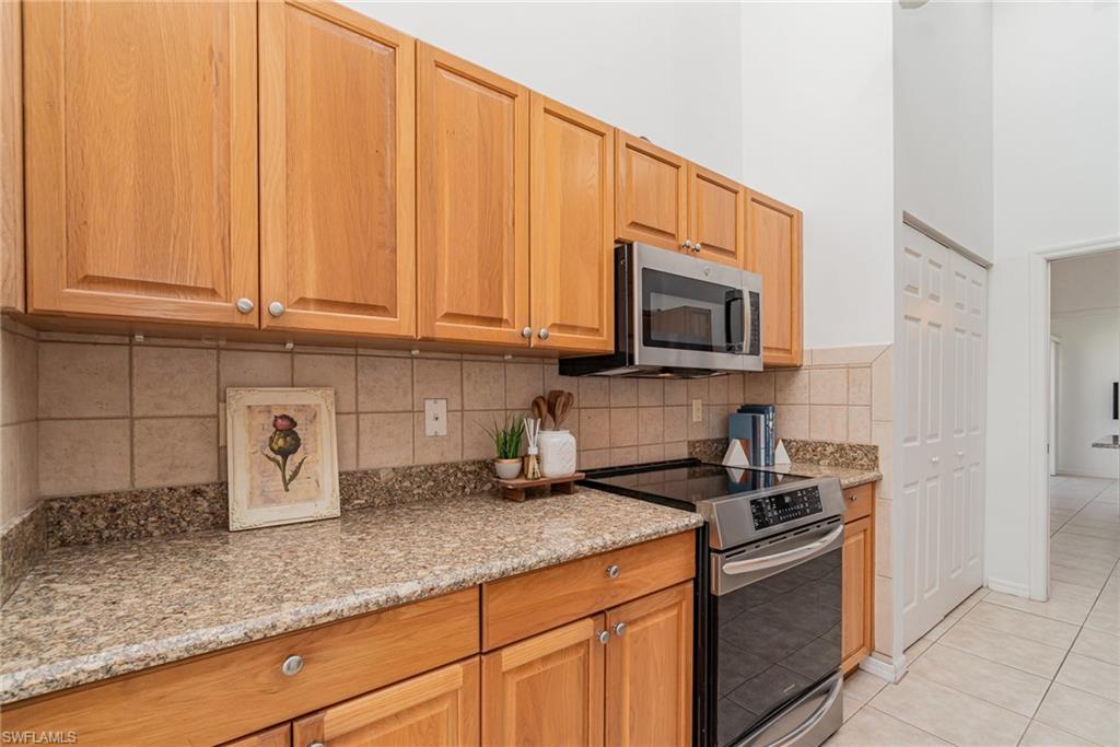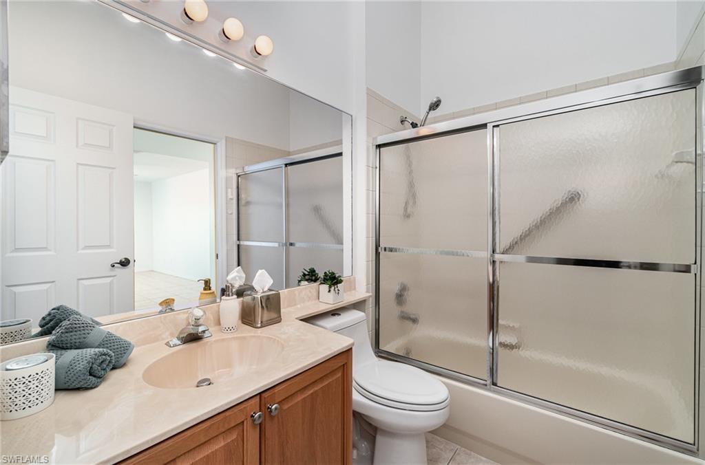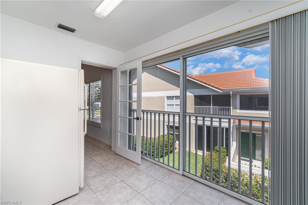 Experience the convenience of North Naples living in this spacious second-floor end-unit, offering extra privacy and an abundance of natural light. From the moment you arrive, you’ll be greeted by a lush, private courtyard entry—an inviting and tranquil space that sets the tone for this serene home. The thoughtfully designed layout includes three bedrooms plus a flexible enclosed den/office, so you’ll have plenty of room to create a home you can live in for years to come. The open-concept kitchen features granite counters and stainless steel appliances, while the addition of a secondary island doubles as a prep space, serving area, or casual dining spot. The island is also freestanding, giving you the option to remove it altogether to suit your style. Tile floors flow throughout the home, creating a clean and cohesive look that is easy to maintain. From the enclosed lanai you can take in the long, peaceful lake view—a perfect space for relaxing evenings or weekend lounging with the option of opening up the sliders to enjoy the fresh air. Recent updates—including a newer A/C and water heater—add to the home's value and efficiency while the 2018 roof replacement offers peace of mind for years to come. As part of the amenity-rich Carlton Lakes community, you’ll also have access to a spacious clubhouse complete with a fitness center, tennis courts, and a resort-style pool with lap lanes. Meandering walking trails and mature landscaping add to the community’s charm and just outside the main entrance of the community is the famous Seed to Table grocery store. Whether you're seeking a year-round residence or a seasonal escape, this well-appointed coach home brings the best of Naples to your doorstep.