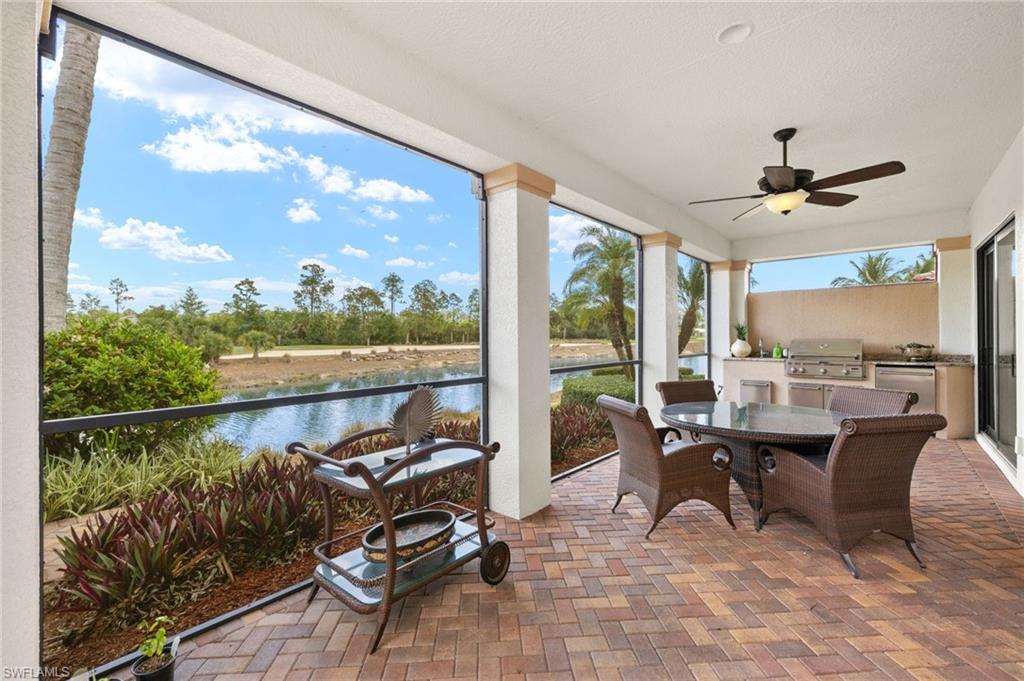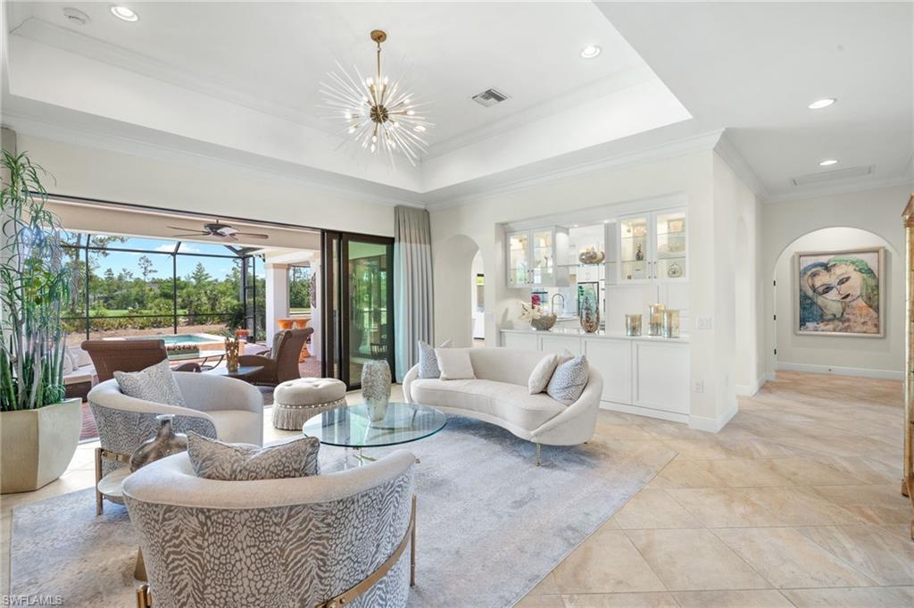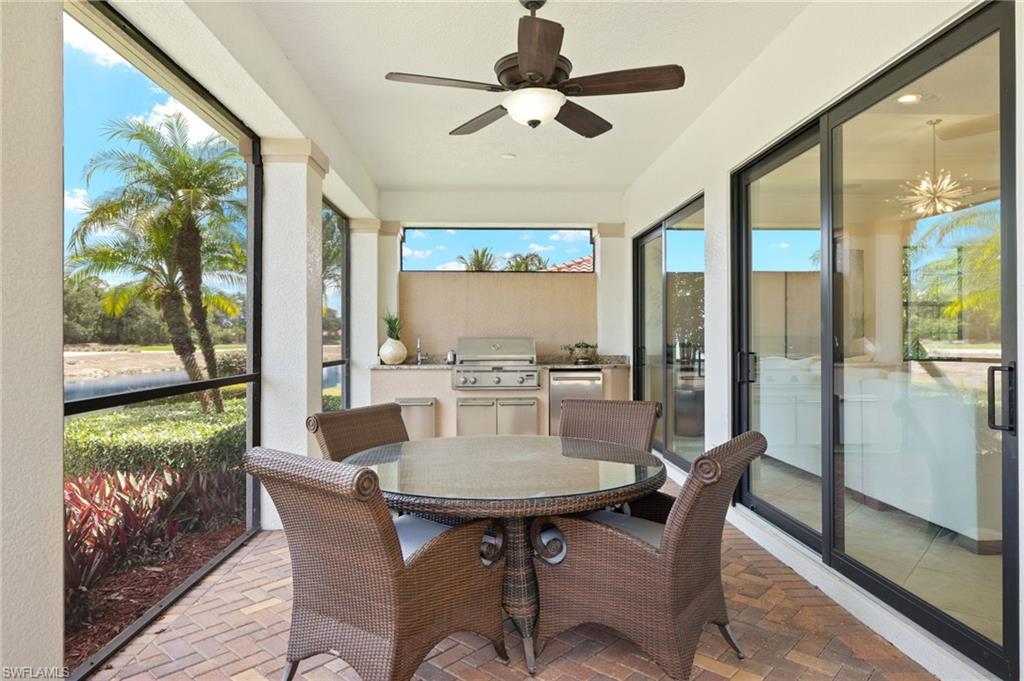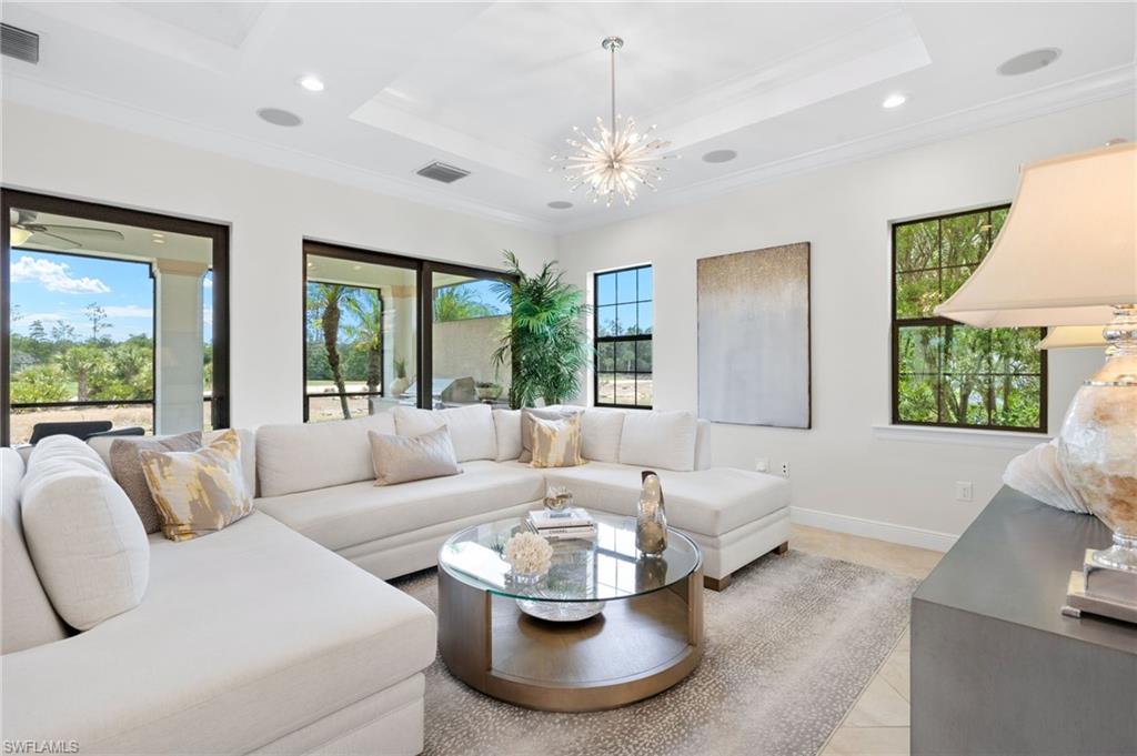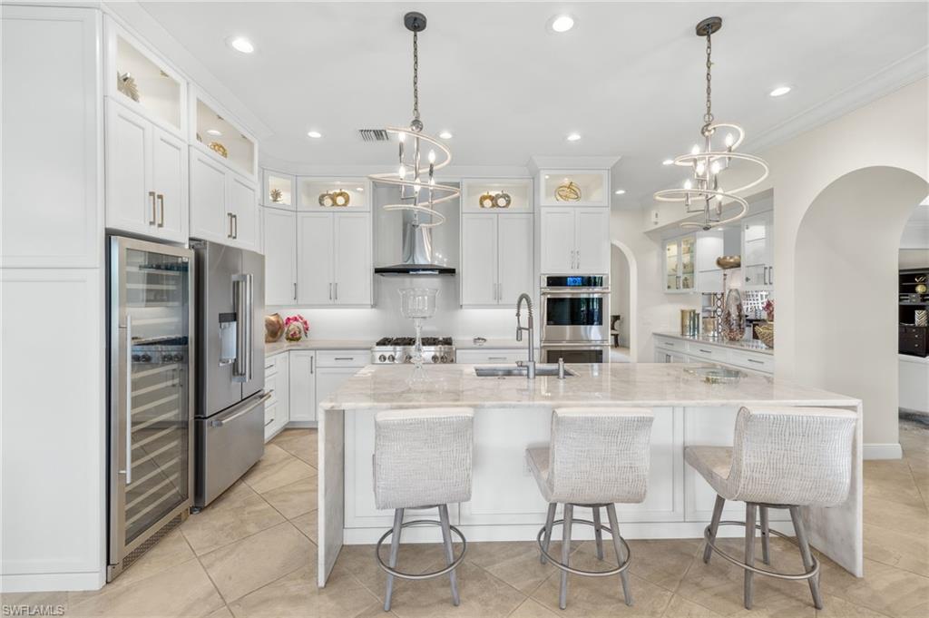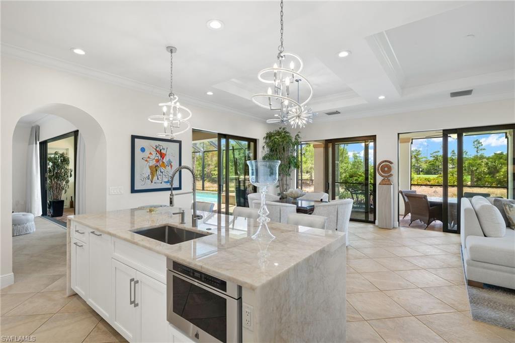 Gorgeous updated kitchen and stunning lake and golf course views! Marsala is a luxury golf course community located at The Ritz-Carlton Naples, Tiburon. This meticulously maintained property offers just under 4,000 square feet of luxurious living space. The gorgeous updated kitchen with gas cooktop, large wine refrigerator and an oversized quartzite waterfall island. The open floor plan flows seamlessly and blends modern design with inviting decor, creating a sophisticated yet welcoming atmosphere. This exceptional home features four spacious bedrooms, four full bathrooms, a den, and three-car garage. Enjoy the outdoor oasis with spacious pool, spa and summer kitchen, equipped with gas grill, sink, and refrigerator, ideal for hosting friends and family. In addition to the beautiful interior, this property features all newer AC units, pool equipment, tankless water heater, and the mini-split AC keeps the three car garage nice and cool. This lovely home represents the epitome of luxury living in one of Tiburon's most sought-after communities. GOLF MEMBERSHIPS are IMMEDAITELY AVAILABLE, but not required. Furniture is negotiable.Tiburon offers 36 holes of Greg Norman-designed championship golf, concierge services, restaurants, a fitness center, spa, tennis, and a private beach shuttle. Tiburon is just 3 miles from Vanderbilt Beach and 1.5 miles from the shops and restaurants at Mercato. Don’t miss the opportunity to make this exceptional home your own!
