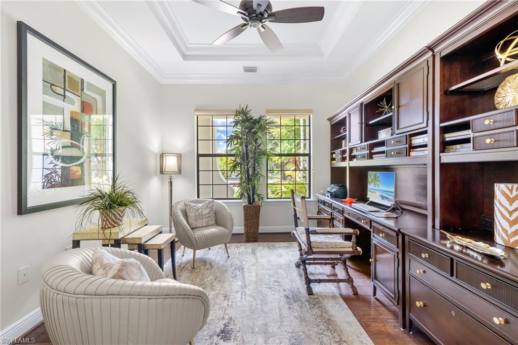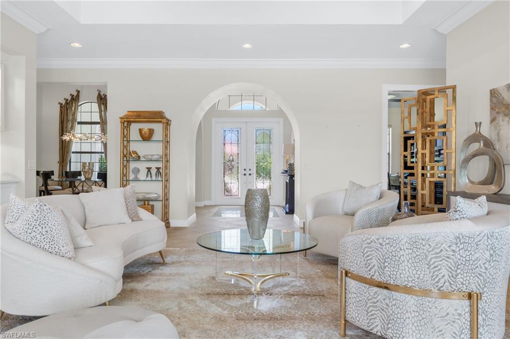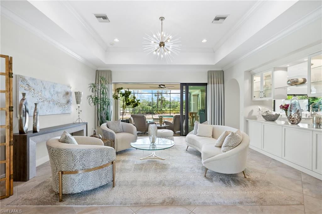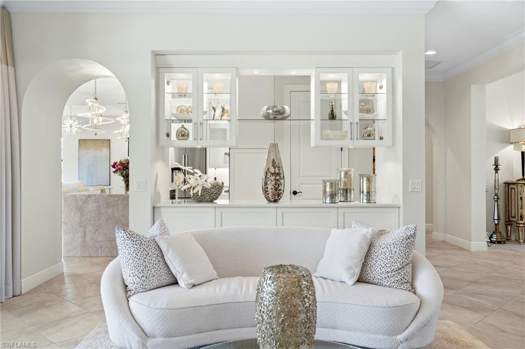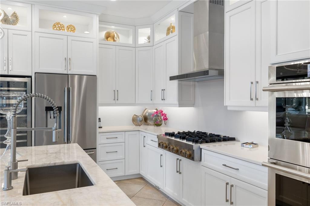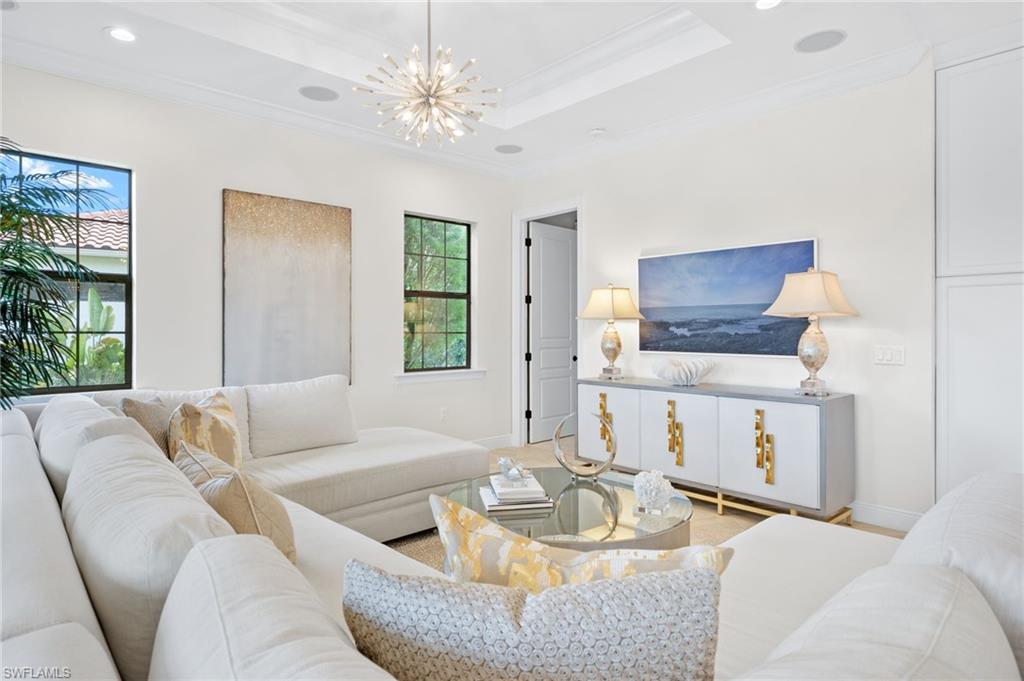 Gorgeous updated kitchen and stunning lake and golf course views! Marsala is a luxury golf course community located at The Ritz-Carlton Naples, Tiburon. This meticulously maintained property offers just under 4,000 square feet of luxurious living space. The gorgeous updated kitchen with gas cooktop, large wine refrigerator and an oversized quartzite waterfall island. The open floor plan flows seamlessly and blends modern design with inviting decor, creating a sophisticated yet welcoming atmosphere. This exceptional home features four spacious bedrooms, four full bathrooms, a den, and three-car garage. Enjoy the outdoor oasis with spacious pool, spa and summer kitchen, equipped with gas grill, sink, and refrigerator, ideal for hosting friends and family. In addition to the beautiful interior, this property features all newer AC units, pool equipment, tankless water heater, and the mini-split AC keeps the three car garage nice and cool. This lovely home represents the epitome of luxury living in one of Tiburon's most sought-after communities. GOLF MEMBERSHIPS are IMMEDAITELY AVAILABLE, but not required. Furniture is negotiable.Tiburon offers 36 holes of Greg Norman-designed championship golf, concierge services, restaurants, a fitness center, spa, tennis, and a private beach shuttle. Tiburon is just 3 miles from Vanderbilt Beach and 1.5 miles from the shops and restaurants at Mercato. Don’t miss the opportunity to make this exceptional home your own!