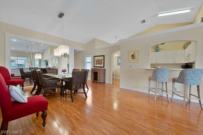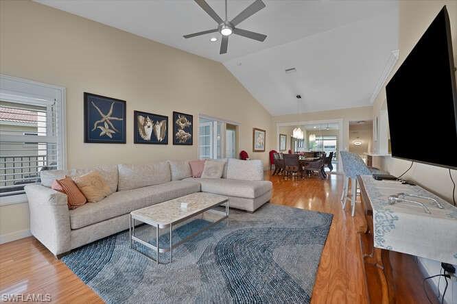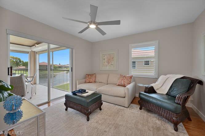 Gorgeous lake view in the heart of North Naples! This 2 bed plus den, 2 bath garage coach home in Huntington Lakes is being sold TURNKEY FURNISHED with upgraded furniture, textiles and artwork! The property boasts a spacious open-concept floorplan with plenty of space for visitors! The den has its own access to the expansive screened-in balcony overlooking the lake. Vaulted ceilings, oversized bedrooms, eat-in kitchen plus formal dining space have this coach home living like a single-family property. Huntington Lakes is located just 10 minutes from the Gulf Beaches, 20 minutes to RSW, 20 minutes to Downtown Naples and less than 5 minutes to Seed to Table! The community has tennis, clubhouse, pool and more!