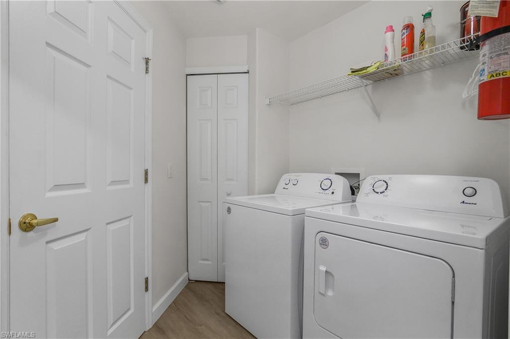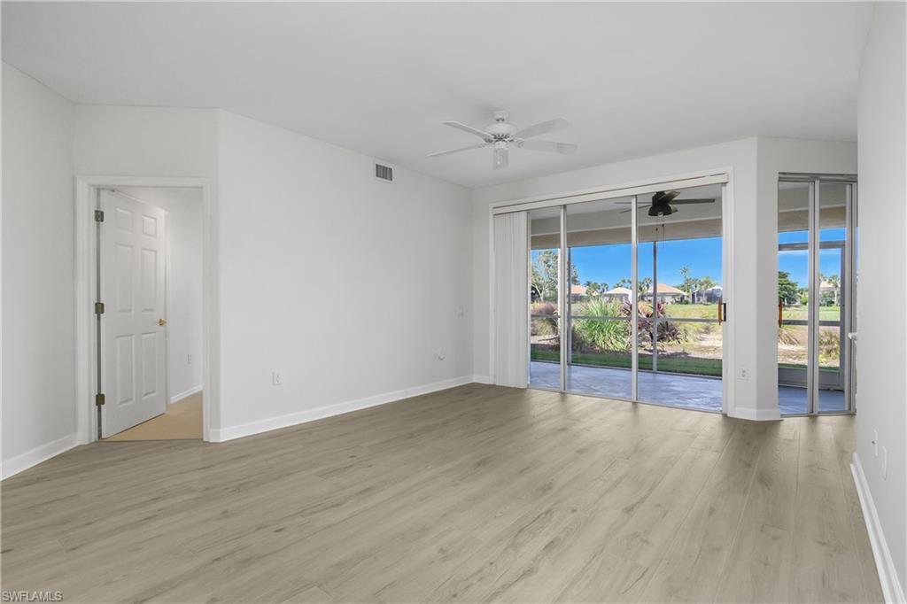 STUNNING GOLF COURSE VIEWS from this first floor 2+ den, 2 bath coach home in the sought after gated, bundled golf community of Copperleaf at the Brooks. This freshly painted coach with all new luxury vinyl flooring, newer high end kitchen including 4 year new appliances, remodeled master bath along with new carpet in the owner's suite with two closets is MOVE IN READY! Other features include a Storm Smart hurricane screen installed in 2018, allowing you to leave the lanai furniture in the lanai all year long and have hurricane protection, and an epoxied garage floor. New roof 2019 and new HVAC in 2021. You will love the location, close to shopping, dining, SWFL Int'l Airport, and the white sand beaches of SW Florida. Copperleaf is a premier bundled golf community with the membership deeded to the real estate so when you close on your home, you are an immediate golfing member. The state of the art new clubhouse offers indoor and outdoor dining and bars, community rooms, and a classy proshop. Wait! There is more! Ospreys is a separate outdoor restaurant and bar close to the Bocce courts for a fun afternoon. You can also enjoy tennis, fitness center, library, card games and more. Private membership to the Commons Club is optional and offers yet a third restaurant, pickle ball, fitness center, events along with a private beach club. See membership brochure in supplements. Come and see for yourself why Copperleaf is a fabulous community.