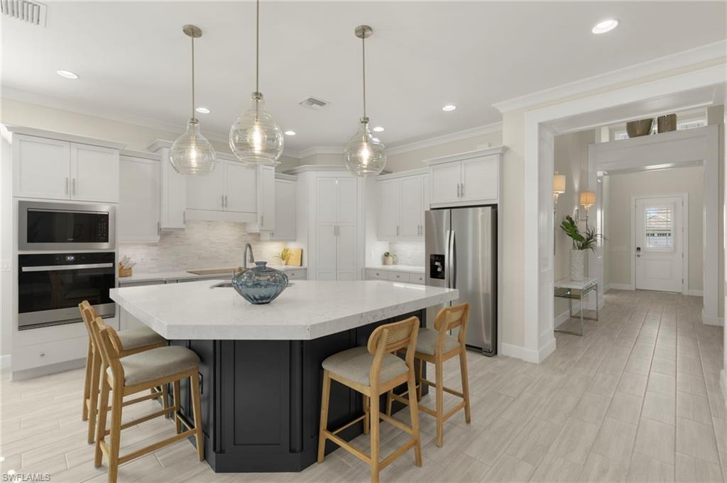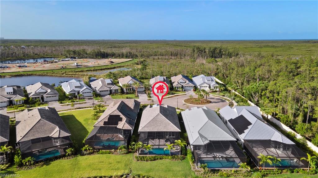 Move-In Ready | Furnished | Built in 2024 | Flood Zone X (No Flood Insurance Required) Welcome to your private sanctuary in the highly sought-after Isles of Collier Preserve! This stunning Minto “WISTERIA” home (3 Bedrooms + Den | 2.5 Bathrooms | 2-Car Garage), built in 2024, is perfectly positioned at the end of a quiet cul-de-sac—offering exceptional privacy and breathtaking long lake views. Set in Flood Zone X, no flood insurance is required, making peace of mind part of the package. Step inside and fall in love with the open, airy layout designed for effortless Florida living. Sunlight pours through expansive windows and sliding glass doors, highlighting the home’s high ceilings, elegant crown molding, and sophisticated finishes. Porcelain plank tile flooring flows throughout, complemented by plantation shutters, soft-close shaker cabinetry, and sleek quartz countertops. The versatile den offers space for a home office, media room, or guest quarters thanks to a pull-out sleeper sofa. But the real showstopper is outside. Disappearing impact-rated sliding doors seamlessly connect the family room to a dramatically expanded lanai, where your private pool, raised spa, and serene long lake views await. A covered outdoor living area features a full summer kitchen, mounted TV, and plenty of space for dining and lounging—ideal for both quiet mornings and vibrant evening entertaining. The sunny open-air portion of the lanai offers ample room for relaxing in the Florida sunshine. This home is being offered fully furnished and truly turnkey—ready for you to move in and start enjoying the Naples lifestyle from day one. Residents of The Isles of Collier Preserve enjoy resort-style amenities including a beautiful clubhouse, state-of-the-art fitness center, resort & lap pools, 14 pickleball courts, 6 tennis courts, bocce ball, a dog park, and the popular Overlook Bar & Grill. Nestled within a protected nature preserve, the community features over 8 miles of scenic walking/biking trails and navigable waterways for kayaking and paddleboarding. Just minutes from downtown Naples, world-renowned beaches, fine dining, the Naples Botanical Garden, Hamilton Harbor Yacht Club, and the Bayshore Arts District, this location truly has it all. Naples was recently named the #1 Best Place to Live in the U.S. for 2024 by U.S. News & World Report—and this home is your opportunity to experience why.