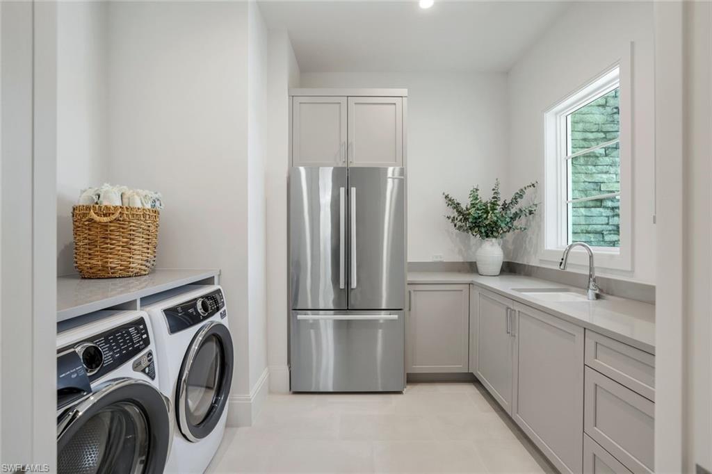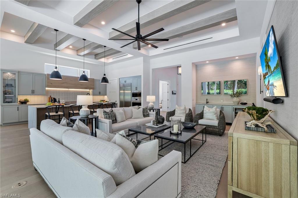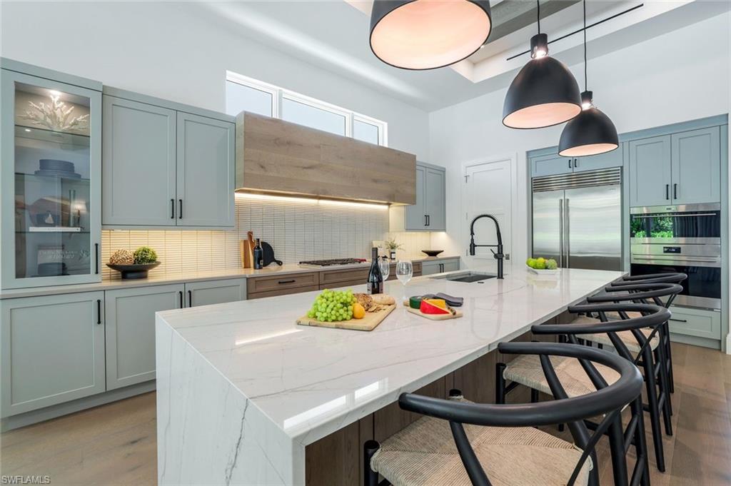 We invite you to view this elegant NEW CONSTRUCTION home in the new Palisades development in a prime location off of Orange Blossom Drive in North Naples. No detail spared as this home features many builder upgrades and a modern, award winning designer decor. Several upgrades to highlight are: whole house generator, hurricane screens, hot tub, pool sun shelf and waterfall feature, pool bathroom, marble tile in master bath, Woodmode cabinetry and more! The modern floor plan provides spacious gathering space both indoors and out with a large lanai and outdoor grilling and dining area. High end furnishing throughout provide utmost comfort and visual appeal. In addition, the home was built with the most current energy efficient and storm resistant materials providing peace of mind all year long! Low Fee HOA to boot!