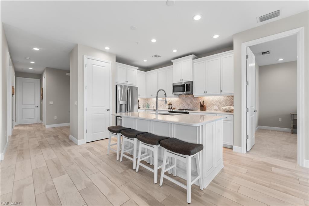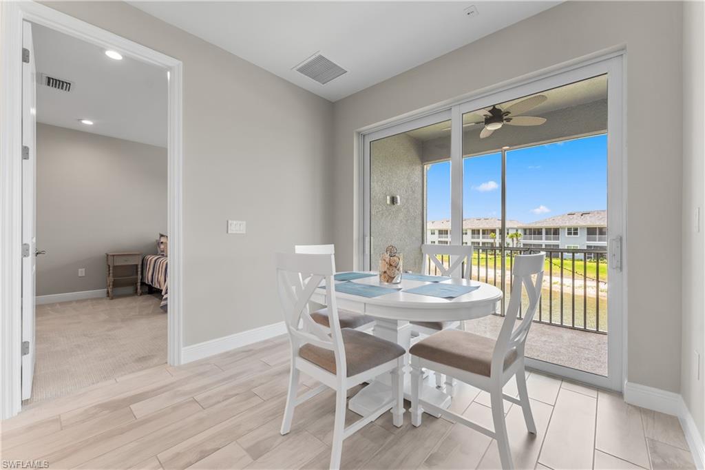 PRICED TO SELL! *South Facing - *Corner Unit - *Lakeview! Built in 2023 by the highly renowned Neal Communities, this condo features a stunning British West Indies design nestled in an amenity rich gated community located just minutes from Downtown Olde Naples. This light and bright open-concept corner unit is conveniently located within walking distance to the community pool and clubhouse and features 2 bedrooms and a large den which can easily be used as a third bedroom. Loaded with luxury features such as hurricane impact doors and windows, plantation shutters, contemporary quartz countertops, white shaker style soft-close cabinets, under mount cabinet lighting, designer backsplash, and premium stainless steel appliances. The spacious master bedroom features a sizable walk-in closet, frameless glass shower, and dual sinks with plenty of undercabinet storage. Enjoy the most sought after light & bright Southern exposure with picturesque sunsets over your long lake view. The centrally located neighborhood of Seychelles features resort-style amenities that cater to your every desire, including a state-of-the-art 4,500 sq ft clubhouse, a stunning resort-style pool and spa, a BBQ area perfect for entertaining, well equipped gym, and a cozy fire pit for evenings under the stars all located only 10 minutes from downtown Naples and 5th Avenue. Schedule your private tour today!