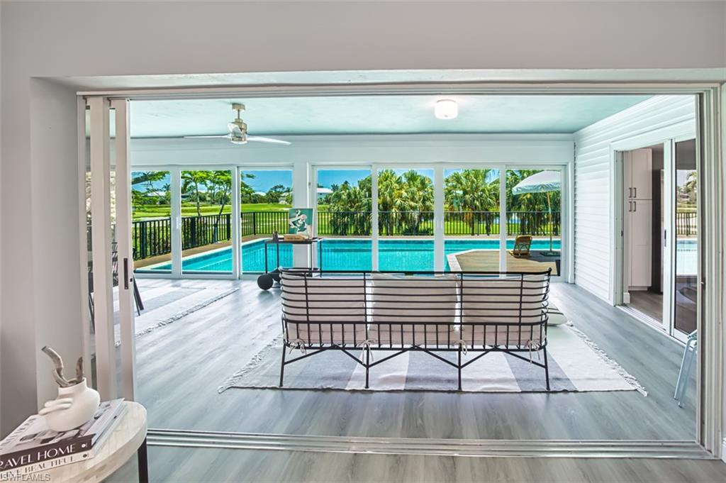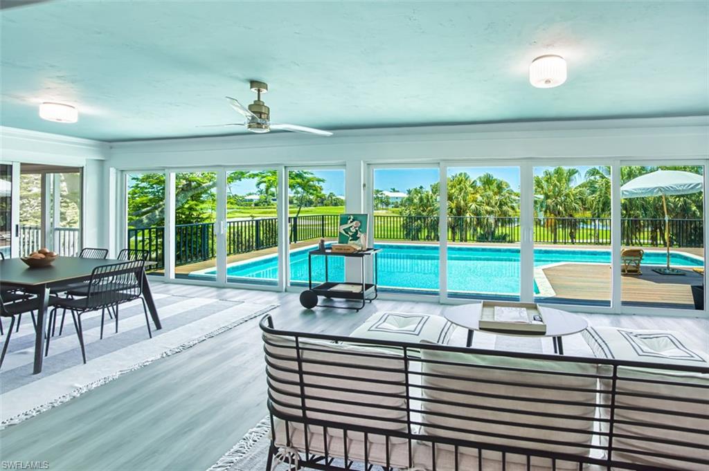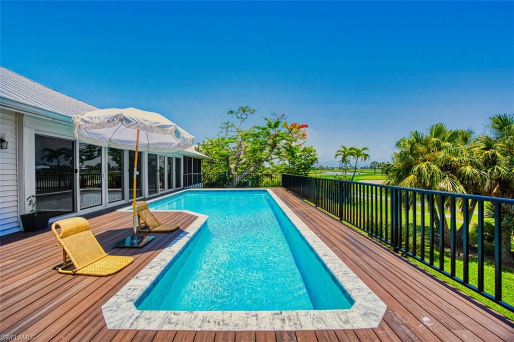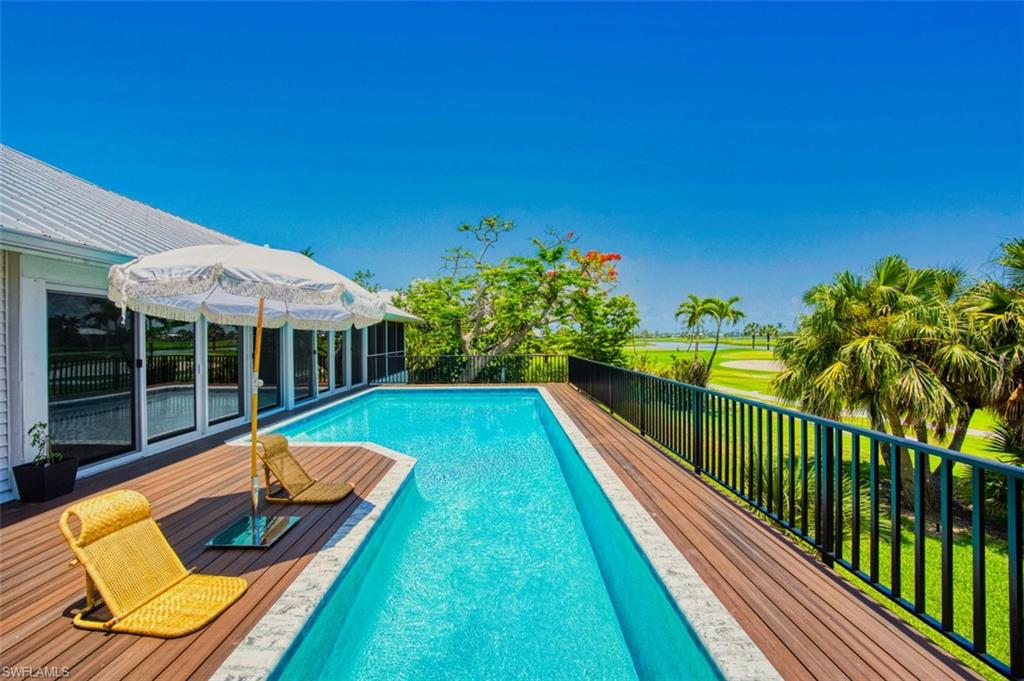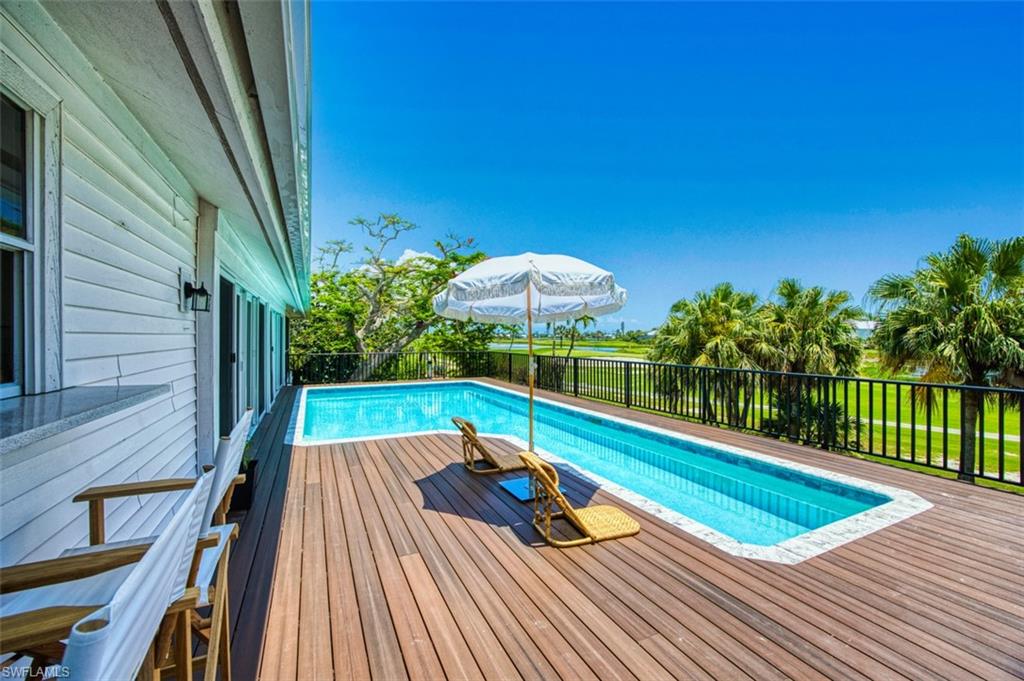 Bring your beach towel and start living the Paradise Dream!! Fully furnished and turnkey, this beautifully maintained island home offers peace of mind and effortless living with a host of recent updates, including a durable metal roof (re-screwed in 2024), hurricane-rated front door and porch windows (2021), rear sliders (2023), and new hurricane shutters installed on all sides (2021–2024). Gorgeous flooring runs throughout the home, which boasts an open floor plan ideal for entertaining. Large sliders create seamless indoor/outdoor living and showcase scenic views of the fairways. Enjoy all-day sun with desirable southern exposure. The pool area has been beautifully refreshed within the past 3 years, featuring updated decking, new coping, and a stylish outdoor shower added in 2023. The kitchen is equipped with modern appliances (2020–2025), and the home includes a new AC system (2021) and condenser (2023). Located on the east end of the island for quick access on and off Sanibel, and just moments from the beach. Optional membership to The Dunes Golf & Tennis Club includes access to an 18-hole championship course set in a protected Audubon wildlife preserve, six Har-Tru tennis courts, four pickleball courts, reduced greens and court fees, plus generous dining and retail discounts. Experience the best of the Sanibel lifestyle at The Dunes!