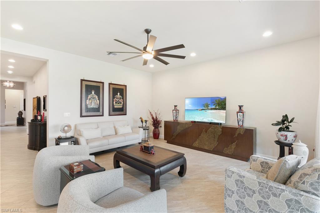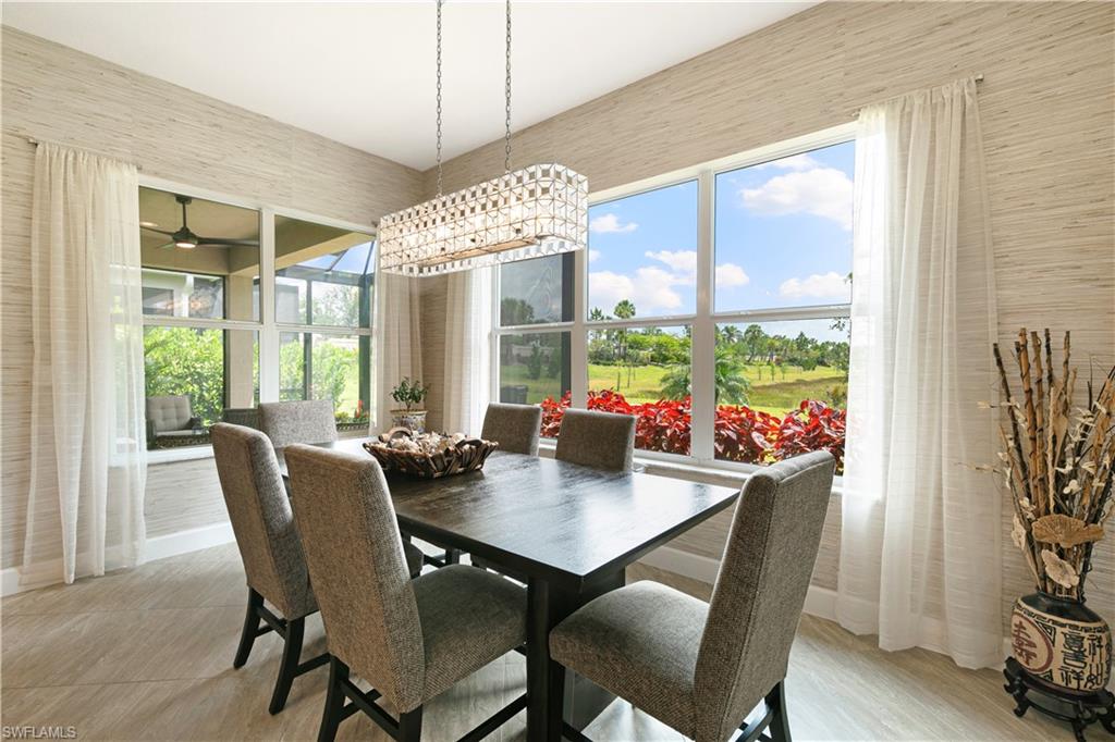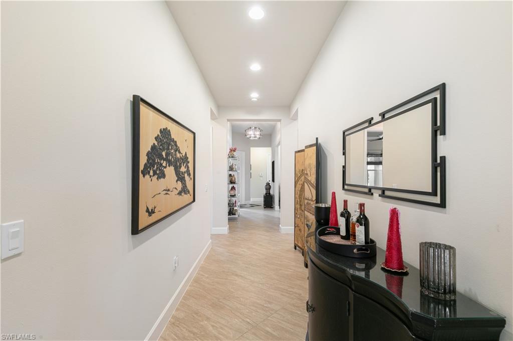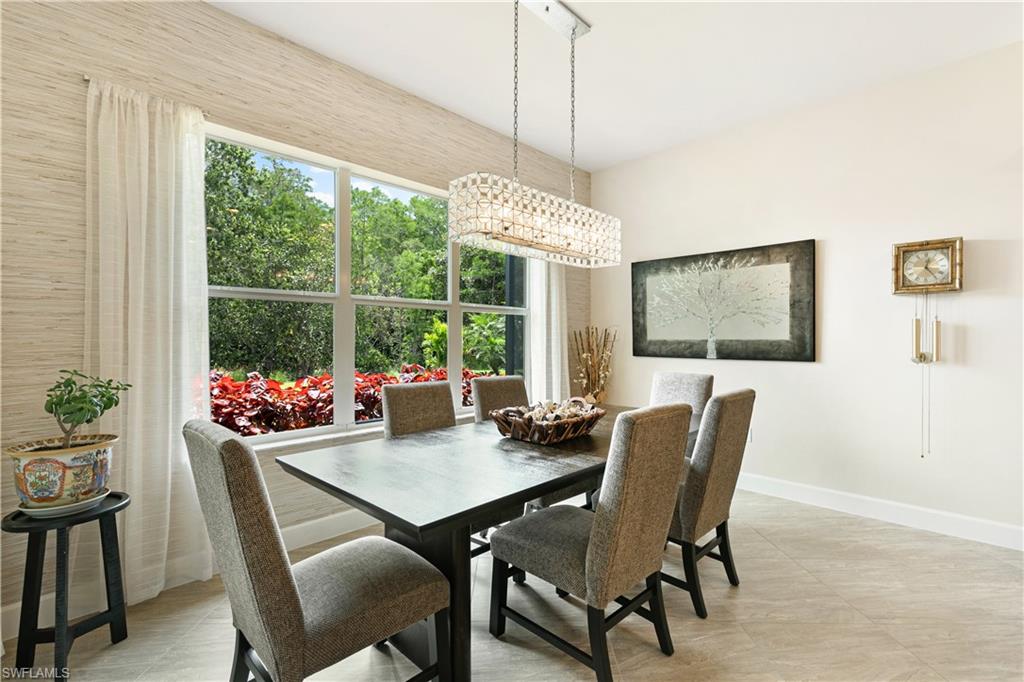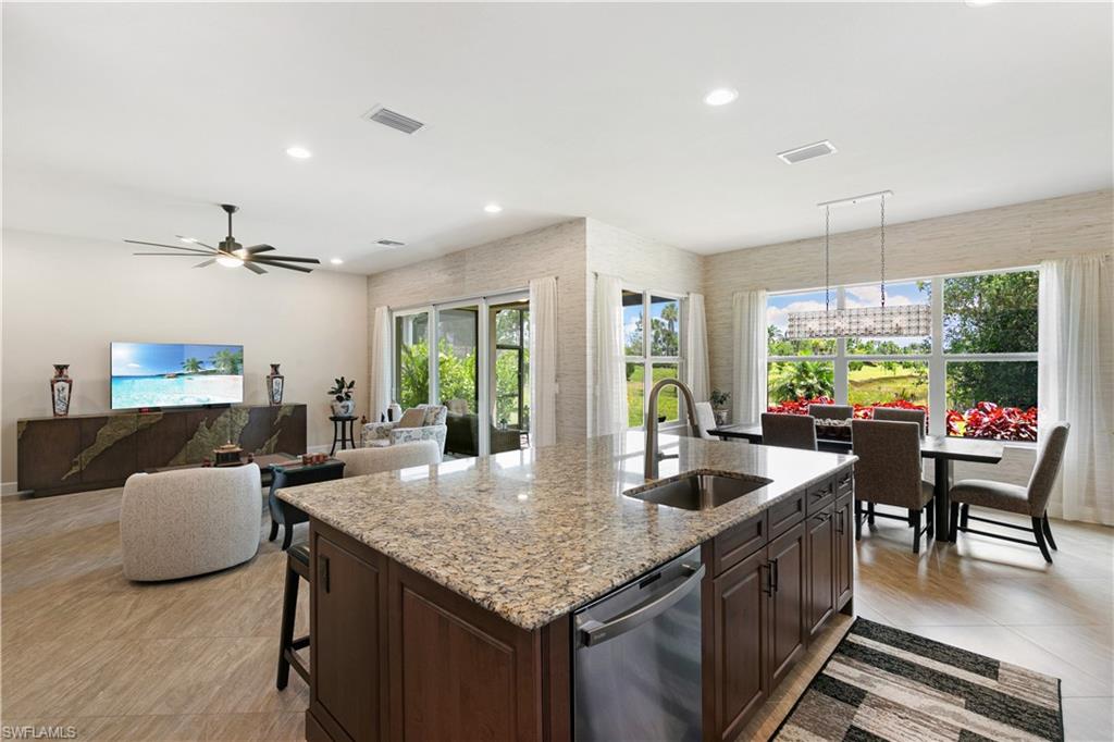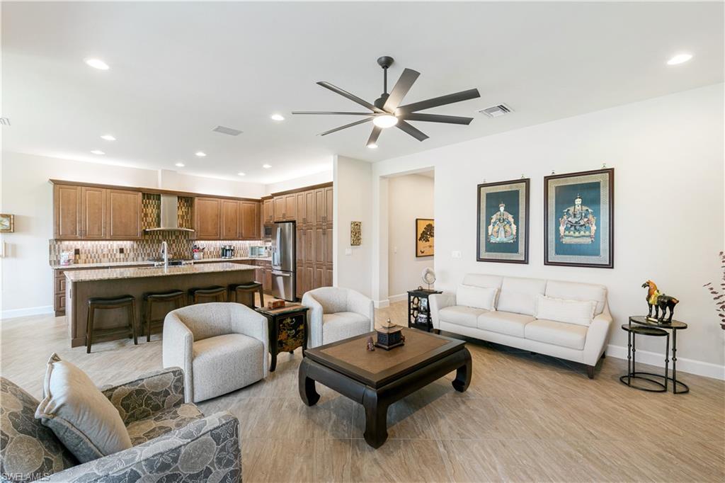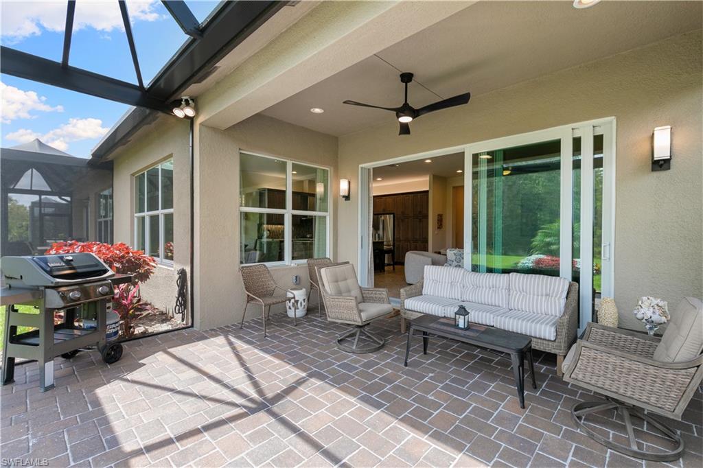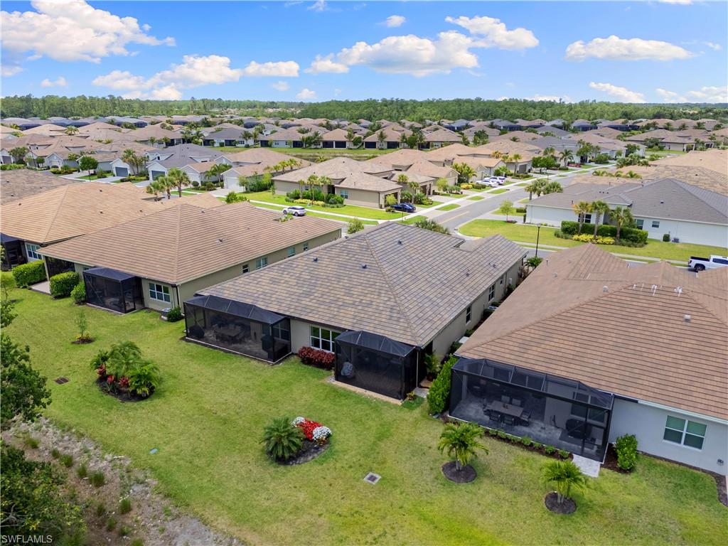 Step into pure perfection at Hampton Model Villa in the highly sought-after Valencia Bonita community! This stunning, model-like villa offers 2 bedrooms, 2 baths, a versatile den, and a convenient 2-car garage. Prepare to be wowed by the tons of upgrades thoughtfully incorporated throughout this immaculate home. The heart of this villa is undoubtedly the outstanding oversized kitchen island, a true centerpiece for entertaining and everyday living. Culinary enthusiasts will adore the gourmet kitchen, complete with sleek gas appliances and an abundance of storage, including all pull-out drawers throughout with soft-close cabinets and drawers. Inside, you'll appreciate the attention to detail, from the laundry room with cabinets and a laundry sink for added functionality to the stylish epoxy flooring in the garage. The interior boasts elegant 36" tile laid on the diagonal, upgraded window treatments, and sophisticated seagrass wallpaper, creating a warm and inviting ambiance. Enjoy energy efficiency and endless hot water with the tankless hot water heater. The impact glass windows and doors not only enhance security but also contribute to a quiet and comfortable living environment. One of the most desirable features of this property is the backyard view with no rear houses, offering exceptional privacy and tranquility. Extend your living space outdoors with a convenient connection hook up on the lanai for a gas grill, perfect for enjoying Florida's beautiful weather. Peace of mind comes standard with a generator and hurricane windows providing exceptional protection. Indulge in the one-of-a-kind resort-style amenities offered by Valencia Bonita is a 55 & Up Community and grants you access to a premier 45,000-square-foot clubhouse and luxe lifestyle with resort-style pools, lap and resistance pools, a full-service spa, fitness center with 40-plus weekly classes, indoor/outdoor dining, and a theater for Broadway-style shows. Stay active with tennis, pickleball, bocce, a dog park, and dozens of social clubs tailored to your lifestyle. Just minutes from golf courses, sandy beaches, I-75, Naples, RSW Airport and Fort Myers, this home offers the ideal blend of luxury, privacy and community living. Schedule your private showing today and experience the vacation-inspired lifestyle Valencia Bonita has to offer!