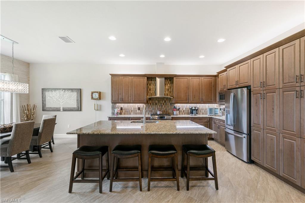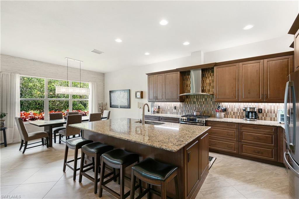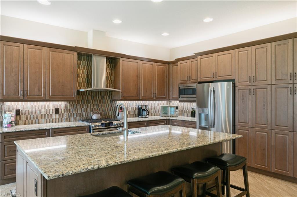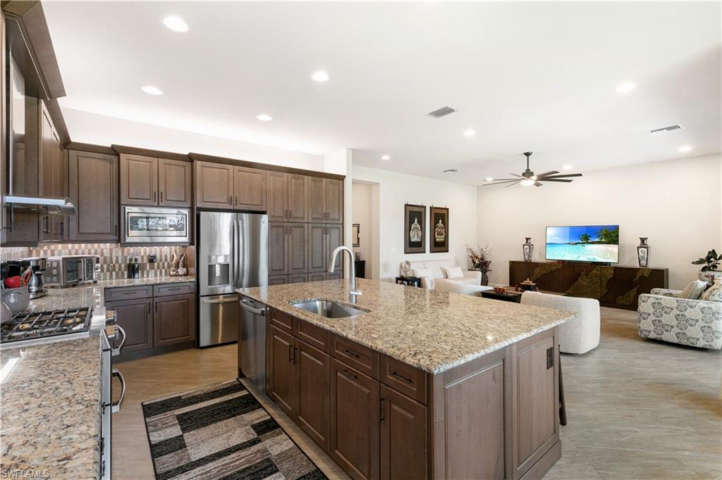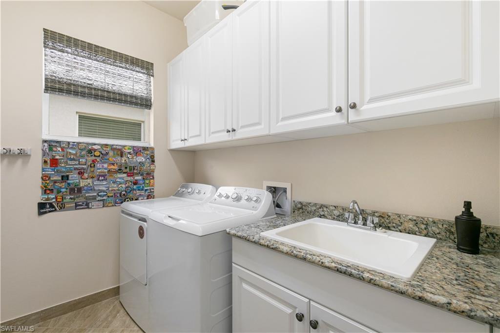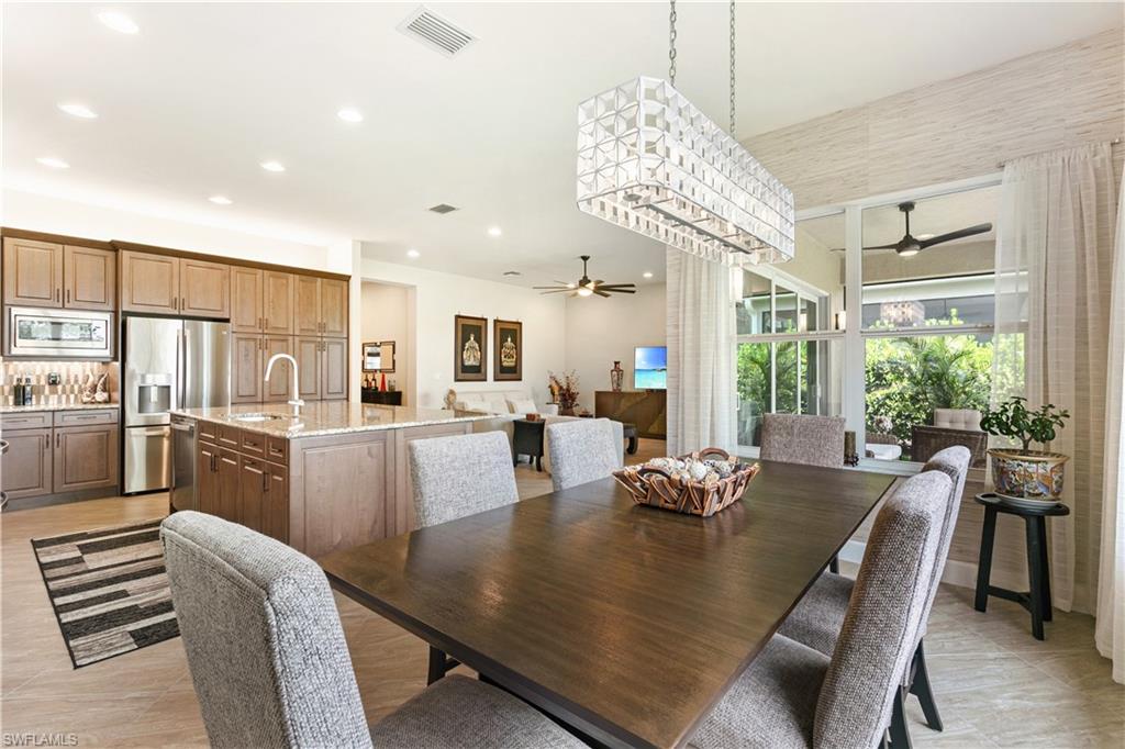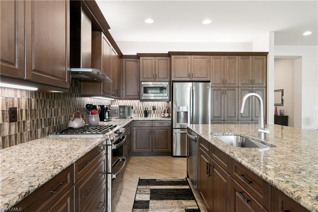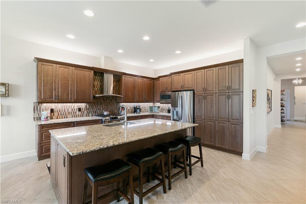 Step into pure perfection at Hampton Model Villa in the highly sought-after Valencia Bonita community! This stunning, model-like villa offers 2 bedrooms, 2 baths, a versatile den, and a convenient 2-car garage. Prepare to be wowed by the tons of upgrades thoughtfully incorporated throughout this immaculate home. The heart of this villa is undoubtedly the outstanding oversized kitchen island, a true centerpiece for entertaining and everyday living. Culinary enthusiasts will adore the gourmet kitchen, complete with sleek gas appliances and an abundance of storage, including all pull-out drawers throughout with soft-close cabinets and drawers. Inside, you'll appreciate the attention to detail, from the laundry room with cabinets and a laundry sink for added functionality to the stylish epoxy flooring in the garage. The interior boasts elegant 36" tile laid on the diagonal, upgraded window treatments, and sophisticated seagrass wallpaper, creating a warm and inviting ambiance. Enjoy energy efficiency and endless hot water with the tankless hot water heater. The impact glass windows and doors not only enhance security but also contribute to a quiet and comfortable living environment. One of the most desirable features of this property is the backyard view with no rear houses, offering exceptional privacy and tranquility. Extend your living space outdoors with a convenient connection hook up on the lanai for a gas grill, perfect for enjoying Florida's beautiful weather. Peace of mind comes standard with a generator and hurricane windows providing exceptional protection. Indulge in the one-of-a-kind resort-style amenities offered by Valencia Bonita is a 55 & Up Community and grants you access to a premier 45,000-square-foot clubhouse and luxe lifestyle with resort-style pools, lap and resistance pools, a full-service spa, fitness center with 40-plus weekly classes, indoor/outdoor dining, and a theater for Broadway-style shows. Stay active with tennis, pickleball, bocce, a dog park, and dozens of social clubs tailored to your lifestyle. Just minutes from golf courses, sandy beaches, I-75, Naples, RSW Airport and Fort Myers, this home offers the ideal blend of luxury, privacy and community living. Schedule your private showing today and experience the vacation-inspired lifestyle Valencia Bonita has to offer!