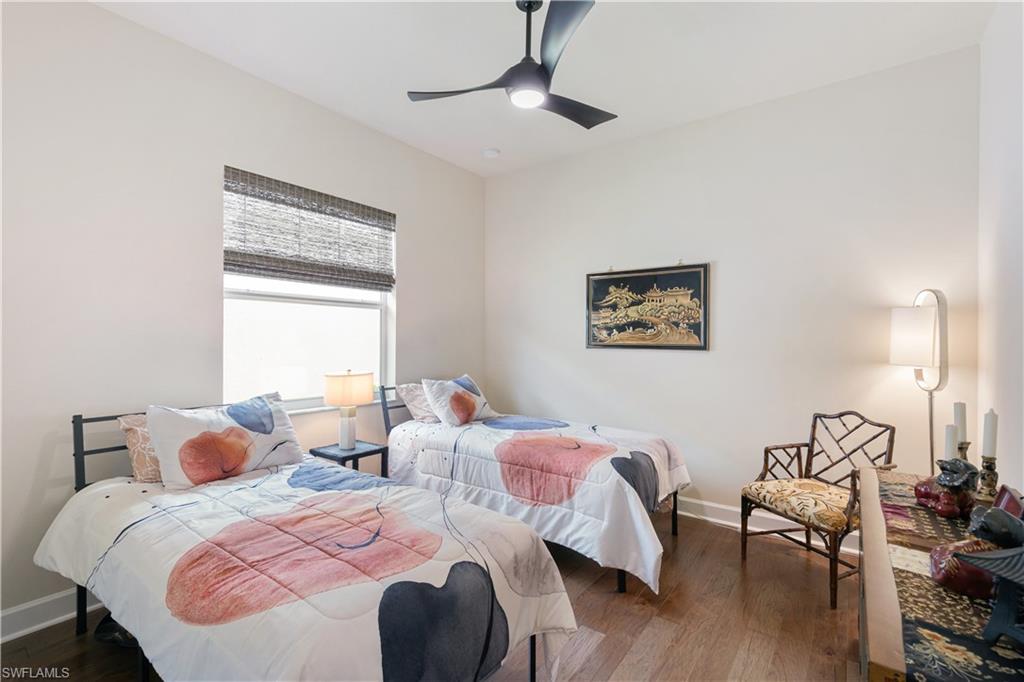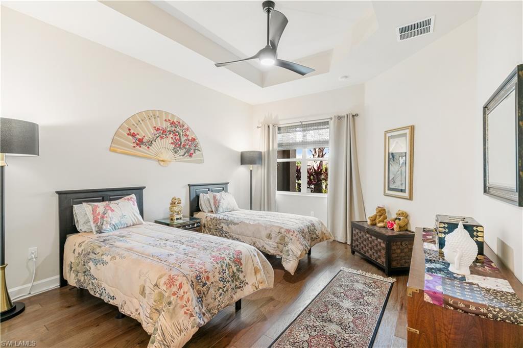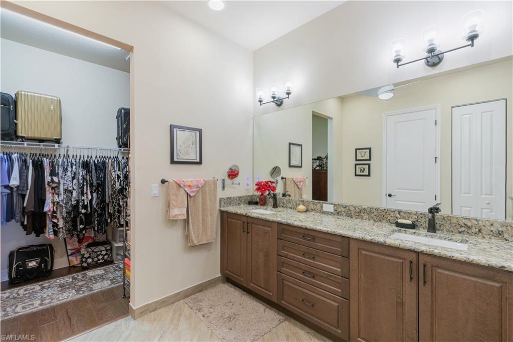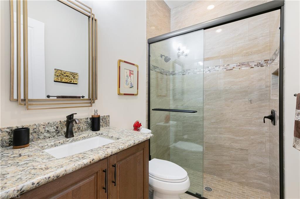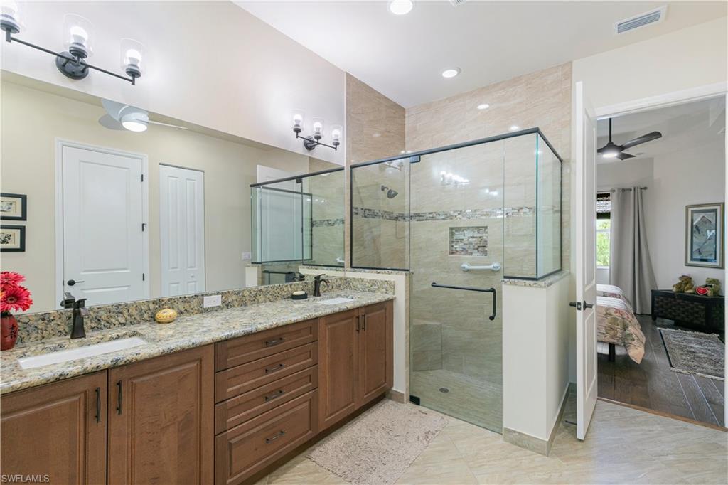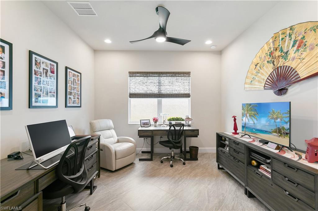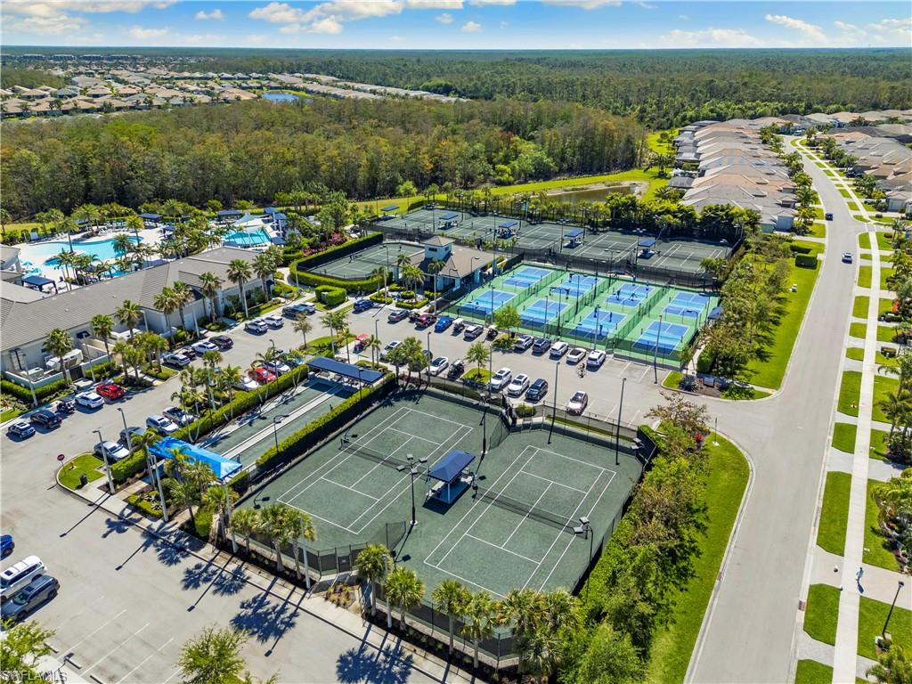 Step into pure perfection at Hampton Model Villa in the highly sought-after Valencia Bonita community! This stunning, model-like villa offers 2 bedrooms, 2 baths, a versatile den, and a convenient 2-car garage. Prepare to be wowed by the tons of upgrades thoughtfully incorporated throughout this immaculate home. The heart of this villa is undoubtedly the outstanding oversized kitchen island, a true centerpiece for entertaining and everyday living. Culinary enthusiasts will adore the gourmet kitchen, complete with sleek gas appliances and an abundance of storage, including all pull-out drawers throughout with soft-close cabinets and drawers. Inside, you'll appreciate the attention to detail, from the laundry room with cabinets and a laundry sink for added functionality to the stylish epoxy flooring in the garage. The interior boasts elegant 36" tile laid on the diagonal, upgraded window treatments, and sophisticated seagrass wallpaper, creating a warm and inviting ambiance. Enjoy energy efficiency and endless hot water with the tankless hot water heater. The impact glass windows and doors not only enhance security but also contribute to a quiet and comfortable living environment. One of the most desirable features of this property is the backyard view with no rear houses, offering exceptional privacy and tranquility. Extend your living space outdoors with a convenient connection hook up on the lanai for a gas grill, perfect for enjoying Florida's beautiful weather. Peace of mind comes standard with a generator and hurricane windows providing exceptional protection. Indulge in the one-of-a-kind resort-style amenities offered by Valencia Bonita is a 55 & Up Community and grants you access to a premier 45,000-square-foot clubhouse and luxe lifestyle with resort-style pools, lap and resistance pools, a full-service spa, fitness center with 40-plus weekly classes, indoor/outdoor dining, and a theater for Broadway-style shows. Stay active with tennis, pickleball, bocce, a dog park, and dozens of social clubs tailored to your lifestyle. Just minutes from golf courses, sandy beaches, I-75, Naples, RSW Airport and Fort Myers, this home offers the ideal blend of luxury, privacy and community living. Schedule your private showing today and experience the vacation-inspired lifestyle Valencia Bonita has to offer!