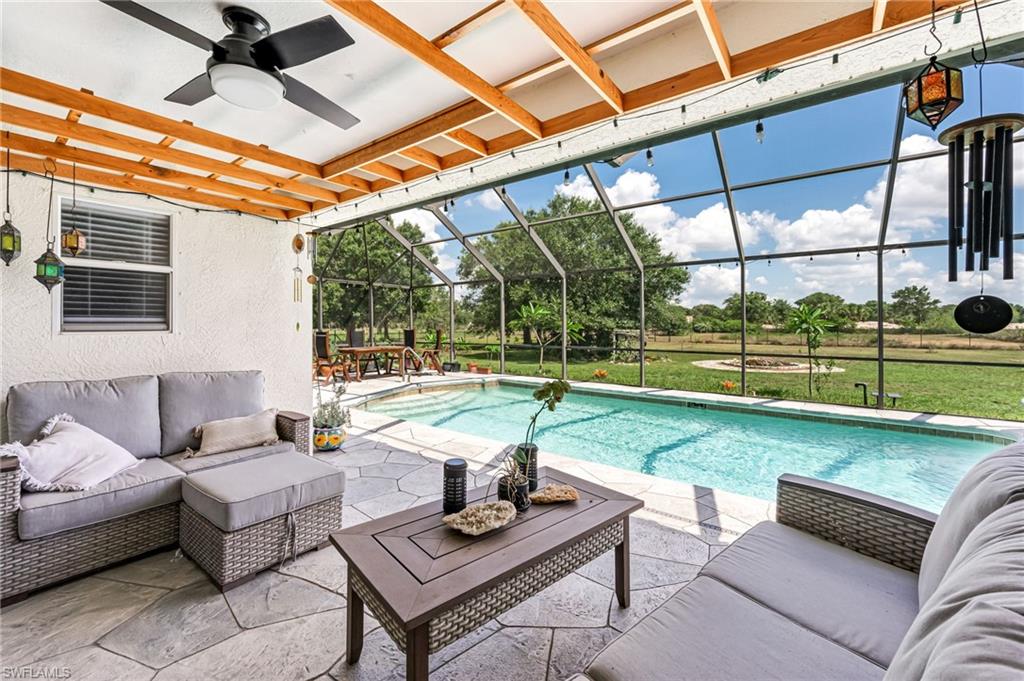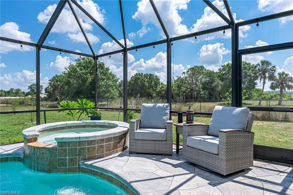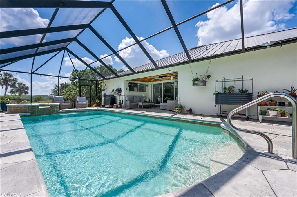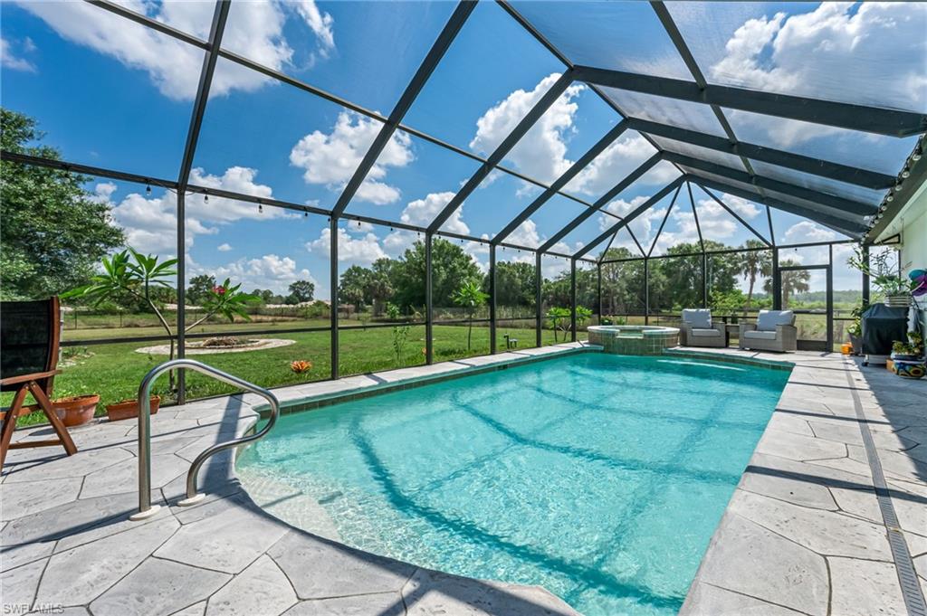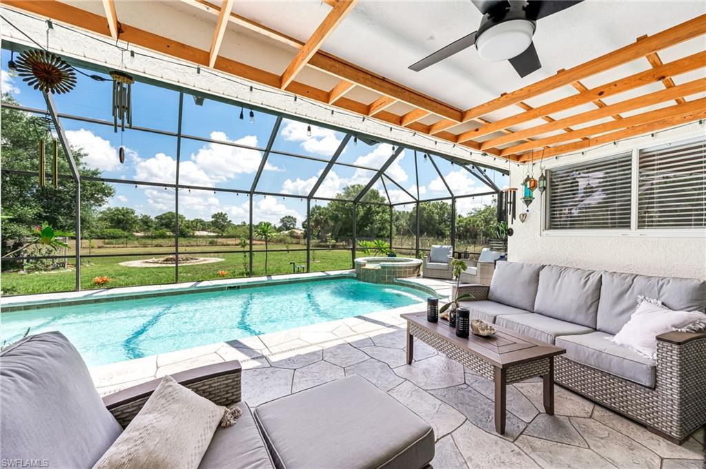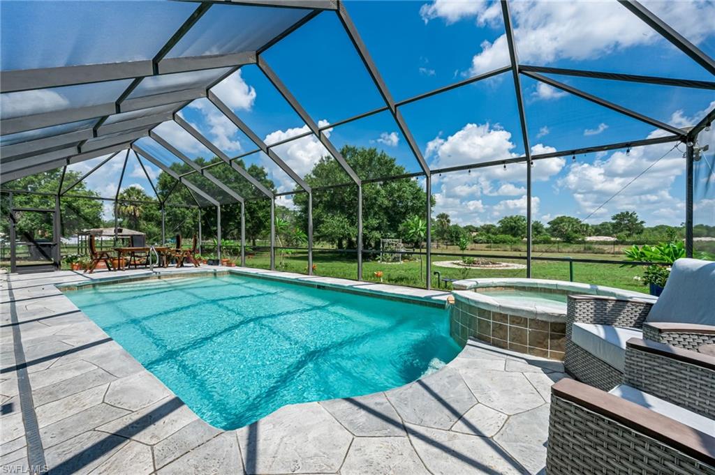 Nestled on 2.27 acres of peace and solitude in a rapidly growing area of Golden Gate Estates, this impeccably maintained home with spacious rooms has numerous upgrades that will bring peace of mind and modern comfort, and include, a brand new $17k, Lennox AC system with uv light and extra filtration function, (installed 7/9/2025), a durable metal roof with new guttering, a whole-house reverse osmosis system, an upgraded electrical panel with generator inlet and well breaker, underground wiring to the road, a whole-house surge protector, and upgraded interior/exterior lighting. The home also boasts a new pool pump, spa heater, water heater, and fresh Sherwin-Williams paint inside and out. You'll also find a wide variety of ornamental trees and flowers. Several types of Frangipani, two Royal Poinciana trees, very young, Mexican Sunflower bushes/trees, Queen‘s Wreath, rose bushes, including Heirloom Hybrid Roses in a white rose garden, lemongrass plants, three Confederate/Star Jasmine‘s growing up trees, two varieties of Claredendrom-Light Bulb, and Harold’s Trumpet, Yellow Tabebuias and huge oak trees in the front yard along with beautiful Water Oak trees, white and blue Plumbago, and so many more. And...All of the gardening has been maintained by natural gardening concepts, including, composting, hand-pulled weeding, and natural pest control! The expansive backyard includes a fenced-in three-quarters of an acre with a six-foot black chain link fence—perfect for the safety of pets and small children. In addition to all of that, the seller has laid plywood flooring and shelving in the attic for extra storage!!—every detail here has been thoughtfully addressed.