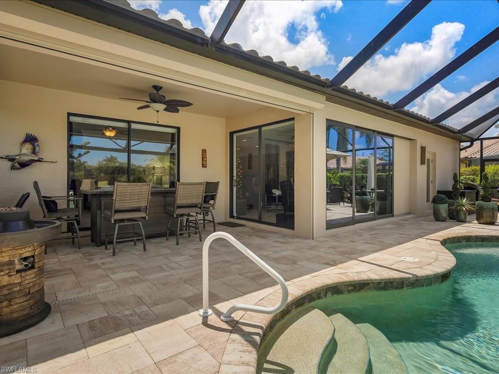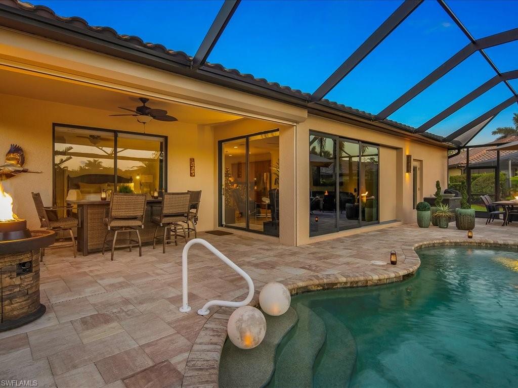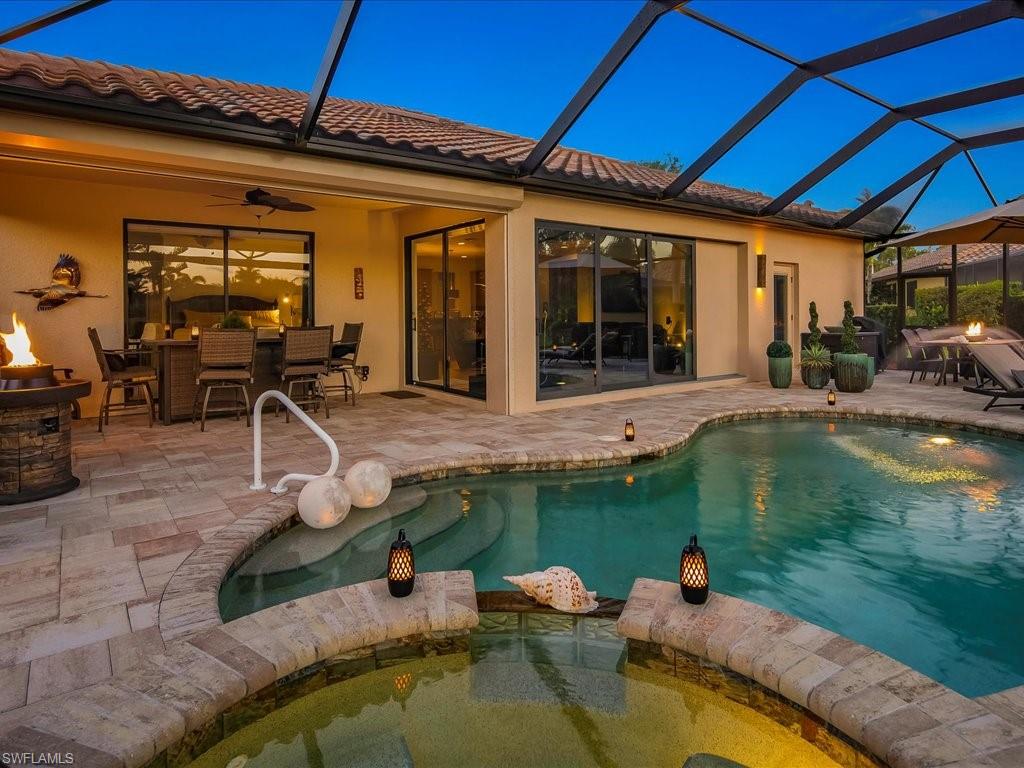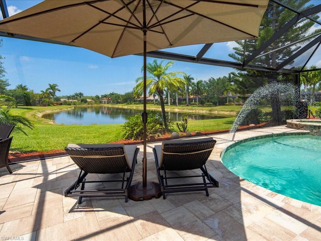 Exquisite 4BR/3BA/3 car garage home with gorgeous, wide, long lake view and roomy landscaped side yard. Boasts one of the lowest SF HOA fees in Naples!!! This house has been very lightly used and is in immaculate condition. It has a tropical resort feel with a heated pool, spa, screened lanai, and an undercover seating area surrounded by tropical vegetation. The house has had many improvements since it was built, and more recently, crown moldings were added throughout the house. There is good storm protection as well with impact-resistant sliding doors, electric shutters, and manual shutters. As has been said previously, it has VERY LOW HOA fees and no CDD. Its proximity to Marco Island and Naples shopping, and beaches makes this home a very desirable area in which to live. Best of all...if you need a boat slip and your boat is less than 28' LOA, 12' BEAM, and 4' DRAFT, you may purchase it separately for $70,000. Location: Port of the Islands Marina. A jet dock may also be purchased for an an additional $10,000.