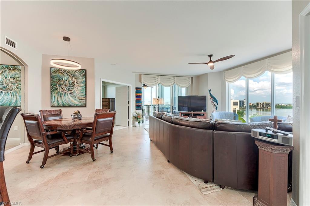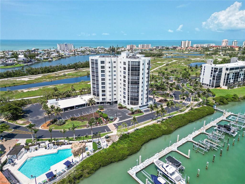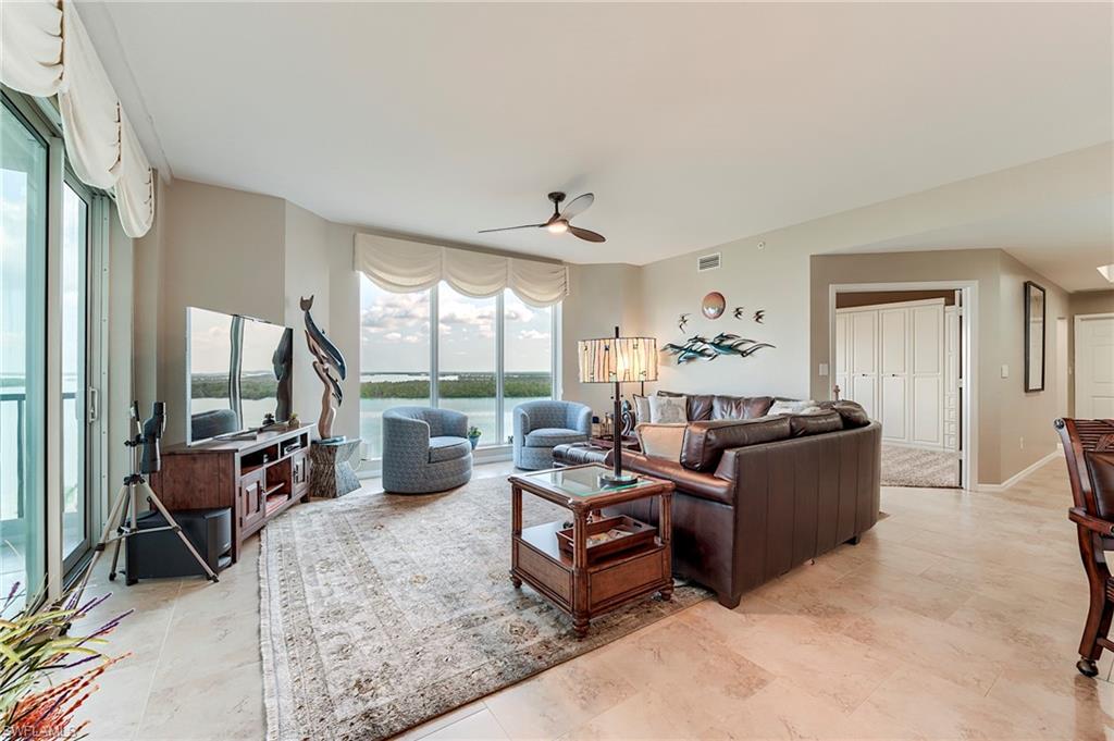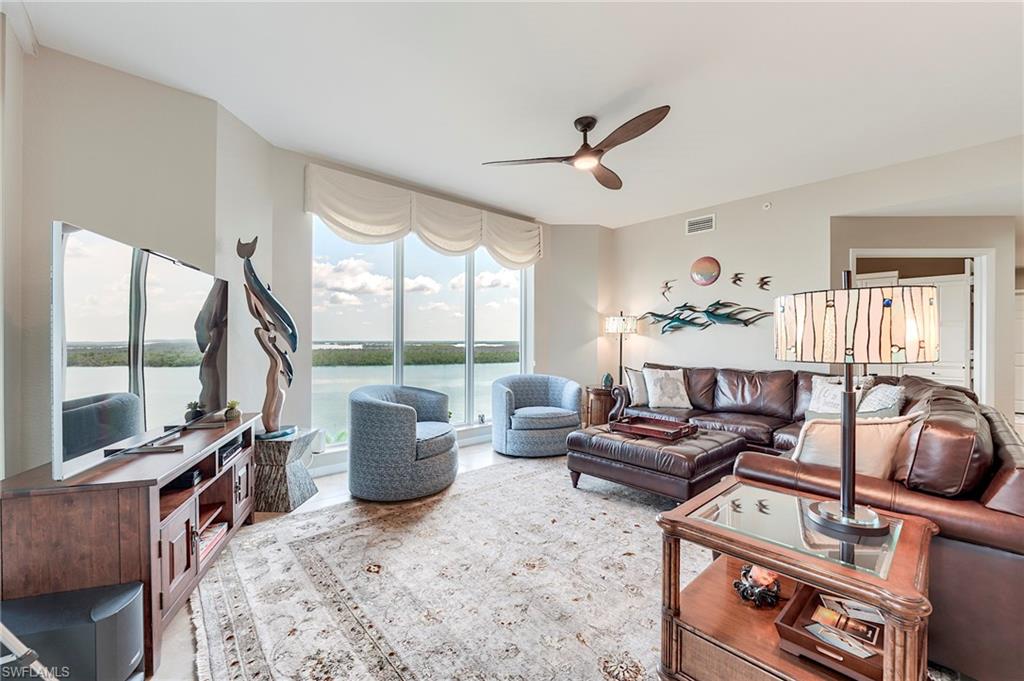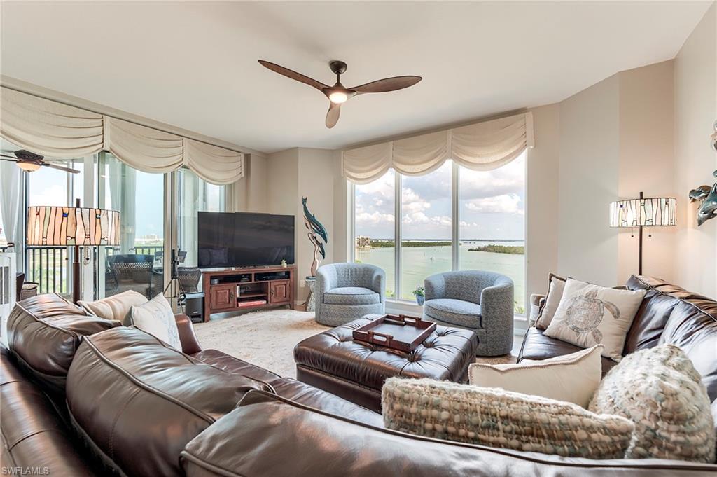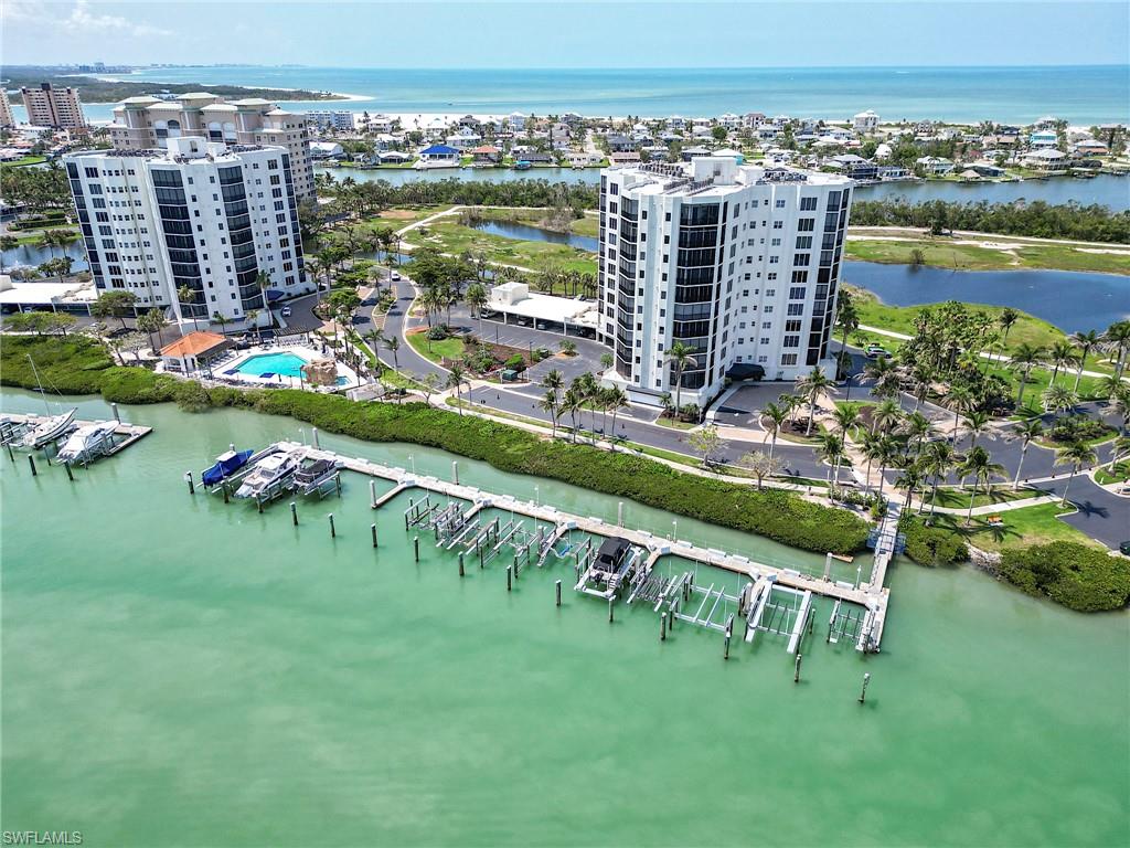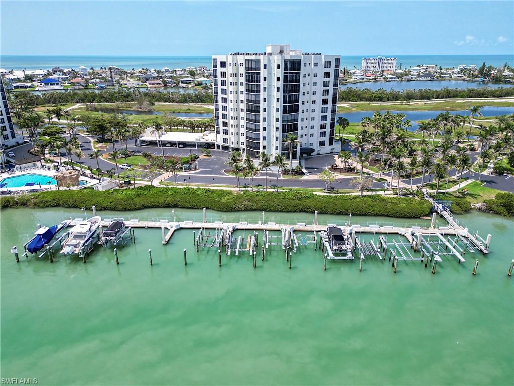 Experience bayfront living in this 6th-floor residence at Waterside at Bay Beach. This 3-bedroom, 2-bath condo offers an open-concept layout with approx. 1,639 sq. ft. under air. Enjoy views of Estero Bay and Gulf views from the spacious screened lanai. Gorgeous views from almost every room! The kitchen features custom cabinetry, solid-surface countertops, and modern appliances. Neutral tile flooring is present in the main living areas. The primary suite includes lanai access, large walk in closet and an en-suite bath with dual vanities, soaking tub, and separate shower. Private garage space included. Boat dock A8 is available for separate purchase and will be offered at a discounted price with the condo (currently listed at 225,000). Waterside at Bay Beach is a gated community on the south end of Fort Myers Beach offering a resort-style pool, fitness center, tennis courts, and deeded beach access. Boat slips may also be available for separate purchase or lease. Conveniently located near dining, shopping, and marinas.