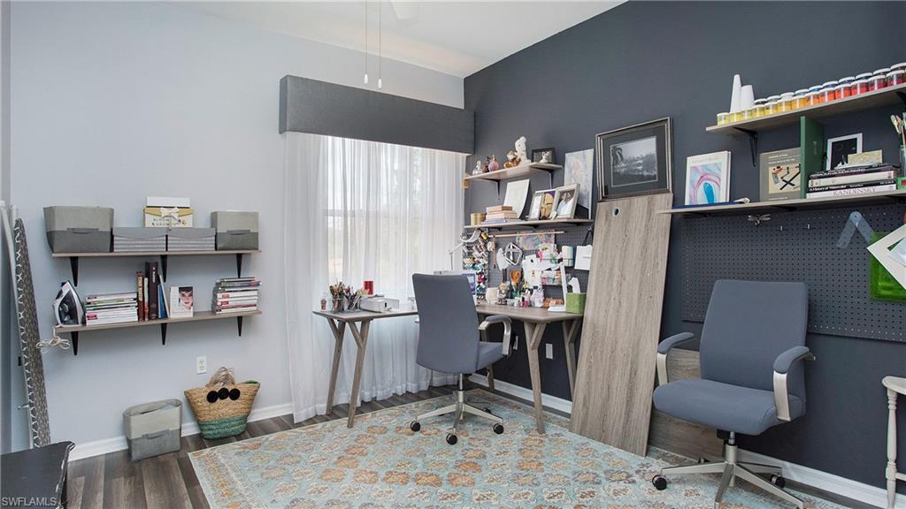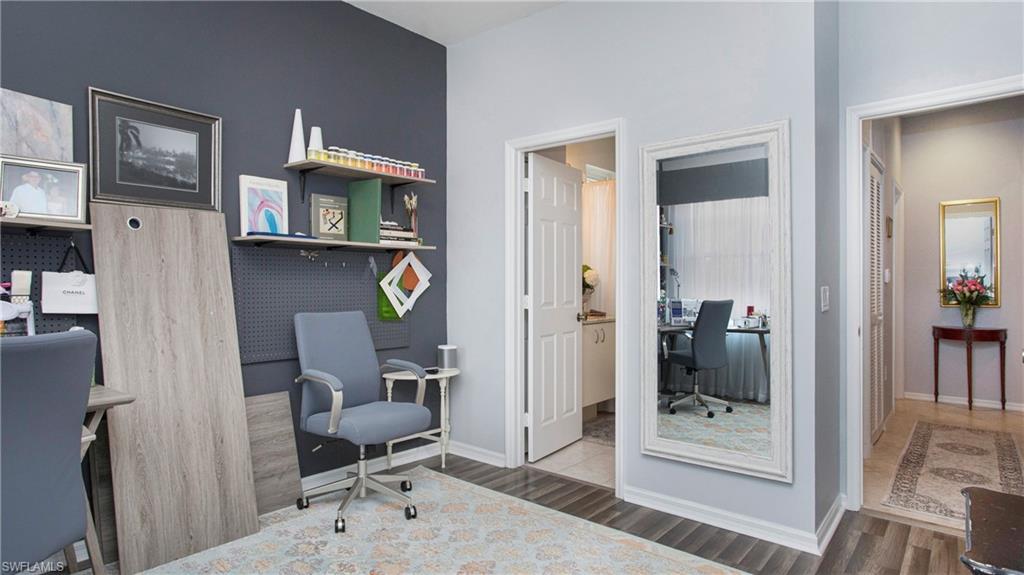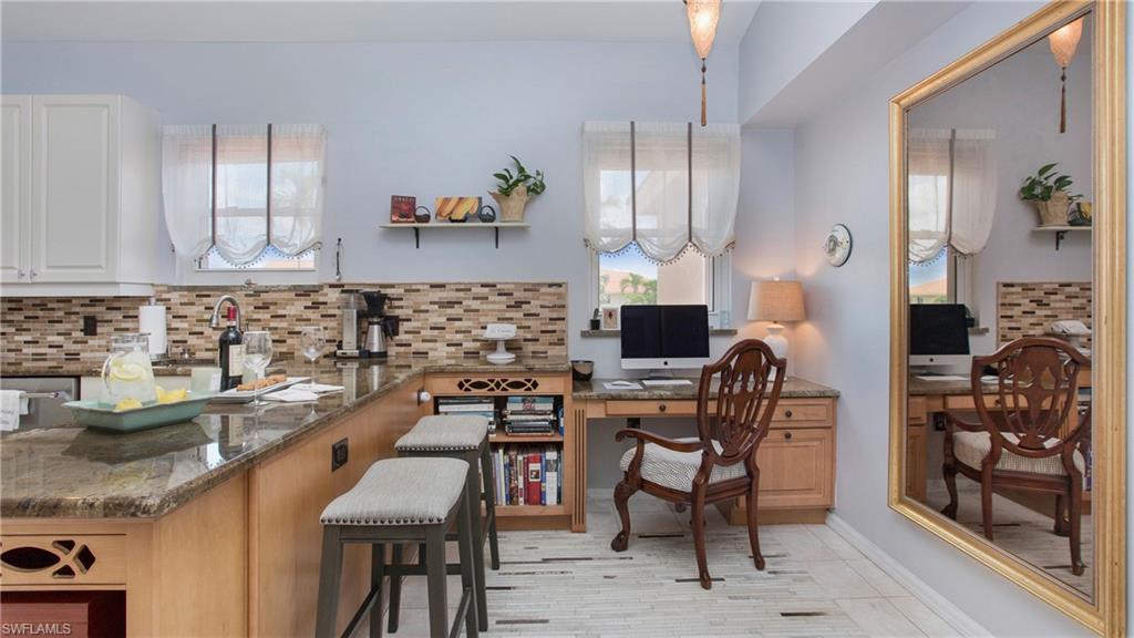 RARE OPPORTUNITY – ONLY UNIT AVAILABLE in Huntington Lakes with 1,995 SQ FT of living space and a 2-CAR GARAGE! This beautifully maintained coach home offers an exceptional value with the lowest price per square foot in the community. Located in the heart of North Naples, this spacious 2-bedroom + den, 2-bath home is perfect for embracing the sought-after Southwest Florida lifestyle. Step inside to discover tile and laminate wood flooring throughout, fresh interior paint, and thoughtful upgrades. The remodeled kitchen features granite countertops, tiled backsplash, stainless steel appliances, a built-in desk/workstation, and abundant cabinet and counter space—ideal for cooking and entertaining. The expansive owner’s suite includes a cozy sitting area, private lanai access, and an updated bathroom with a granite double vanity and frameless glass shower. Relax or entertain year-round in the air-conditioned, glass-enclosed lanai, which overlooks a serene and private landscaped area. Key Upgrades Include: NEW Roof (2020) NEW AC System (2024) NEW Dishwasher (2024) NEW Water Heater (2023) HURRICANE IMPACT WINDOWS with a lifetime warranty Huntington Lakes is a gated community offering resort-style amenities: clubhouse, 3 pools, fitness center with sauna, tennis & pickleball courts, and more. All this just minutes from I-75, SWFL International Airport, upscale shopping, dining, and the white-sand beaches of the Gulf. This gem won't last—schedule your private tour today!