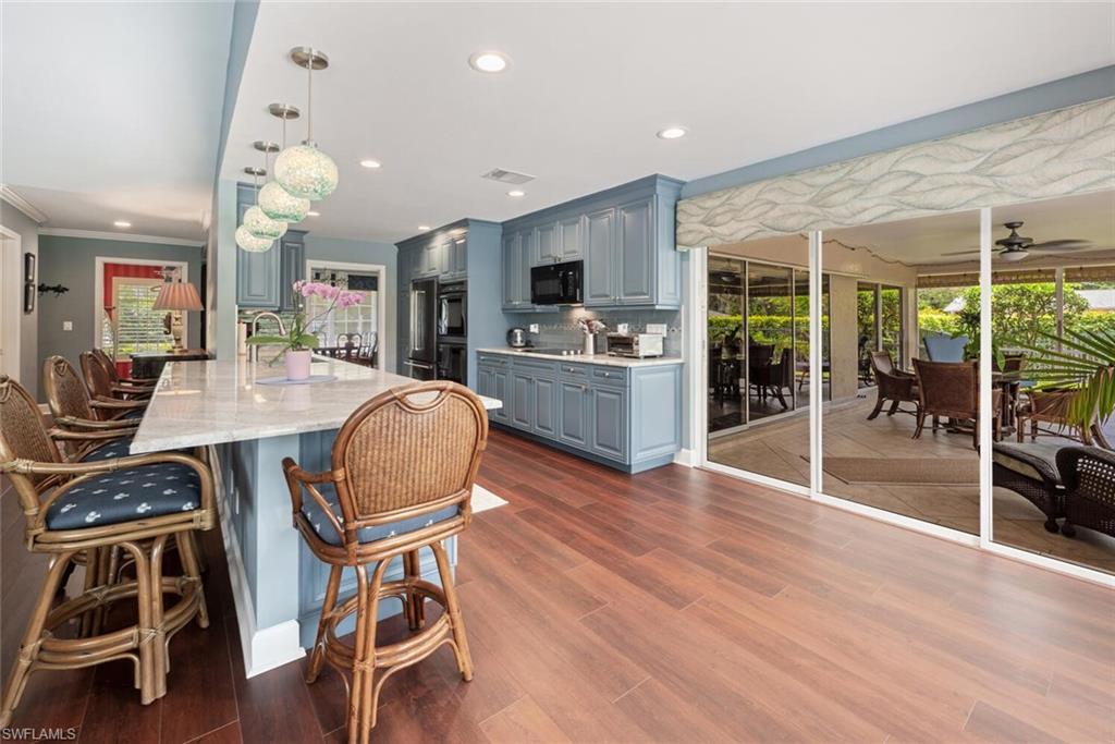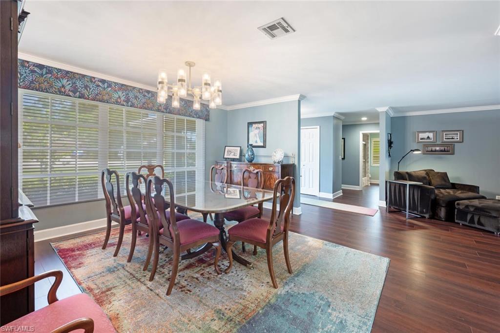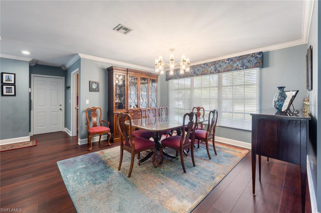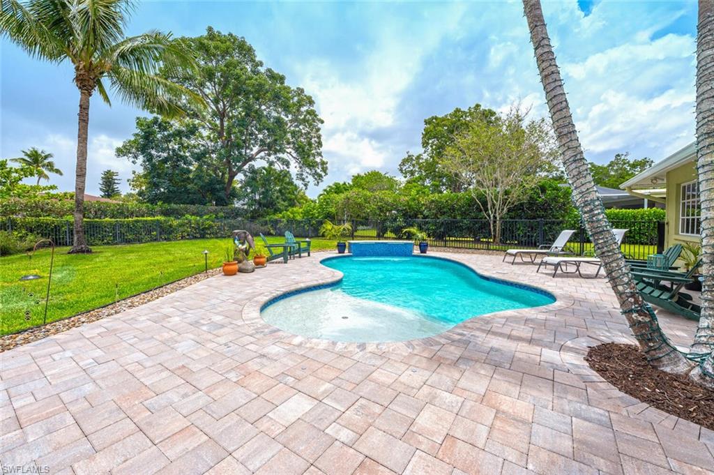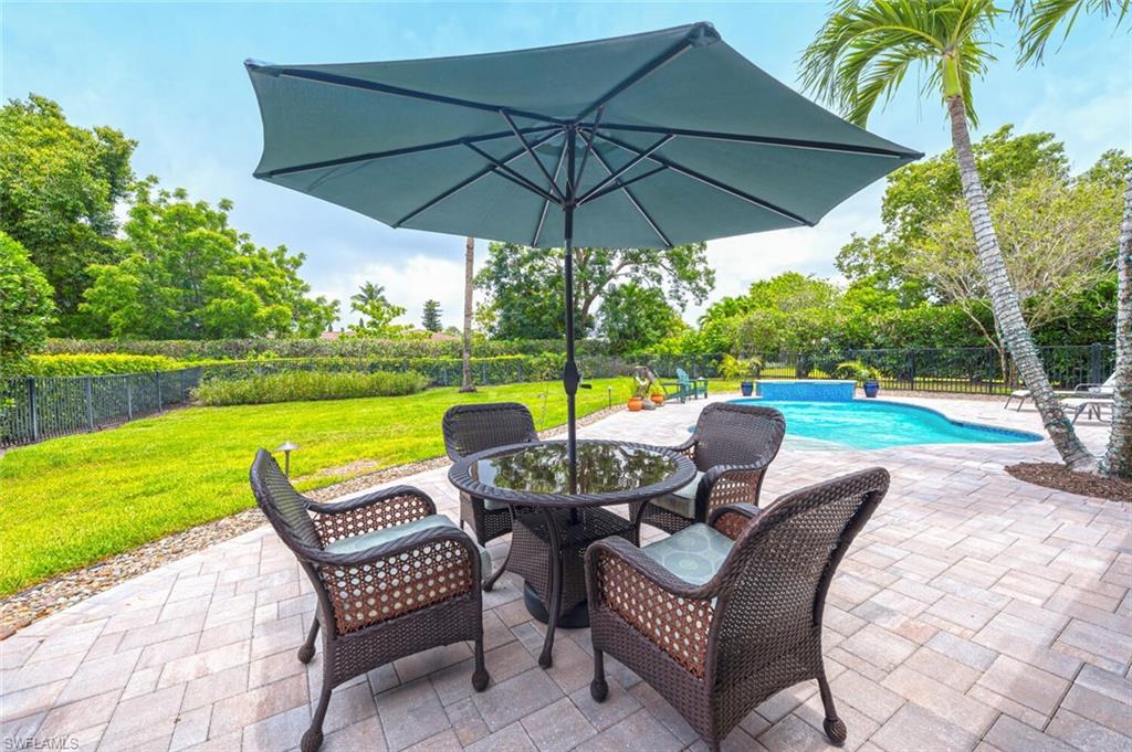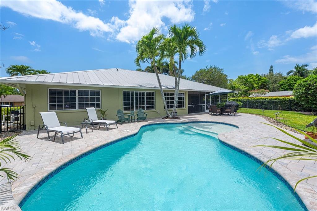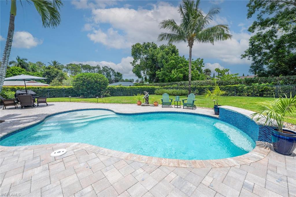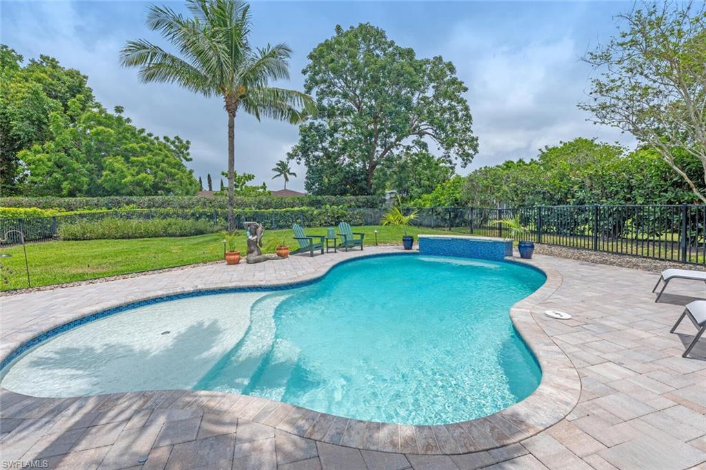 This beautiful three bedroom, two and one-half bath pool home within Victoria Park features a gorgeous refashioned kitchen finished with custom cabinetry with dolomite counters complimented by a designer tile backsplash, stainless appliances with double ovens including a convection oven, large center island with wine cooler. Throughout this home you will find elegant designer finishes of LVP flooring, crown molding, plantation shutters & designer lighting. Your private outdoor retreat awaits where a sparkling pool with sun shelf and waterfall feature is surrounded by lush, colorful foliage, timed landscape lighting, spring-fed water irrigation system and a fenced backyard. The setting is both tranquil and picturesque. This wonderful family neighborhood includes community amenities such as a pool, tennis courts, basketball and park. Prime North Naples location within minutes everything Mercato, shopping, dining & beaches. A+ school district, Pelican Marsh Elementary, North Naples Middle and Barron Collier High. This property IS NOT located in a flood zone!