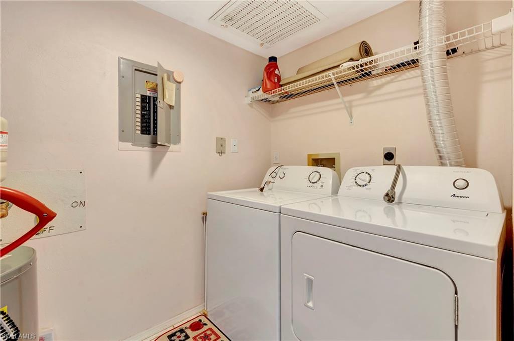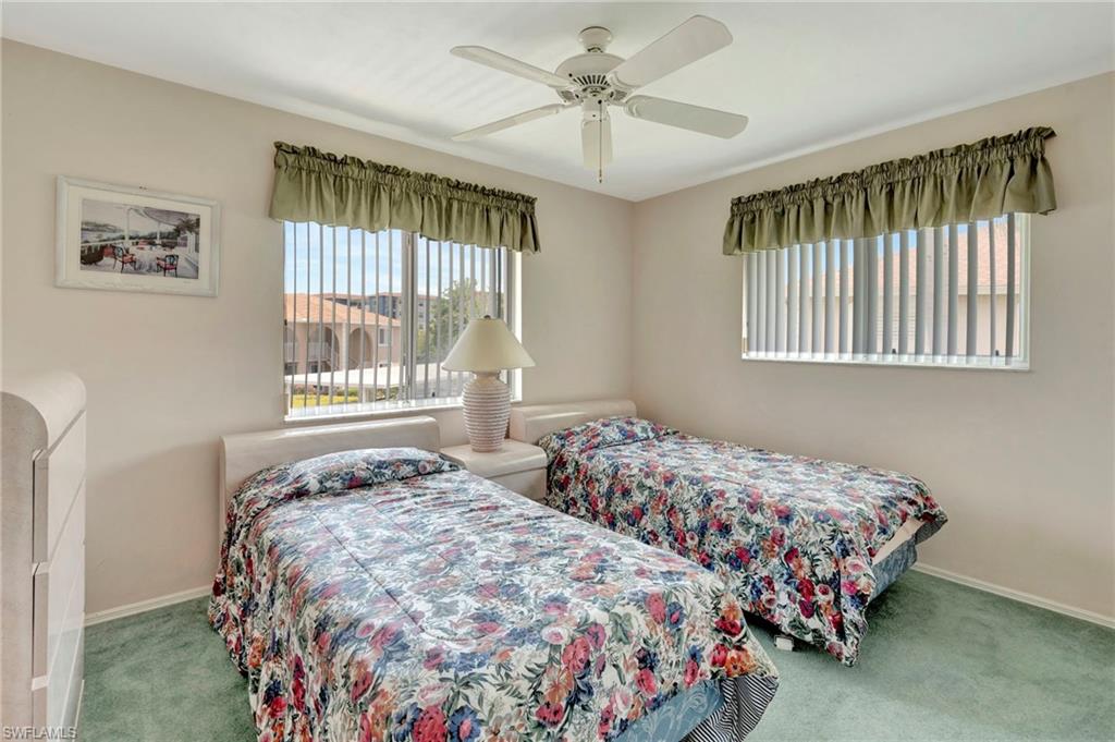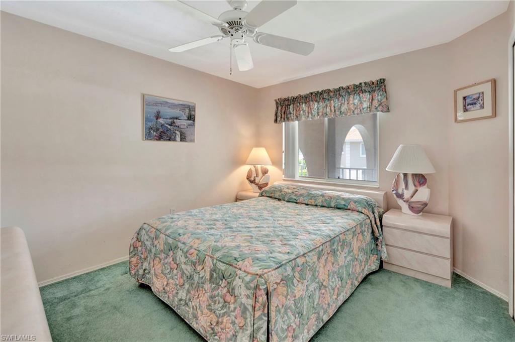This lovely corner unit 2nd floor 3 bedroom, 2 bath, rarely available, condo has it all! There is a very relaxing view from the lanai which includes a partial of Hibiscus Public Golf Course (golf is not included) and a large master suite which includes a queen-size bed, walk-in closet, double sinks and a new commode, along with a tub and shower combo. The kitchen is well equipped and has a newer garbage disposal and over-the-stove, built-in microwave and a pantry as well as an eat-in dining area. The formal dining room is part of the living dining area. The separate laundry has a newer washer and dryer and water heater and there is ample storage space as well. There is a nice size linen closet and the 2nd bedroom has a queen-size bed and is situated next to the guest bath, which has a newer commode and also a tub/shower combo. The central air Conditioning and heating system was new in 2019 and has been well maintained under a maintenance agreement. There is also a pool with plenty of seating and the community is very friendly and quiet.