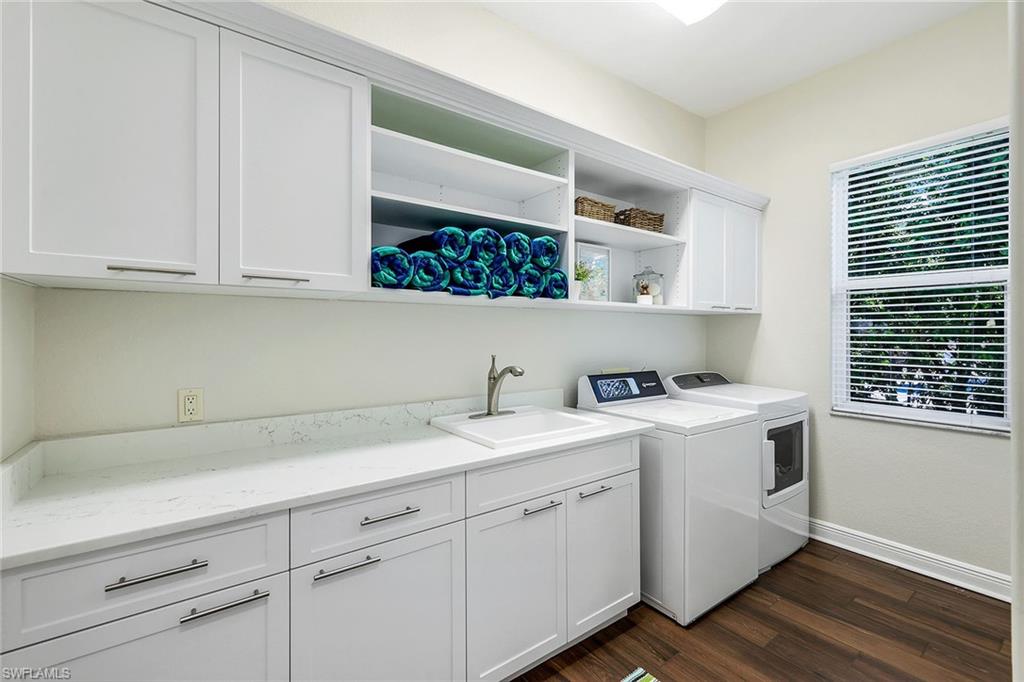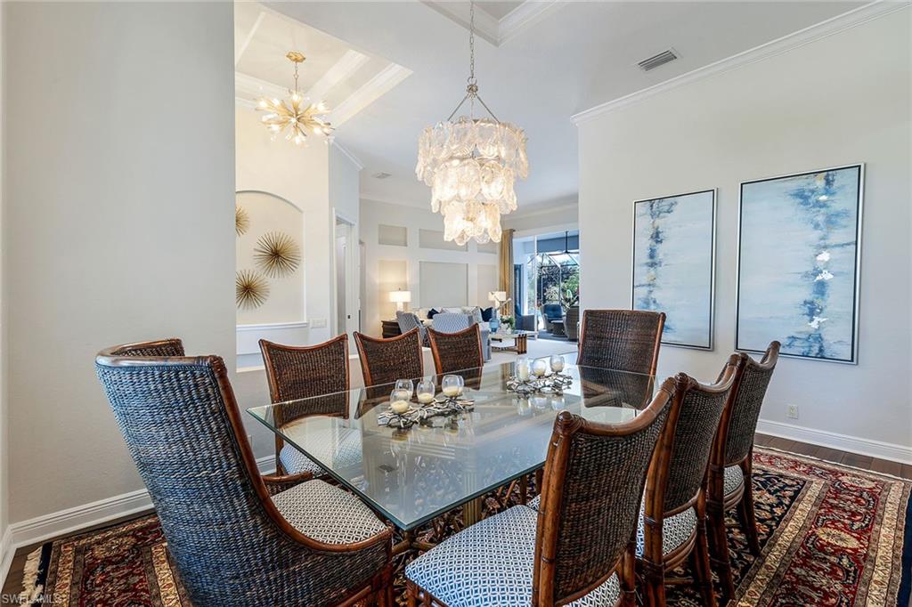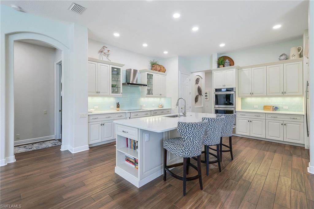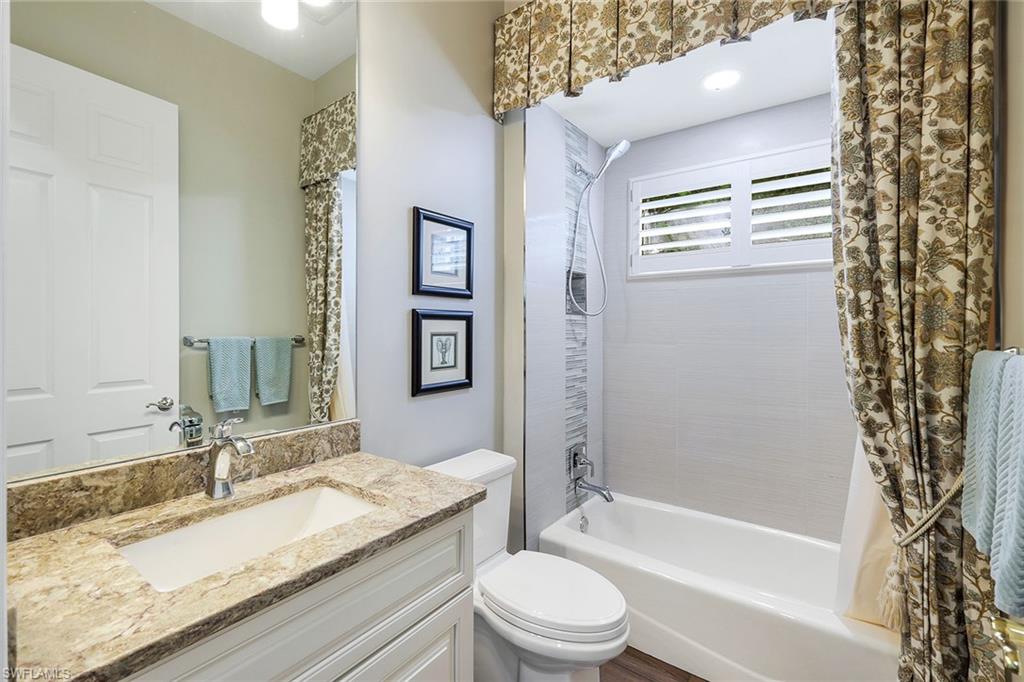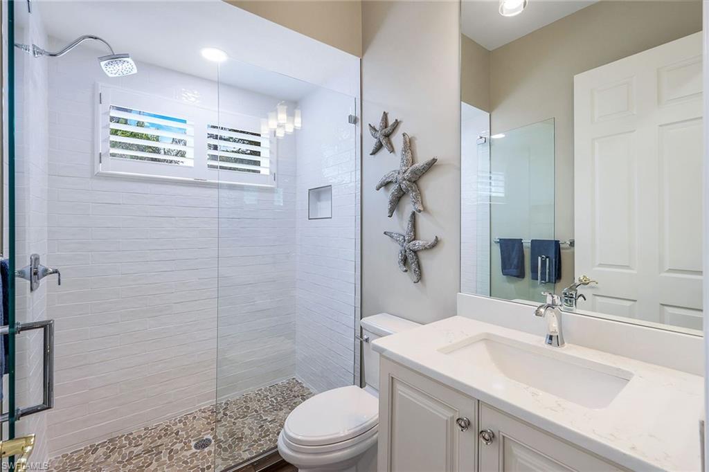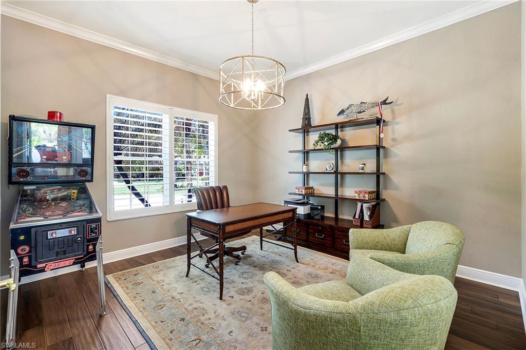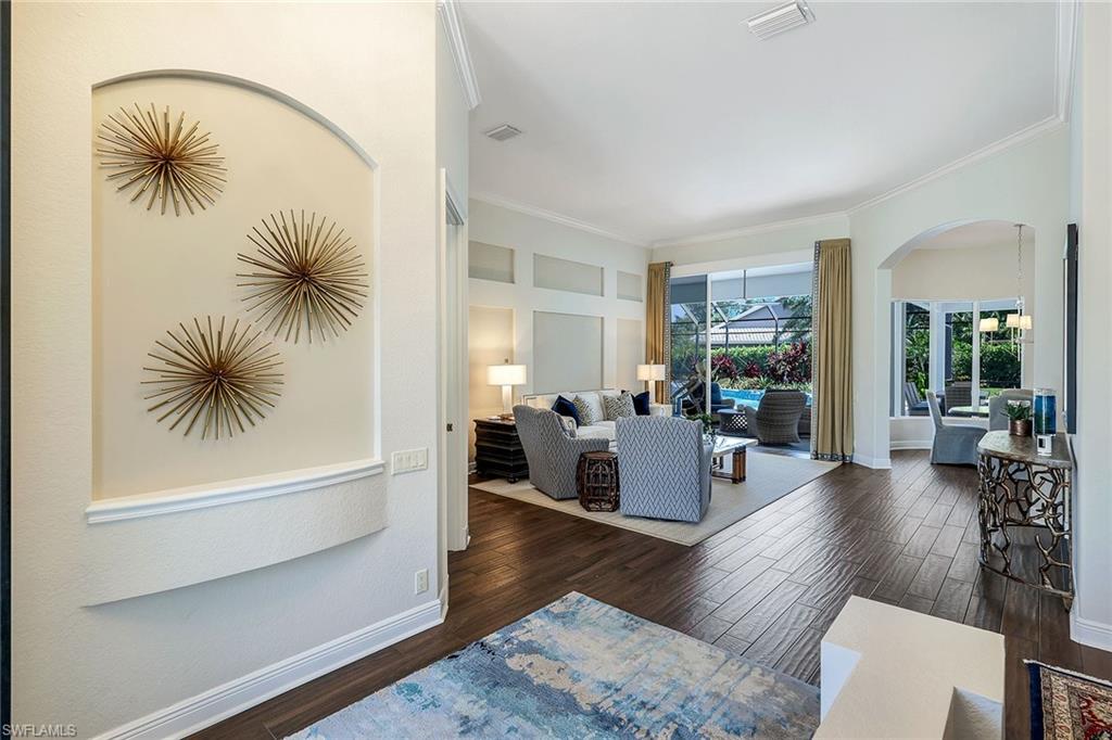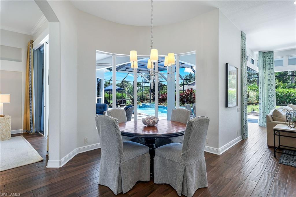 This reimagined residence blends sophisticated design with modern convenience in one of Southwest Florida’s most prestigious communities. Offering four bedrooms, a private den, and four full baths across 3,401 square feet of air-conditioned space, over 6,600 in total, every inch of this home has been thoughtfully curated for elevated living. From the moment you enter, the home’s reinspired layout and curated finishes evoke a single sentiment: Hello, gorgeous. New wood plank tile flows seamlessly throughout, complementing plantation shutters and expansive corner sliding glass doors that connect to a lush lanai. The redesigned kitchen and guest baths, executed by Cornerstone Kitchens, showcase premium finishes, a reverse osmosis system and custom cabinetry. The primary bath, redesigned by Alvarez Construction, exemplifies a commitment to elevated living with timeless detail and refined craftsmanship. The spa-inspired primary suite features a herringbone-patterned floor, wet-room design with multiple showers, a custom tub set in a bay window, dual vanities, a Toto toilet and a statement chandelier. Set within a quiet enclave framed by a serene lake on one end and a protected nature preserve on the other, the residence offers an intimate and peaceful setting, yet remains conveniently close to premier shopping, dining and cultural attractions. Exterior upgrades include a saltwater pool with full automation (resurfaced in 2023), outdoor kitchen, waterfall spa, new landscaping, and enhanced privacy. A new roof, hurricane-rated front windows, a whole-house water softener and new HVAC ensure turnkey peace of mind. In amenity-rich Pelican Landing with access to a private 34-acre Gulf-front Island beach, tennis, fitness, pickleball, kayaking, and optional golf memberships at The Colony Golf and Country Club or Pelican’s Nest Golf Club. Schedule your private showing today.