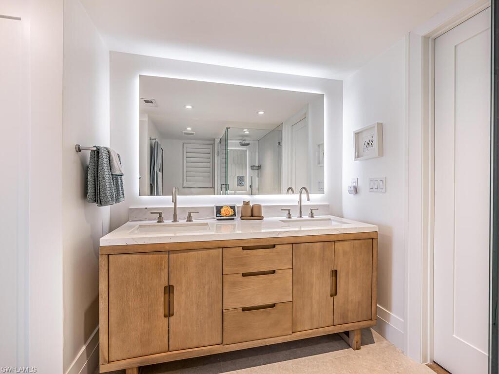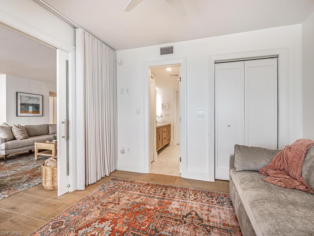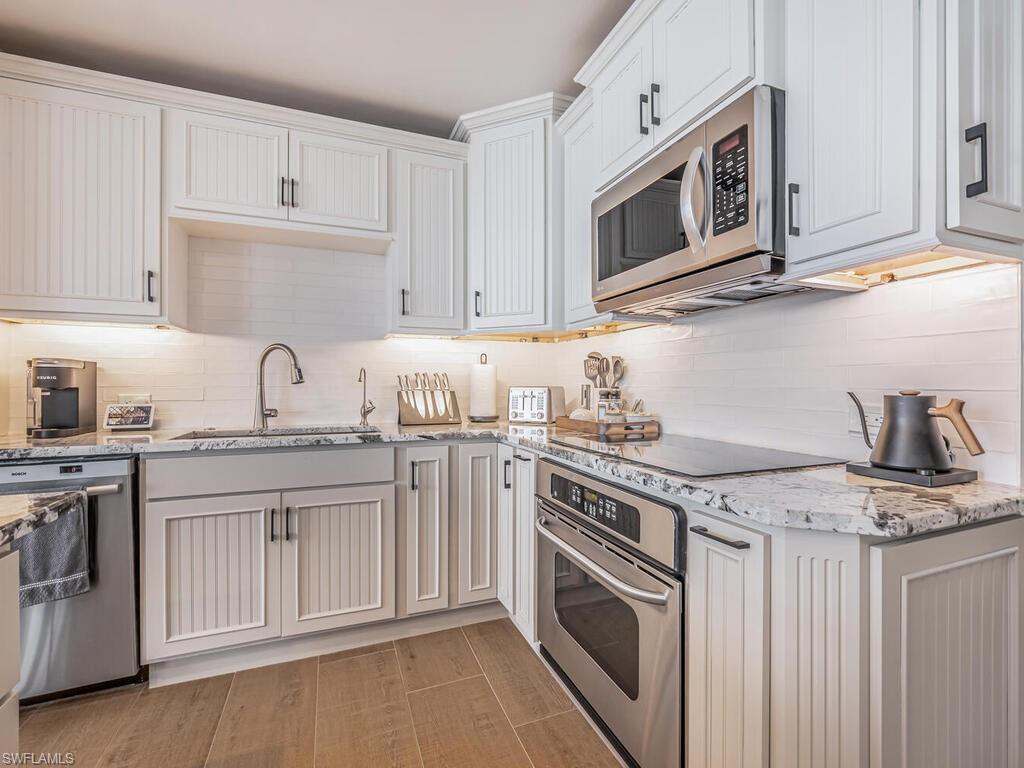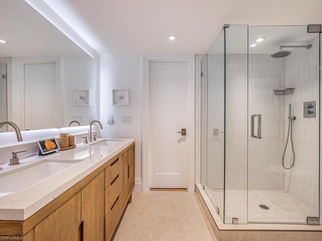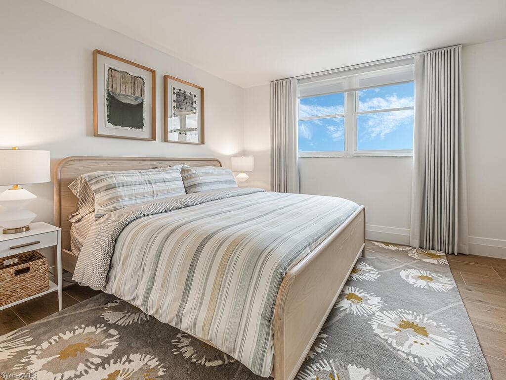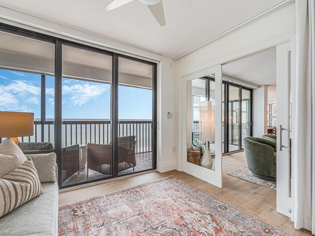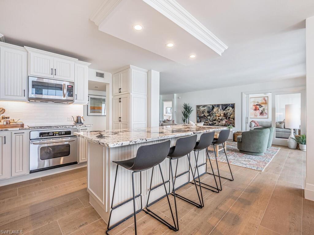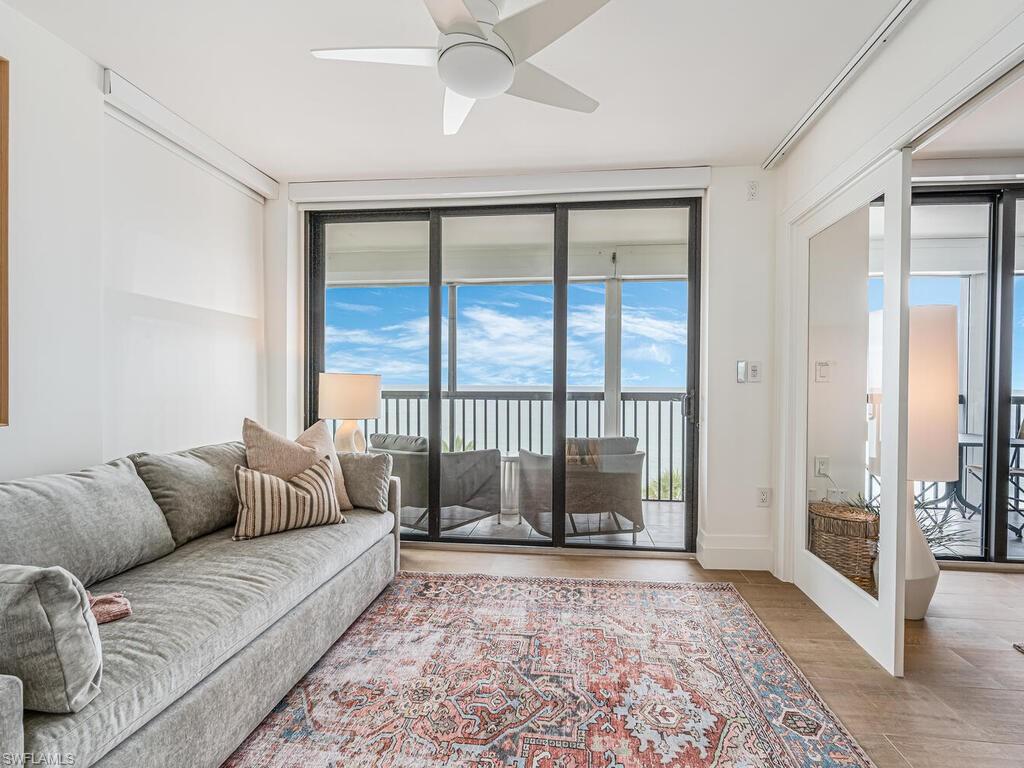 Exquisite turnkey-furnished, beachfront end-unit in the coveted Seawatch, offering breathtaking west and southwest views of pristine sunsets and stunning sunrises. Recently remodeled, this beautiful 3-bedroom condo features private bathroom access from each bedroom, with 2 elegantly updated bathrooms. Enjoy the luxury of new, barefoot-friendly tile flooring throughout, custom window coverings, motorized Hunter Douglas blinds, and 3 sleek Frame TVs. The open-concept kitchen boasts induction stove top, ample cabinetry, soft-close drawers, stone counters and specialty compartments, ideal for seamless meal prep or entertaining family and guests. The primary suite features a walk-in closet with custom cabinets, east-facing windows, sliding glass doors, and a private lanai, perfect for sunrise and savoring morning coffee with serene views of Vanderbilt Lagoon. Designed for peace of mind, the unit is equipped with hurricane-rated glass and electric shutters. Modern upgrades include a newer dishwasher, new washer and dryer, a 1.5-year-old HVAC system, and a water heater replaced just one year ago. Also features a lockable storage closet great for owner’s effects during rentals. The Seawatch building shines with a fully remodeled lobby, common areas, swimming pool, ba"NOTE: Building is in process of installing brand new roof which should be completed shortly." Ideal for both end users and investors, the property allows monthly rentals. Located just five buildings north of Vanderbilt Beach’s public access point, Seawatch offers a tranquil beach experience, steps from the Turtle Club, La Playa, and Ritz-Carlton beachfront dining. Embrace coastal living at its finest in this meticulously updated retreat.