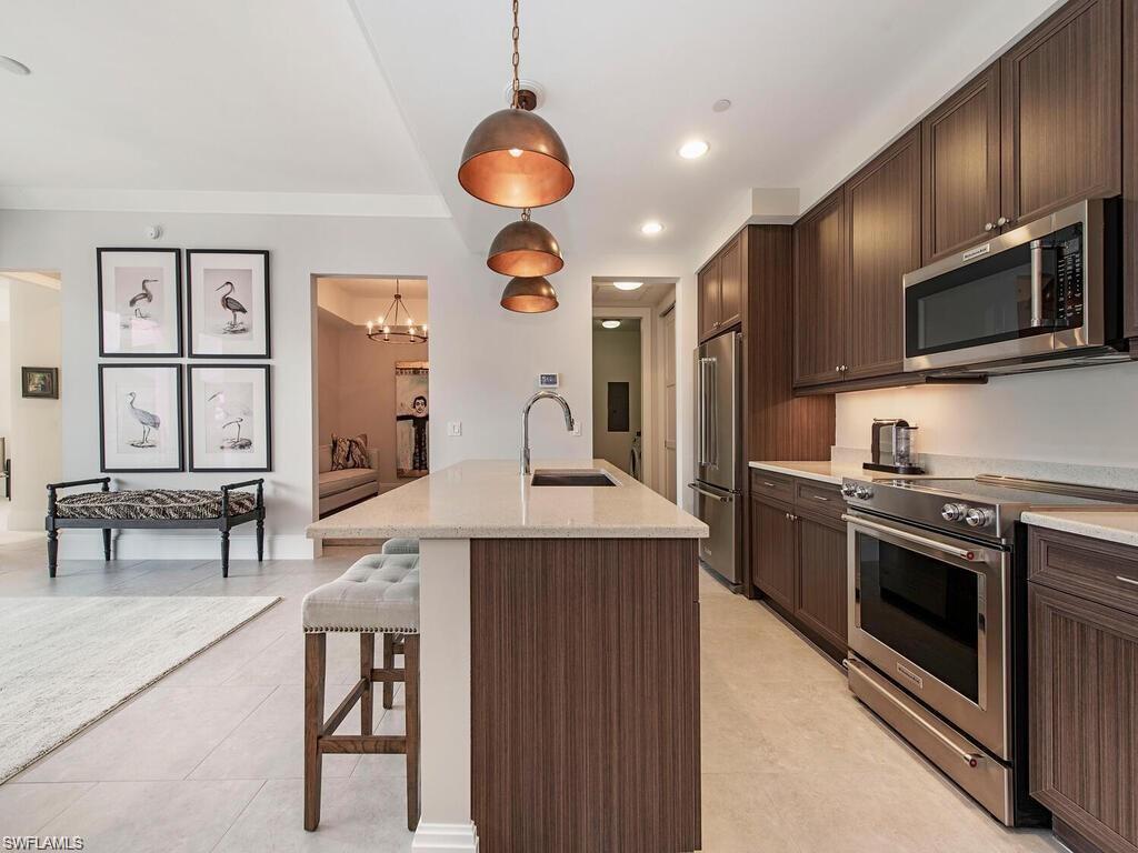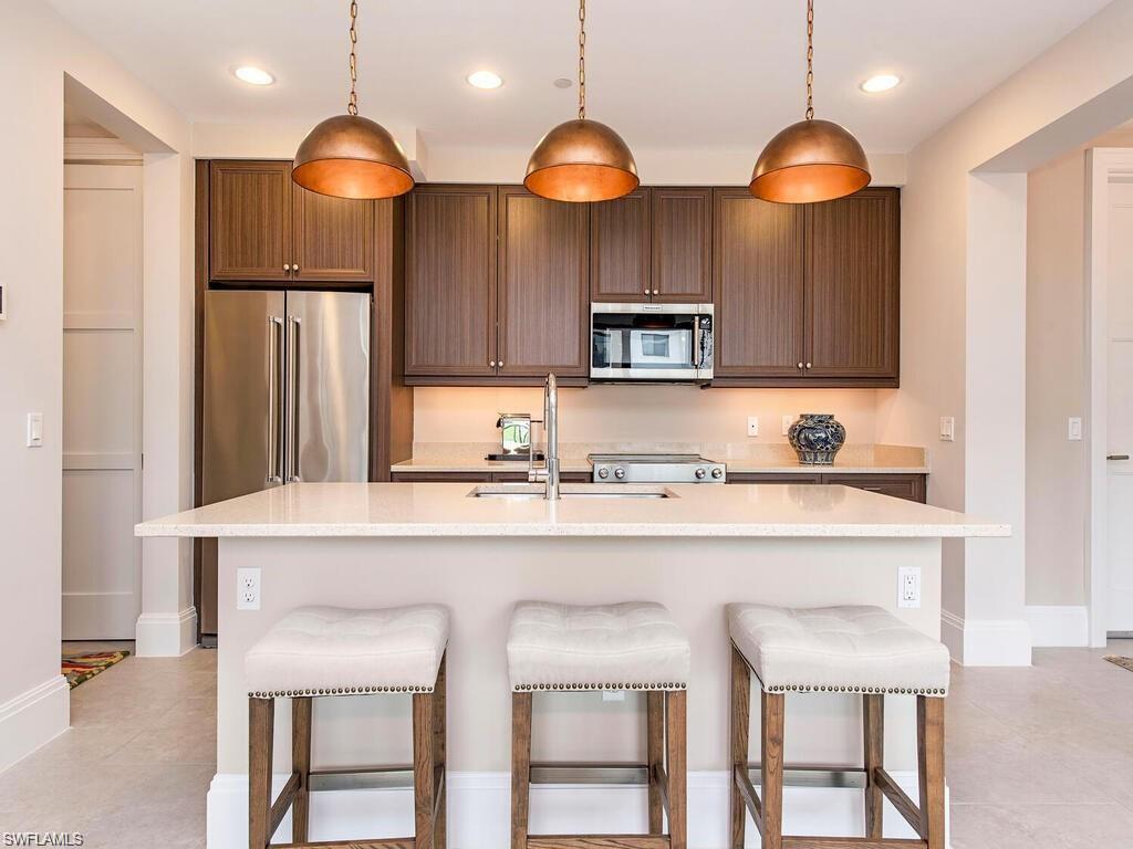 This is an exciting opportunity to enjoy a luxurious, laid-back lifestyle within this gorgeous downtown Naples condo. Stylish details are on show throughout the spacious 1,529sqft Ballard layout while two bedrooms, two bathrooms and a den ensure there’s plenty of space to spread out and relax. Sure to make cooking a pleasure, the impeccable kitchen boasts a suite of stainless steel appliances, an island with breakfast bar seating plus views over the living space. A wall of slider doors leads out to the 20x9-foot covered balcony where you can host guests and admire views over the communal courtyard and pool. Naples Square is a lavish pet-friendly community and offers a fitness center, a clubroom, a resort-style pool and spa along with BBQ grills and a fire pit in the courtyard. There’s under-building parking and extra storage while this prized location ensures you’re never far from everything you could ever need. A short walk will take you to 5th Avenue’s renowned shopping, dining and entertainment options while the white sand and crystal clear water of Naples Beach is only moments away.