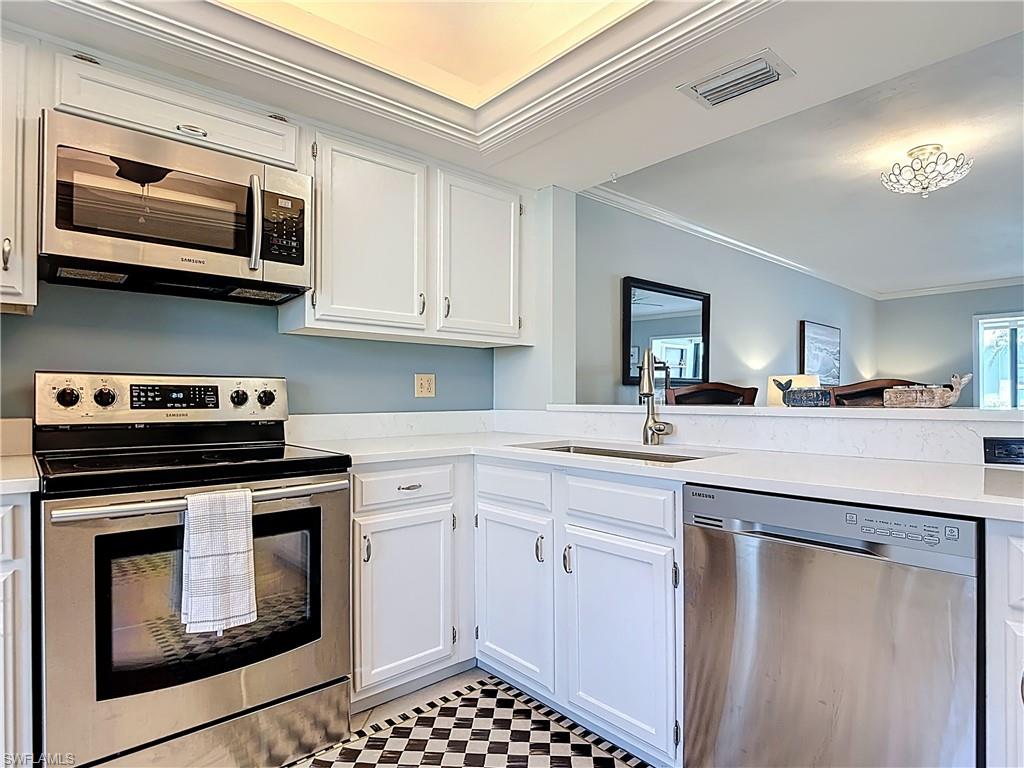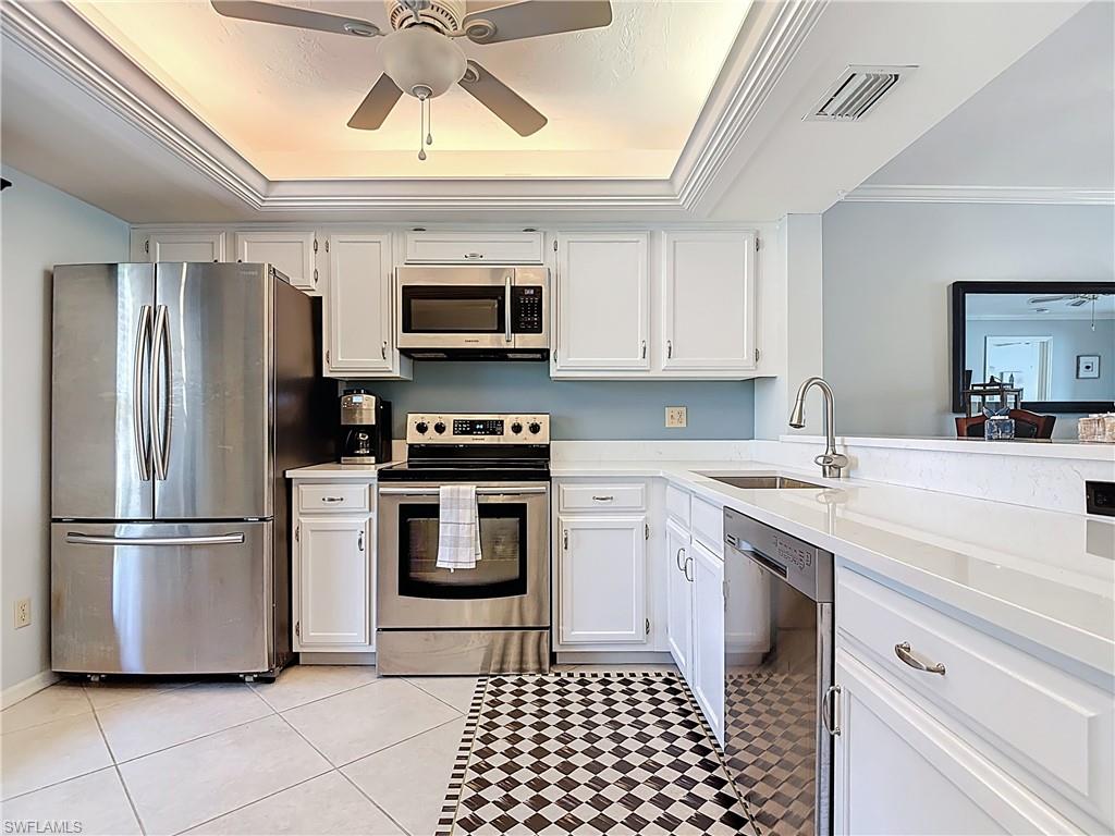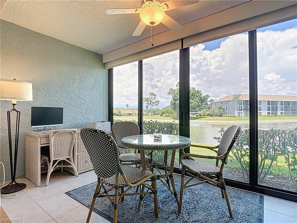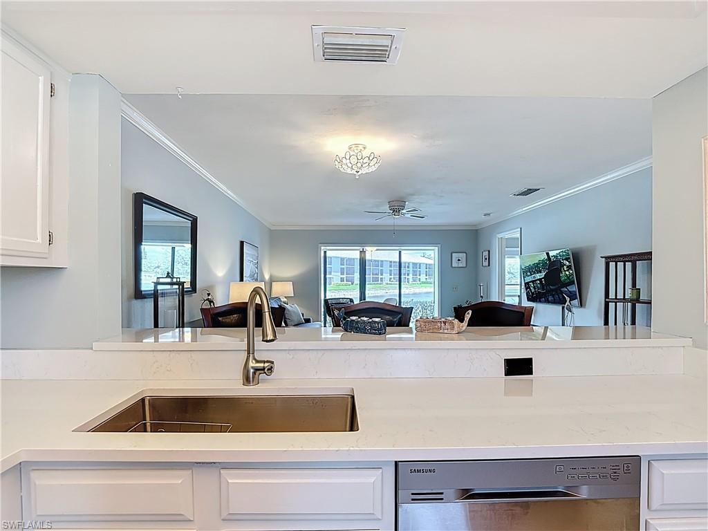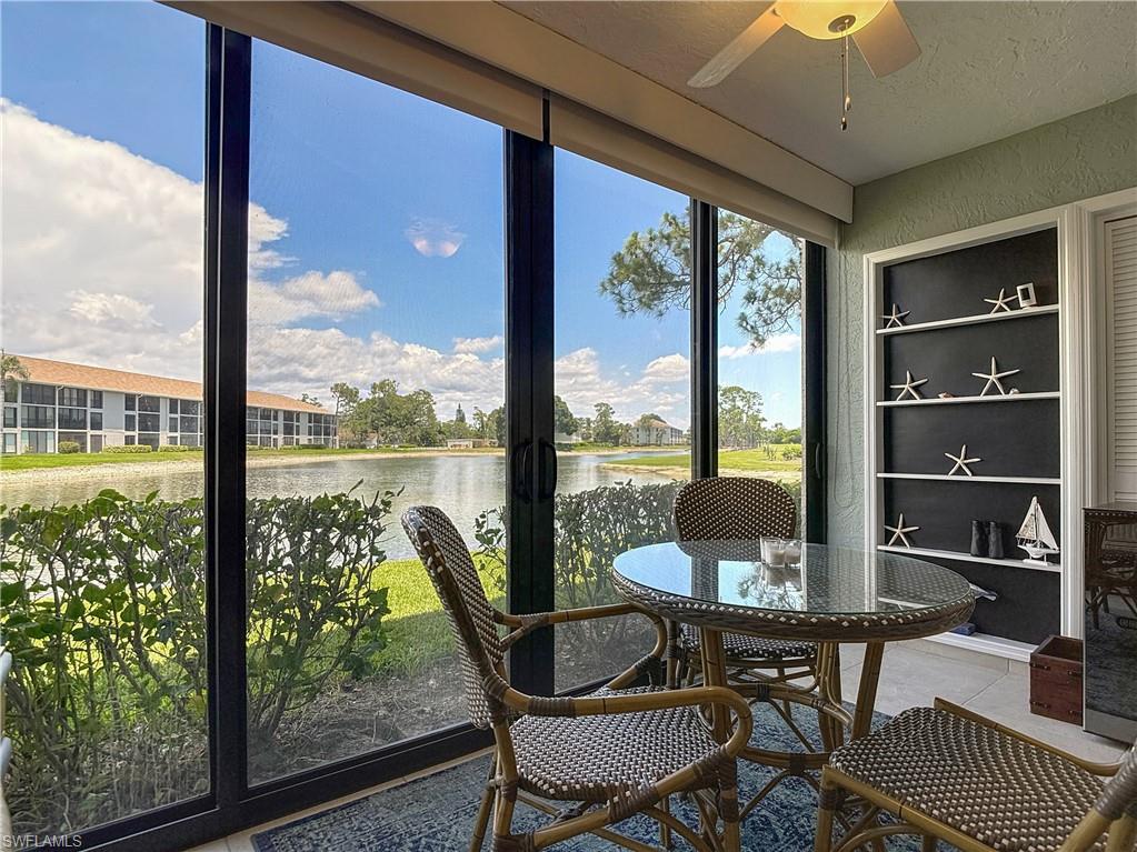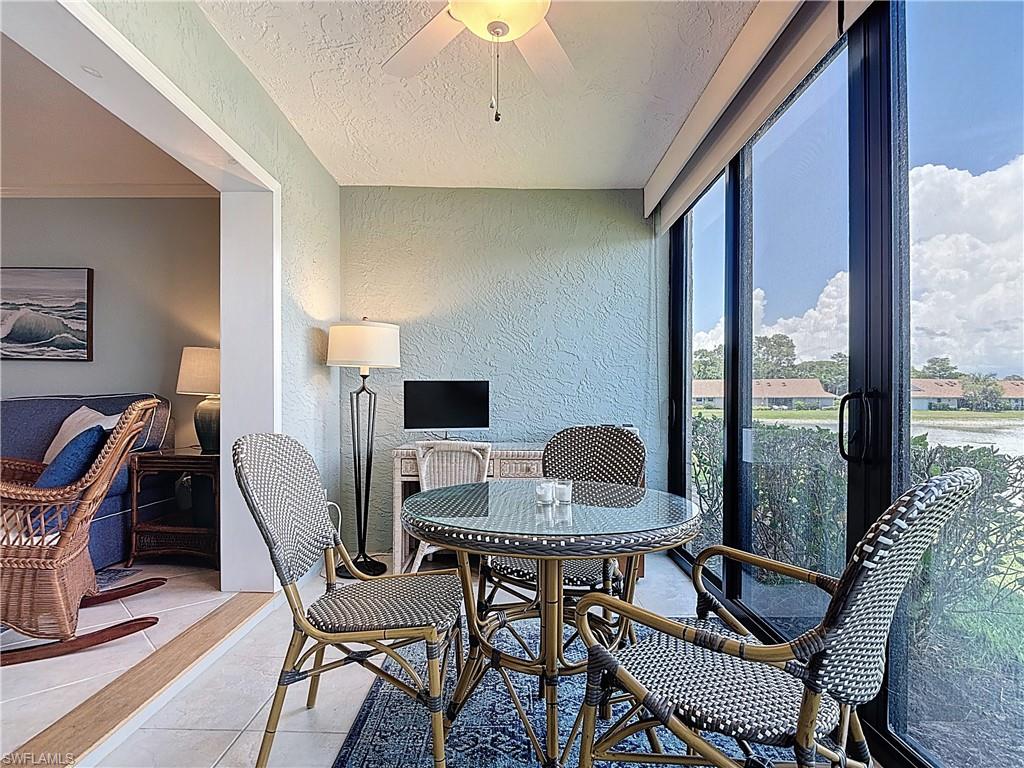 ATTENTION ALL GOLFERS --- Are you missing out on beautiful sunny days on the Greens 'waiting' on a list? You do not want to miss this opportunity! Why wait when you can be in the game now? Foxfire Golf & Country Club is very well established and one of Naples most desired BUNDLED golf communities with no initiation fees AND has over 30 RECIPROCAL golfing opportunities! Foxfire is a gated full amenities community to include 27-Holes of Arthur Hills Golf, Driving Range, Putting Greens, practice Sand Traps and Pro Shop. Cool off in the community pools, get your game on at the Har-Tru tennis courts, work off your stress at the Nautilus/Free weights fitness center or relax with a book at the community library. Be sure to sign up for the many social activities such as Bocce, Bingo, Book Club, Bridge, Mah Jongg, Arts & Crafts, Trivia and even a Travel Club! Top your day off with your onsite dining services to include the full service fine dining restaurant, grill & lounge and the Halfway House. When you do make it back home you will enjoy your wind down in your nicely appointed 1st FLOOR 2bd/2ba piece of paradise, located in Flood Zone X (no flood insurance required). TURNKEY furnished and ready for you. Like-new stainless steel Samsung appliances, Quartz kitchen countertops, open pass-through with breakfast bar, large tile on the diagonal throughout main living areas and Berber-like carpeting in bedrooms. Tastefully decorated with a soothing color palette. Awake in the morning, sipping your coffee with a sunrise view of the golf course and lake. Your added bonus? The doors have been removed from the living room to the lanai and has been glassed in for extra living space. You can choose to A/C your space with sun shades or slide the glassed doors to enjoy fresh air with the screened panels. You will park with ease in your assigned carport steps from your door, outdoor storage closet, front patio sitting area with bicycle storage and plenty of guest parking. You can't beat this location; ONLY 5 miles to Naples' pristine beaches, downtown 5th Avenue's boutique shopping, award-winning dining, performing art theater, art galleries, communty parks and nightlife opportunities to envy. Centrally located with easy access to I-75, medical and hospital facilities, grocery, county services and Naples Airport and aviation services. Schedule your tour now. Virtual tour available.