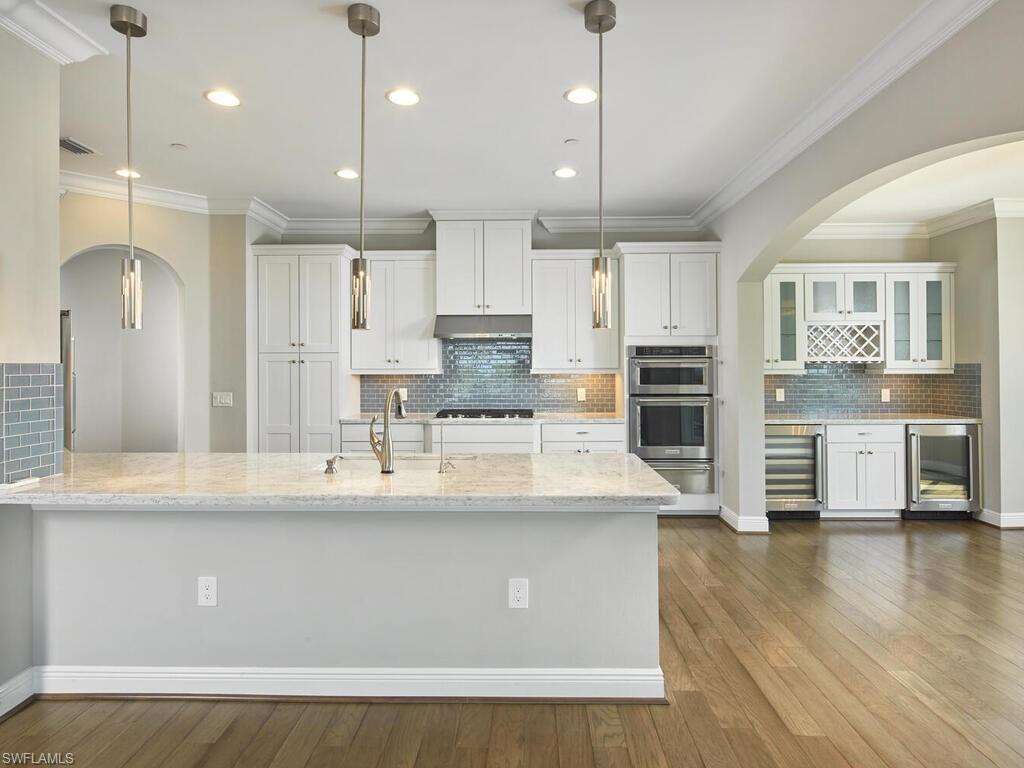 One of those rare and choice desirable Cielo locations, this is a very special Cielo that presents lots of natural light with expansive sunset views from the wrap-around lanai. Take in this beautiful water view of the Estero Bay. You're going to LOVE THIS FLOOR PLAN! 2,900 square feet of air-conditioned living area, 3 beds + den, 3.5 baths in this stunning open concept residence. Amazing kitchen (with gas cook top)and warming drawer below double ovens. Customized bar area with both wine and beverage refrigeration. Wood flooring throughout. Immaculate condition and ready to be enjoyed. Cielo was built to the highest hurricane storm code AND this residence comes with storm shutters, as well two parking spaces in the garage. The Colony offers the best possible lifestyle with membership to waterfront dining at The Bay Club, PRIVATE BEACH PARK, tennis, canoeing/kayaking, sailing club, bocce, and the latest sensation...Pickle ball! Located within minutes of shopping, restaurants, sports arenas, performing art centers, world-renowned beaches, and SWFL international airport.