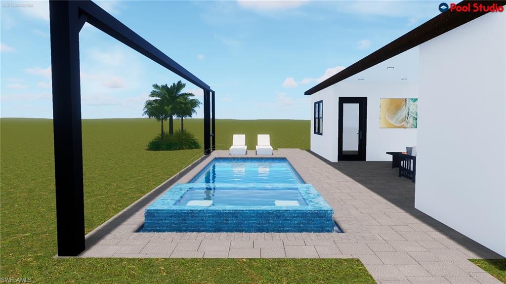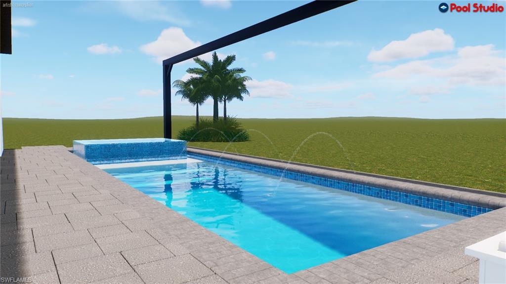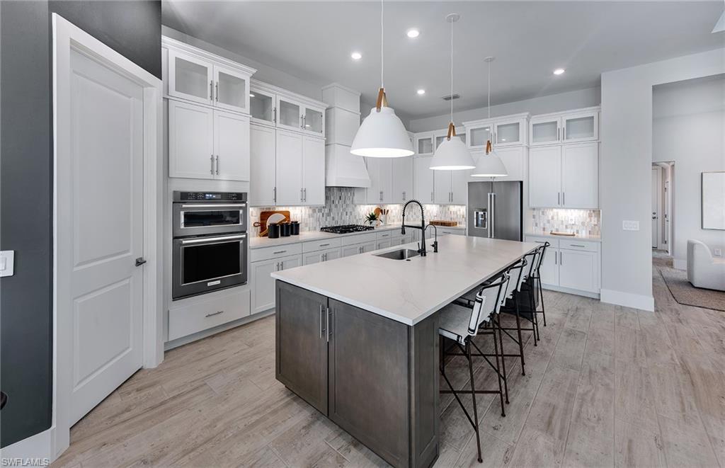 Move-in ready and located in the premier gated community of Terreno by DiVosta, the newly constructed Layton floorplan offers 4 bedrooms, 3.5 bathrooms, and exceptional outdoor living. This home showcases a custom pool with screened enclosure and a dedicated pool bath—perfect for entertaining or relaxing in your private oasis. Interior upgrades include stylish two-tone kitchen cabinetry with a built-in hood, quartz countertops, built-in KitchenAid appliances, and 8"x40" tile flooring throughout. The laundry room is equipped with upper cabinets and countertops for added convenience, and the garage features a durable epoxy finish. The home also includes a pre-plumb for an outdoor kitchen, enhancing its resort-style appeal. Terreno by DiVosta is a gated Naples community designed for those seeking luxury homes and a vibrant resort lifestyle. Community amenities include a 15,000 sq. ft. grand clubhouse with a large event space, catering kitchen, state-of-the-art fitness center, and exercise studio. Outdoor recreation is abundant with 8 pickleball courts, 2 tennis courts, a resort-style pool with lap lanes and heated spa, fire pit lounge, playground, and a dog park. Residents also enjoy a full-service restaurant, bar & grill, food truck drive-up area, and access to an adjacent 18-hole public golf course. For those searching for modern homes in a resort-style setting, Terreno offers an unmatched lifestyle in Naples, FL. Photos are from a furnished model. Options for this home may vary.