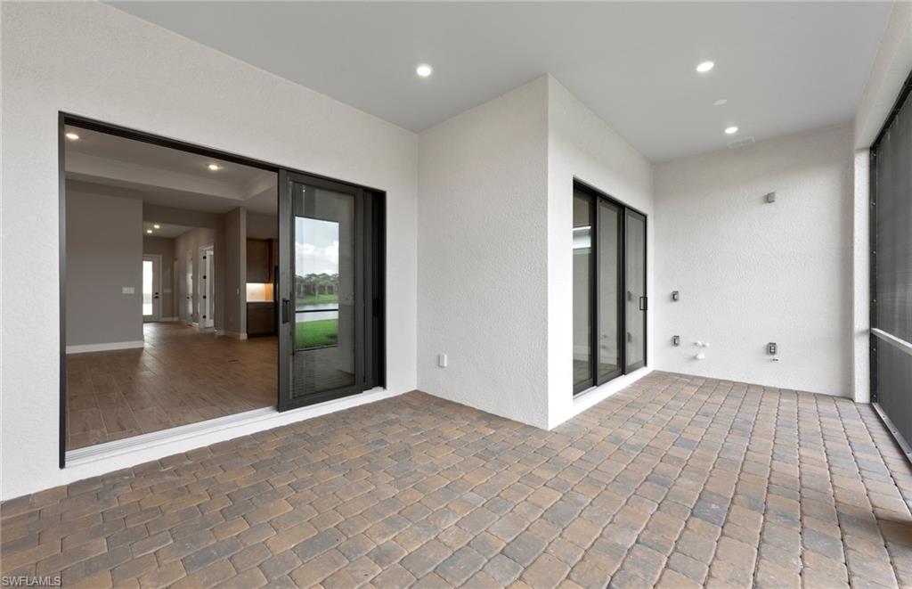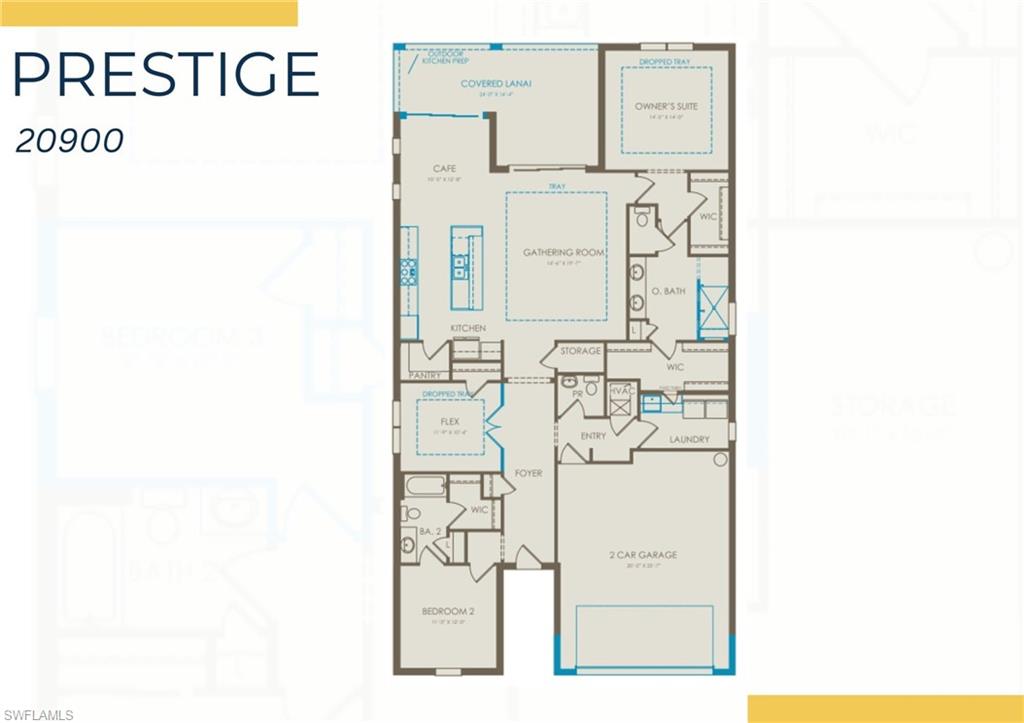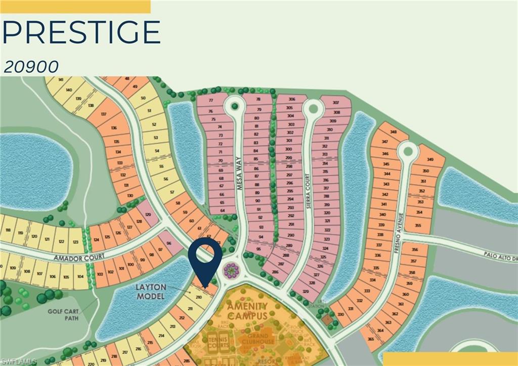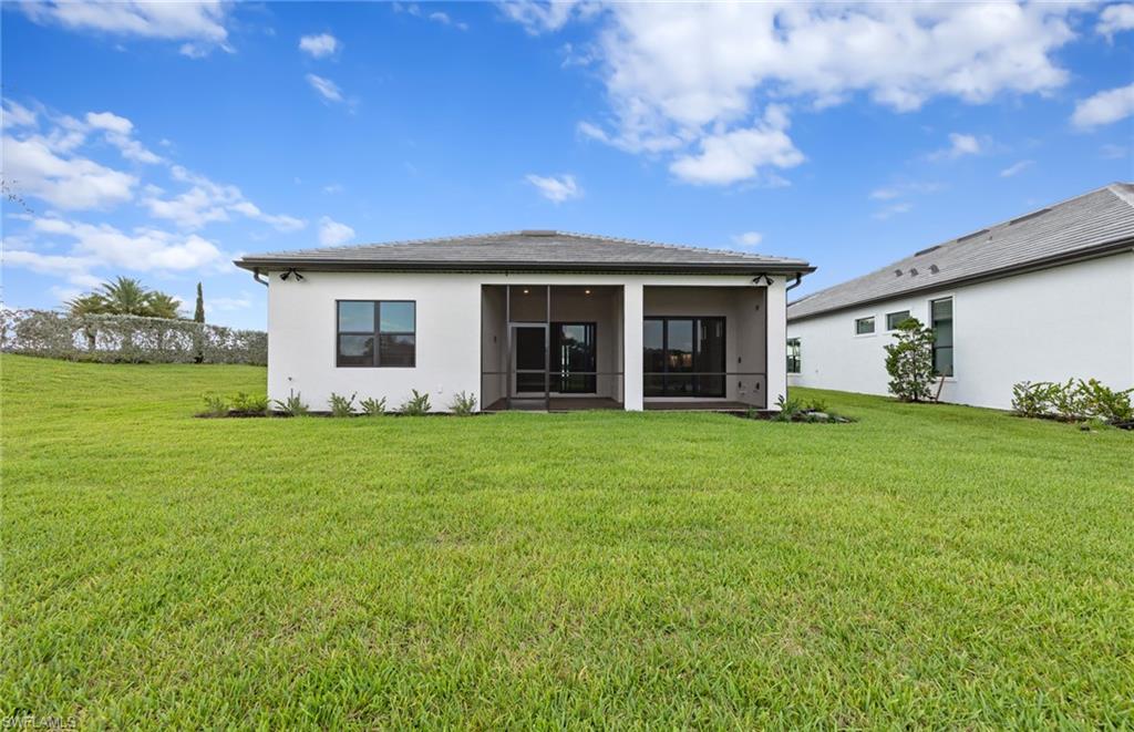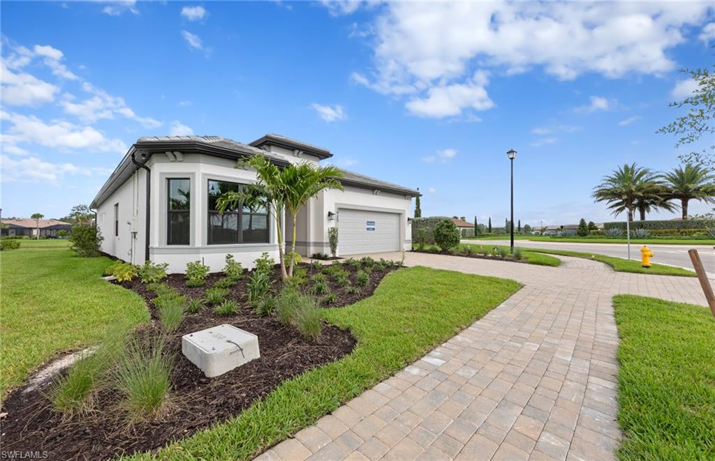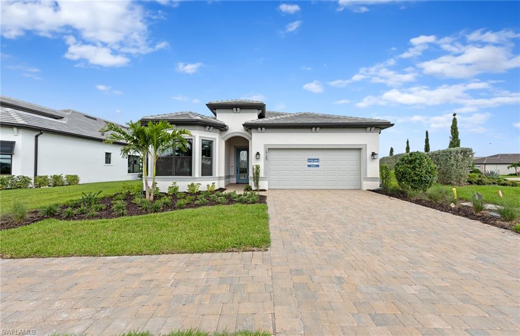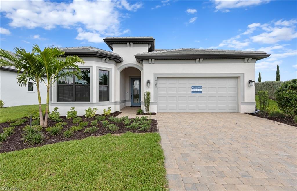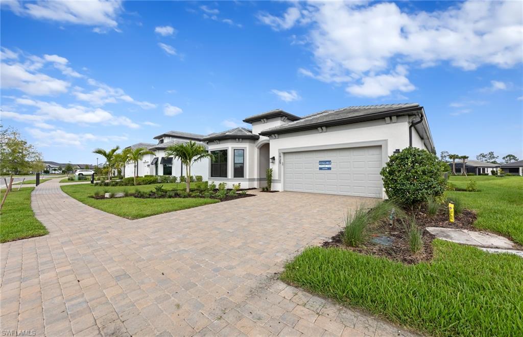 Now available and move-in ready, the newly constructed Prestige floorplan in Terreno by DiVosta offers 2 spacious en suite bedrooms, 2.5 bathrooms, a den, and an oversized garage—perfectly blending luxury, functionality, and style. Designed with open-concept living in mind, this home features an extended covered lanai with outdoor kitchen pre-plumb and a sliding glass door at the café area, ideal for indoor-outdoor entertaining. Interior upgrades include built-in stainless steel kitchen appliances, a designer cabinet hood, quartz countertops, and elegant two-tone paint. Tray ceilings enhance the gathering room, flex space, and owner’s suite, adding architectural interest and sophistication. The owner’s suite is a true retreat with a large walk-in shower, while the laundry room offers built-in cabinets and countertop workspace. Additional finishes include 8"x32" tile flooring throughout, 8' interior doors, epoxy-coated garage flooring, and a tankless water heater for added efficiency. Terreno by DiVosta is a premier gated community in Naples offering a true resort-style lifestyle. Residents enjoy access to a 15,000 sq. ft. grand clubhouse with a large event space and catering kitchen, a state-of-the-art fitness center, exercise studio, resort-style pool with lap lanes and a heated spa, and numerous recreational amenities. These include 8 pickleball courts, 2 tennis courts, a playground, fire pit lounge, two dog parks, and an on-site full-service restaurant and bar & grill. The community is also adjacent to an 18-hole public golf course and features a dedicated food truck drive-up area.