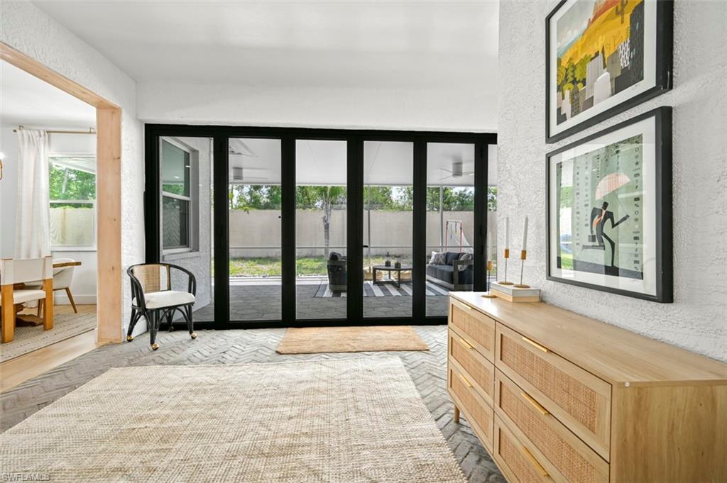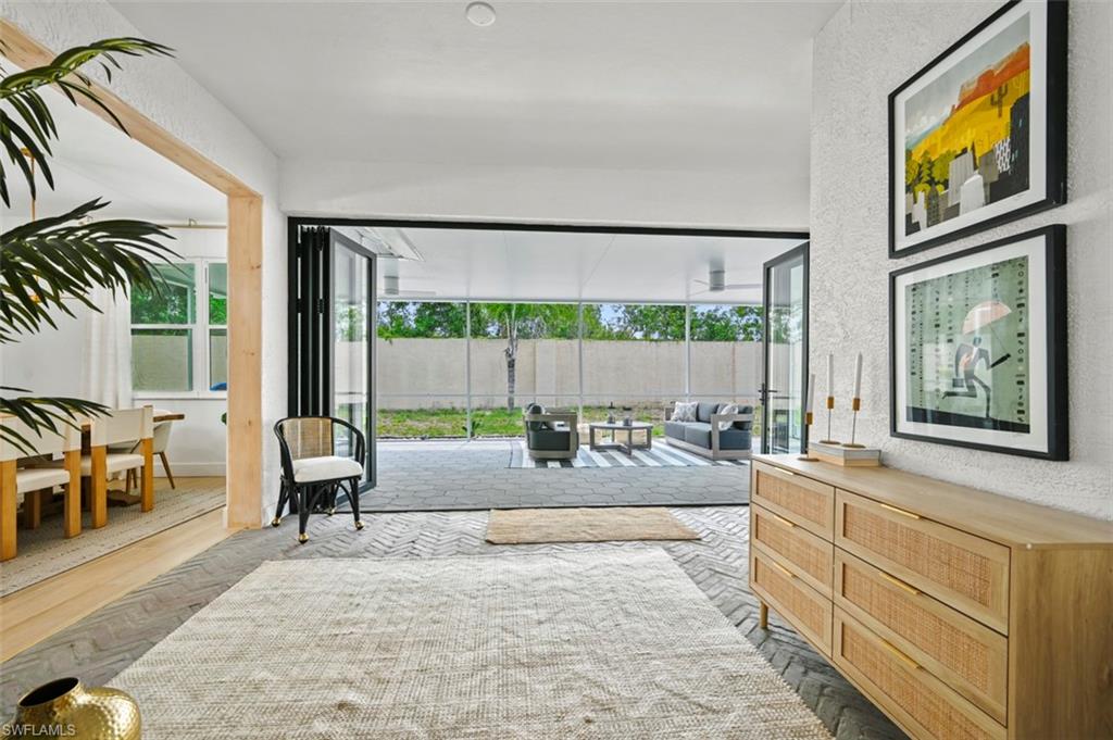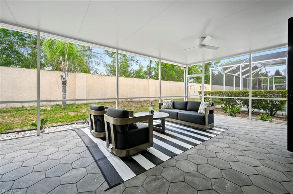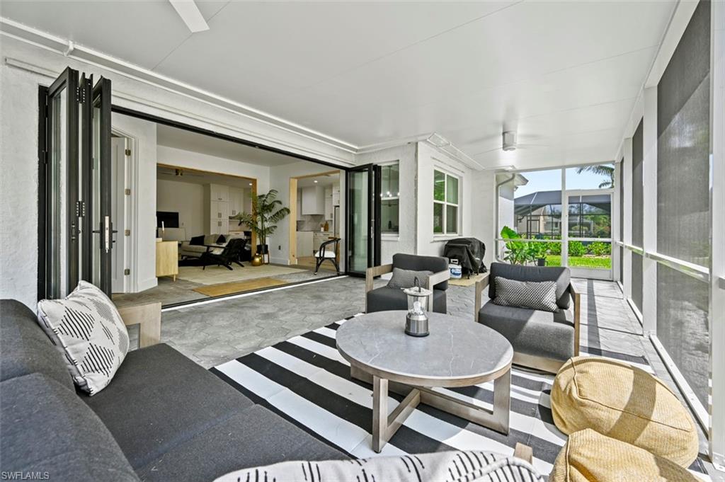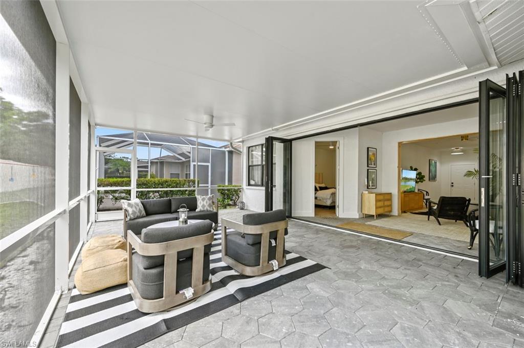 WOW! Completely remodeled home with a thoughtfully reimagined floor plan that delivers top-quality upgrades throughout. The heart of the home is the stunning new kitchen featuring waterfall quartz countertops, Bespoke Samsung appliances, sliding pull-out shelves in every cabinet, and a sleek, functional design. Interior doors have been raised to 8 feet and are solid core doors, giving the home the feel of higher ceilings and adding to the spacious, modern aesthetic, plus create a quieter environment. All-new plank tile flooring, accented with custom brickwork, adds warmth and character throughout. The recently completed extended covered lanai and rare accordion-style sliding glass doors offer seamless indoor-outdoor living, expanding your usable space in the best way. Both bathrooms have been beautifully remodeled, including a primary suite with a walk-in shower, freestanding soaking tub, and custom closet systems. Additional upgrades include a new roof, new A/C, all new plumbing pipes and fixtures, LED recessed lighting, an insulated garage, a dedicated family game room, and a custom storage area. Stoneybrook is conveniently located in the heart of Estero near Miromar Outlets, Publix, RSW & FGCU and within walking distance to Pinewoods Elementary, an A-rated school!
