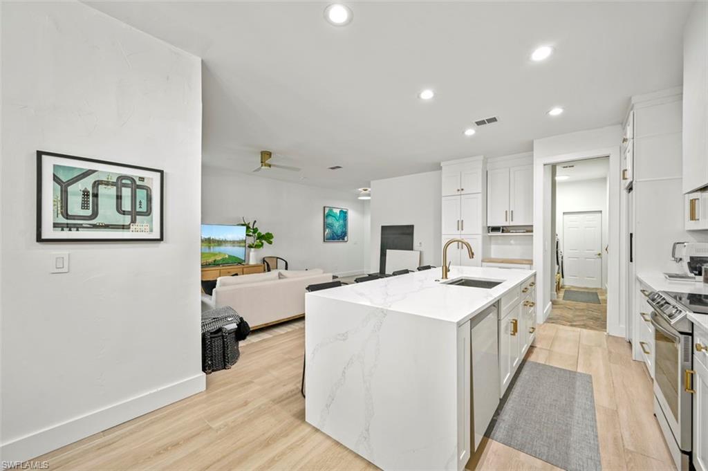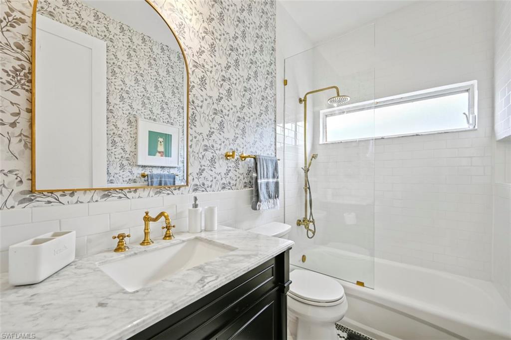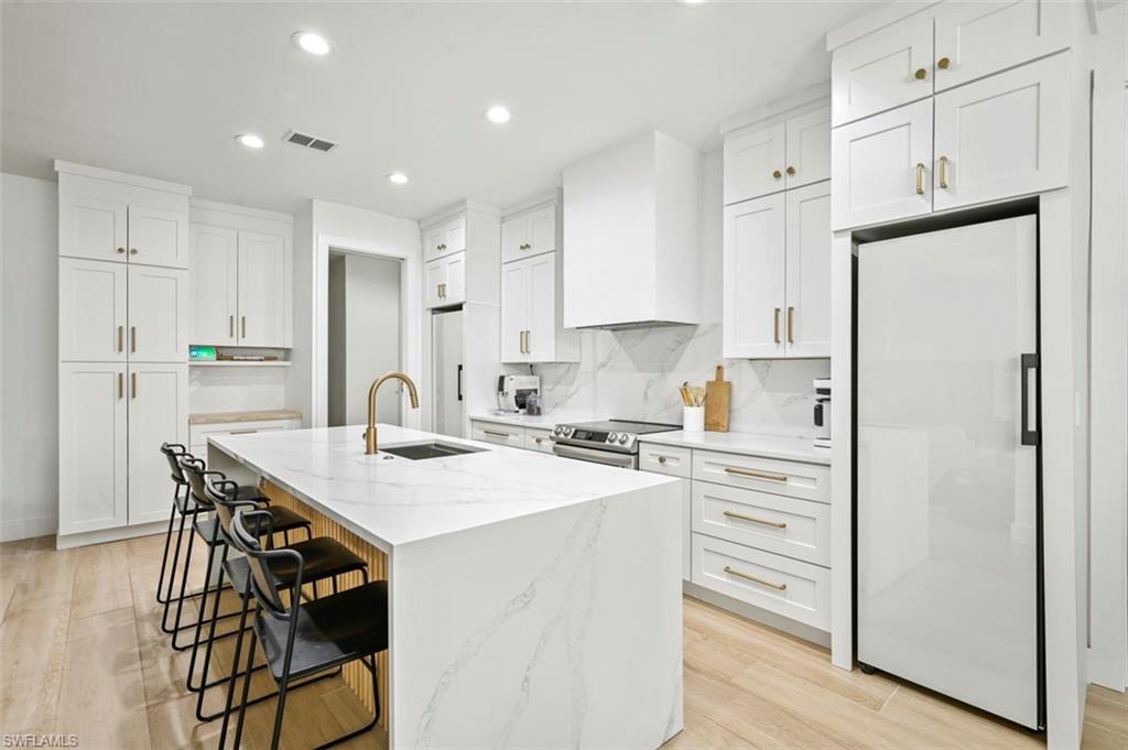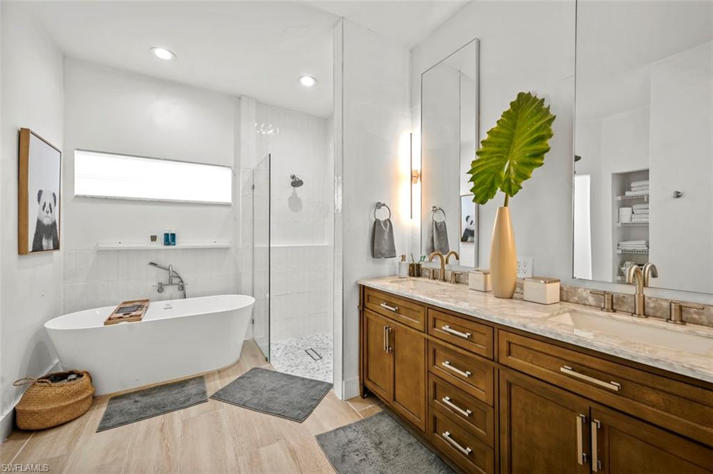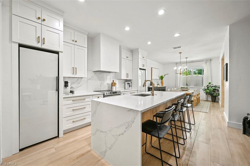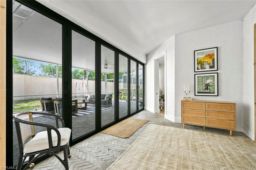WOW! Completely remodeled home with a thoughtfully reimagined floor plan that delivers top-quality upgrades throughout. The heart of the home is the stunning new kitchen featuring waterfall quartz countertops, Bespoke Samsung appliances, sliding pull-out shelves in every cabinet, and a sleek, functional design. Interior doors have been raised to 8 feet and are solid core doors, giving the home the feel of higher ceilings and adding to the spacious, modern aesthetic, plus create a quieter environment. All-new plank tile flooring, accented with custom brickwork, adds warmth and character throughout. The recently completed extended covered lanai and rare accordion-style sliding glass doors offer seamless indoor-outdoor living, expanding your usable space in the best way. Both bathrooms have been beautifully remodeled, including a primary suite with a walk-in shower, freestanding soaking tub, and custom closet systems. Additional upgrades include a new roof, new A/C, all new plumbing pipes and fixtures, LED recessed lighting, an insulated garage, a dedicated family game room, and a custom storage area. Stoneybrook is conveniently located in the heart of Estero near Miromar Outlets, Publix, RSW & FGCU and within walking distance to Pinewoods Elementary, an A-rated school!