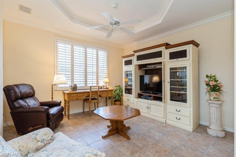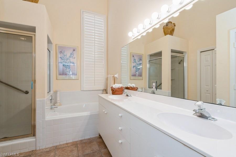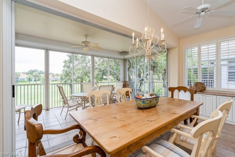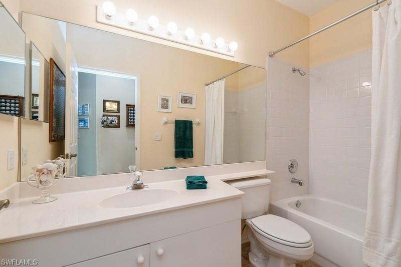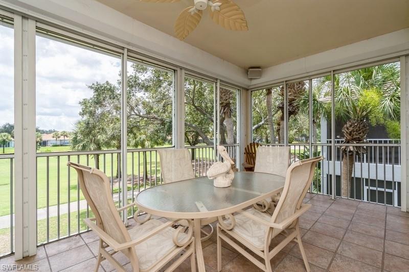 Desirable upper 3 bedroom and 3 full bath Coach Home on the golf course. Formal dining area currently used as a den w/entertainment center. The front guest room has Its own private bath. Office/Guest rm has built-in book cases/murphy bed. Large Lanai with eastern exposure offering delightful morning sunshine and welcome afternoon shade. Creekside Crossing Condos are the only units in Pelican Landing with "pocket sliders" to the Lanai that open all-the-way, bringing the outdoors in! Creekside is also the only Condo complex in Pelican Landing with two pools adjacent to each other. THREE YEAR OLD ROOF, Lanai storm shutters, vaulted ceilings, plantation shutters throughout, tile floors in wet and living areas, wood in three bedrooms and tankless hot water system. Laundry room has sink and broom closet. Epoxy coated garage floor. It is conveniently located just a few minutes to the Publix shopping center, 10 minutes to Coconut Point Mall, 15 minutes to the beach and 20 minutes to RSW Airport. Pelican Landing amenities include guard gated security. community center with planned social activities, professional fitness center, 12 Har Tru tennis cts, Bocce ctc, canoe/kayak docks w/boats, sailing center W/boats, butterfly garden, fishing pier, children's play park and a 34 acre island Gulf beach park serviced by Pelican Landing shuttle boats. Optional memberships subject to availability at The Nest Golf Club, a Tom Fazio golfer's delight with fabulous, remodeled clubhouse and dining.