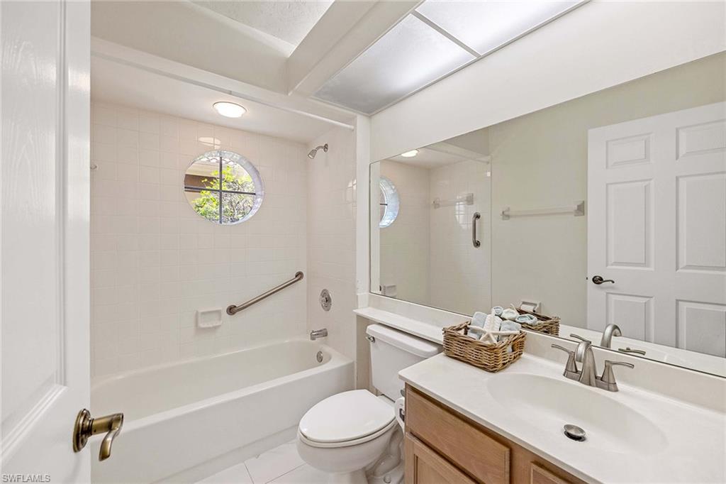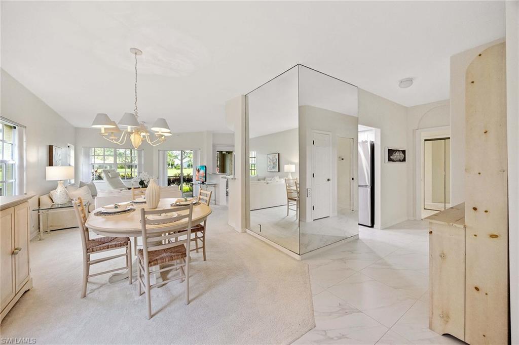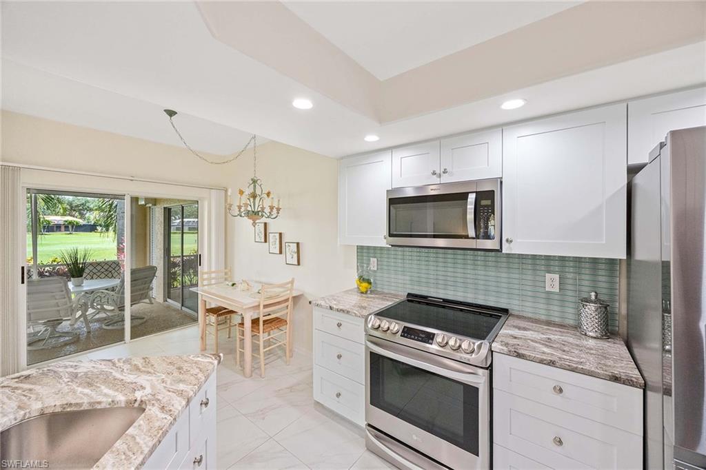 Enjoy serene golf course views from this well-appointed three-bedroom, two-bath residence with northeast exposure. Overlooking the 14th hole, the home features elegant tile flooring throughout and a recently remodeled kitchen, designed for functionality and style. A separate laundry room enhances everyday convenience, while a detached garage offers additional flexibility and storage. The interior layout is ideal for relaxed living and entertaining, and the orientation captures morning light with shaded afternoons, ideal for year-round enjoyment. In a premier golf community, Worthington Country Club, this home includes full golf membership and a vibrant tennis lifestyle with active leagues and events. A championship 18-hole golf course, five Har-Tru tennis courts and a stunning clubhouse with lovely dining, resort-style pool, fitness center and outdoor cabana. You will be minutes from Bonita Beach, Southwest Florida International Airport, and premier shopping and dining destinations. An exceptional offer for those seeking a sophisticated, maintenance-free lifestyle with direct access to championship golf and an elite racquet sports community. Enhancements are underway with five new tennis courts, four pickleball courts, and a new indoor-outdoor cabana with an electric pergola and no special assessment to owners.