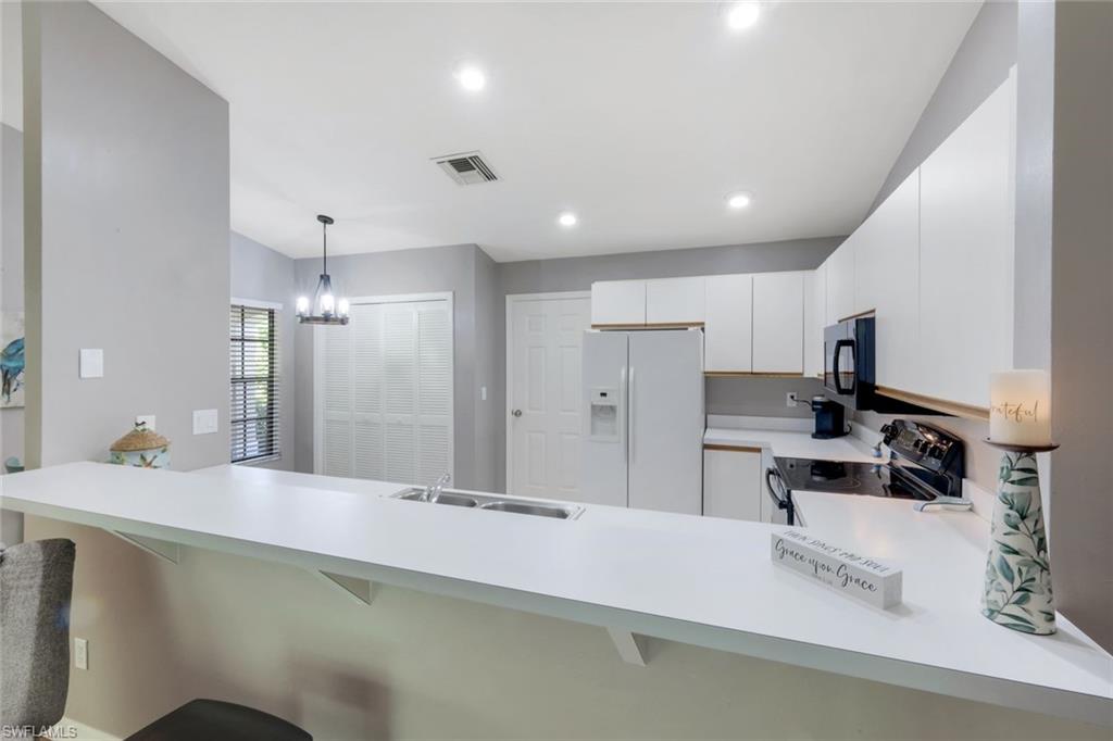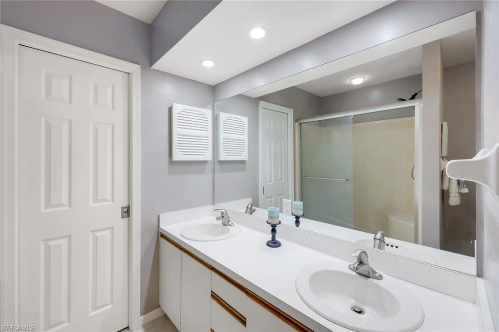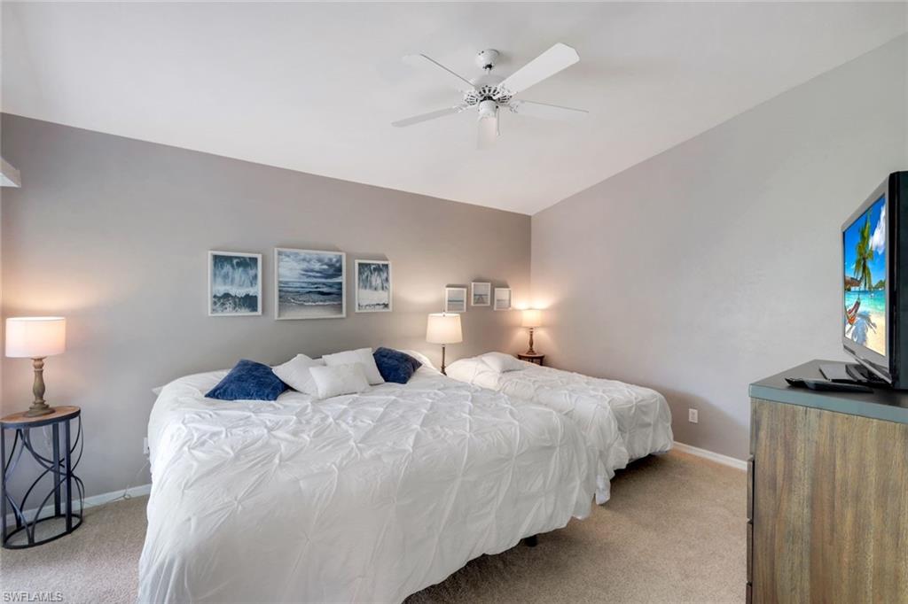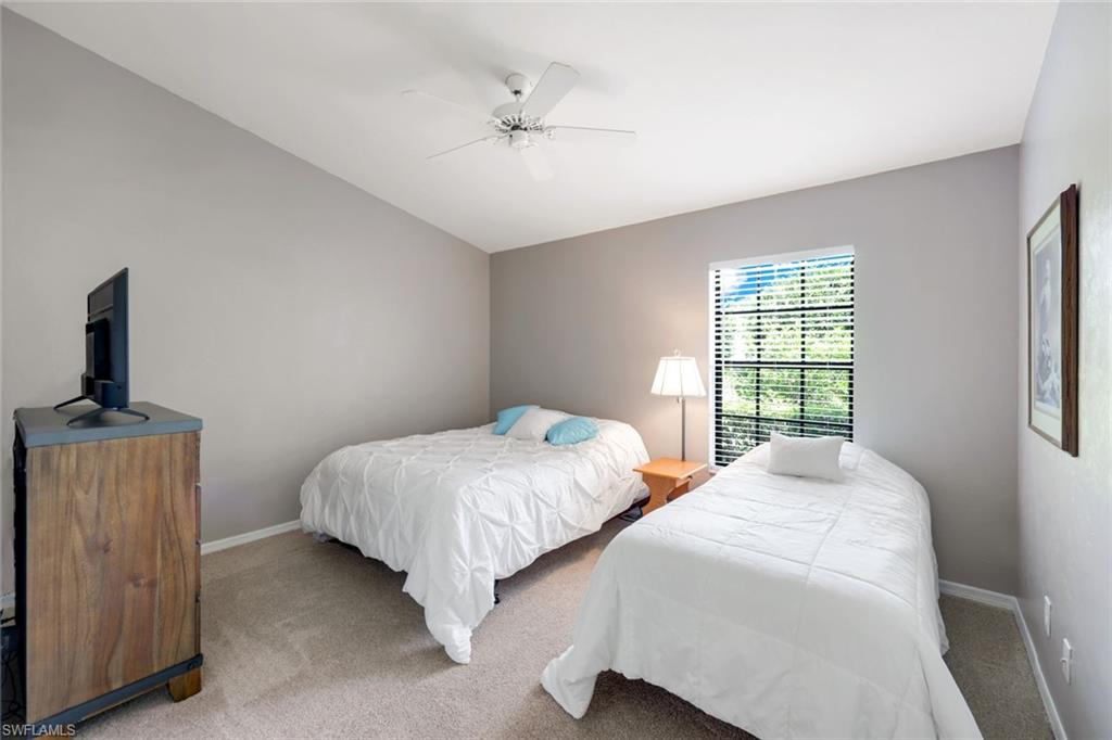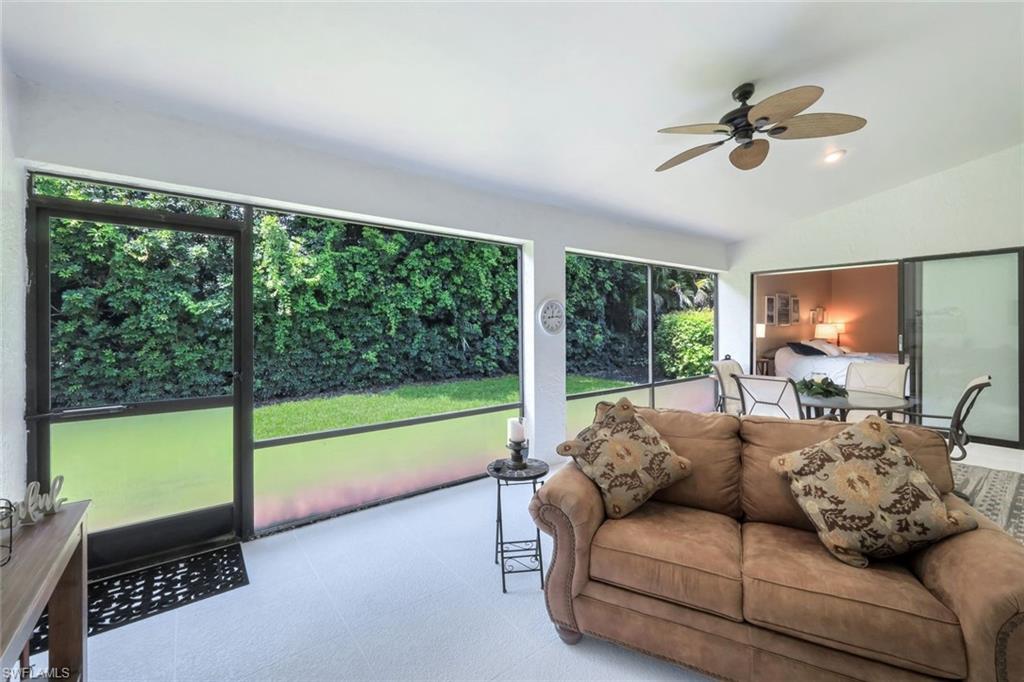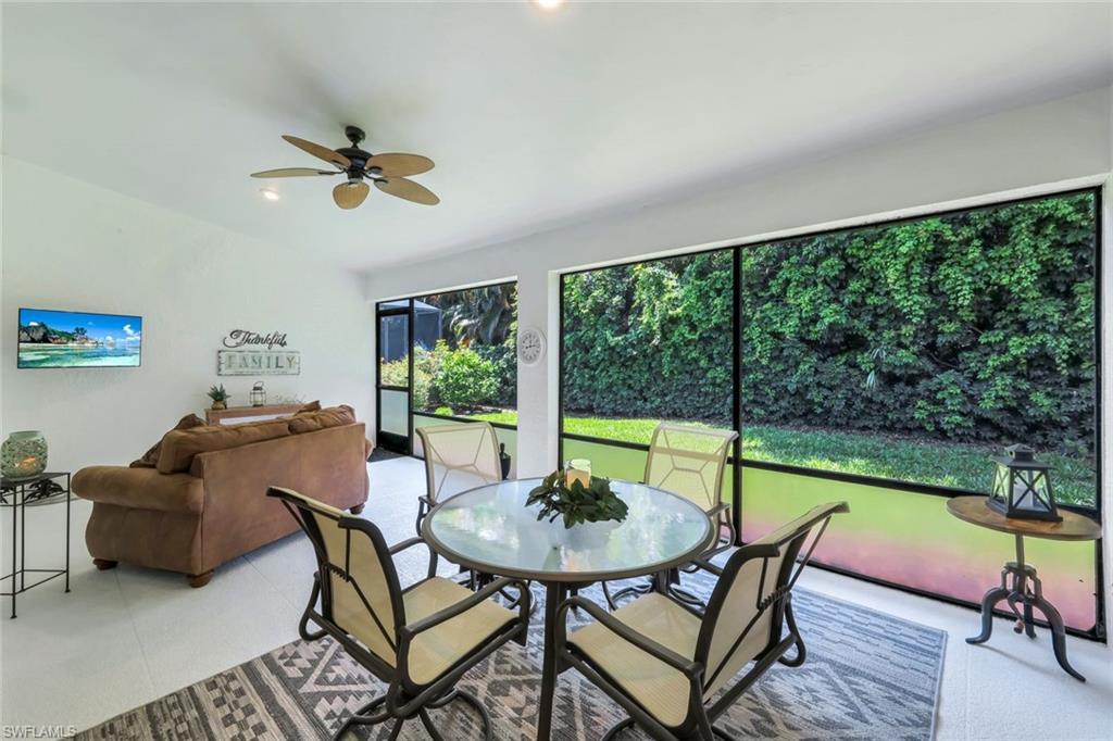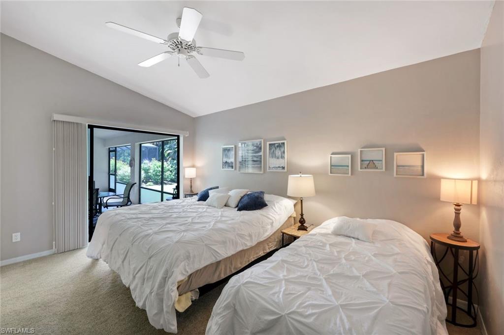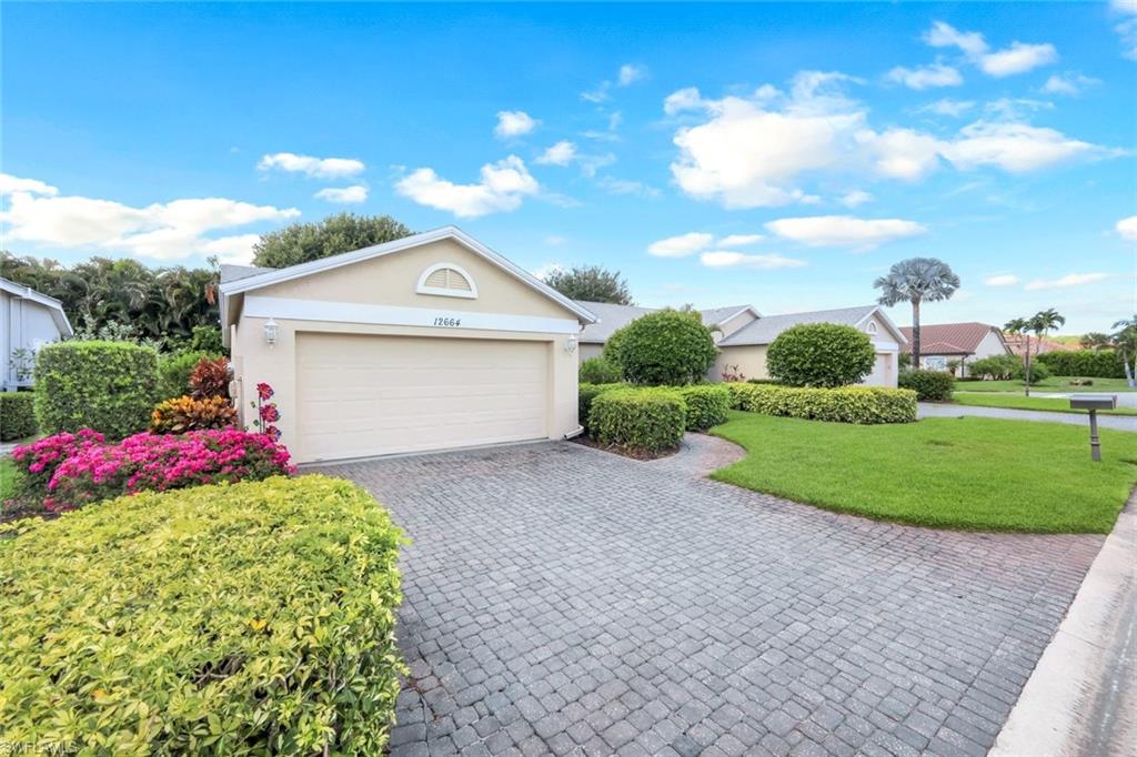 Exclusive Charter Golf Membership($50,000 value)! This adorable 2-bedroom, 2-bath villa features a 2 car garage and a functional layout with a comfortable living area, eat-in kitchen, and two generously sized bedrooms, each with private bath. The screened lanai offers a relaxing space to take in the peaceful setting. The “Charter” Golf Membership gives owners the flexibility to choose between “Golf & Social” or “Social-Only” privileges, on an annual basis, giving you access to a top-quality course and all club amenities. Hunters Ridge is a Private Golf & Country Club, not a bundled community, No Chelsea system and our golf member enthusiasts can play the course as often as they like! Hunters Ridge is very friendly, casual, and offers a large variety of social activities. Only 6 miles from Barefoot Beach Preserve! Just minutes to the best shopping, dining, entertainment, and the RSW Airport. 18-hole championship golf course, golf simulators, large community swimming pool with food & beverage service, activity center, fitness center, clubhouse, beautiful dining room and grill room, poolside cafe, tennis courts, pickleball courts and much more! Don’t miss this wonderful opportunity move into a prime golf course community!