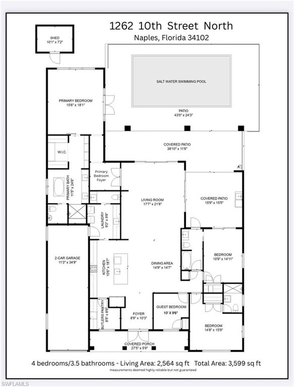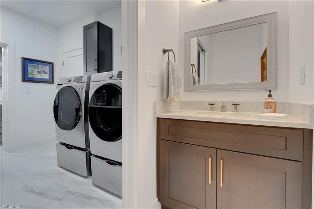 Get ready to say WOW once you enter this "BETTER than NEW", completely renovated 4-bedroom, 3.5-bath home. One step beyond the double front doors offers beautiful vistas all the way to the 15,000 gallon saltwater pool. This exceptional home is surrounded by lush landscaping and a serene back yard oasis AND it is in the X Flood Zone, so no flood insurance is required! Expanded and completely reimagined in 2023; it is more than double from its original size. No detail has been overlooked in the new design—from the sleek new roof to the polished Montevino porcelain tile flooring throughout. Respectfully, the new architectural addition pays homage to the original historic design. It's the best of both worlds. The light-filled open floor plan features impact windows and doors, all-new electrical and plumbing, and a whole-house water filtration system. The gourmet kitchen is a chef’s delight, boasting brand-new cabinetry, granite countertops, stainless steel appliances, and a spacious butler’s pantry—perfect for entertaining or daily living. Prewired for a whole-house generator, this home is built with comfort and security in mind. The extended 2-car garage provides ample room for vehicles and storage, while the resort-style saltwater pool invites you to relax and unwind in your private backyard oasis. Best of all, this home is situated in the coveted Lake Park community just minutes from downtown Naples, world-class beaches, shopping, dining, and top-tier entertainment. Move-in ready and better than new, this is the Florida lifestyle at its finest. Don’t miss your opportunity to own this exceptional property!
