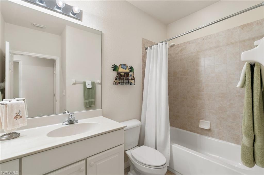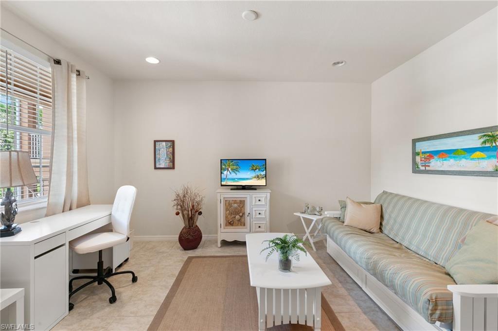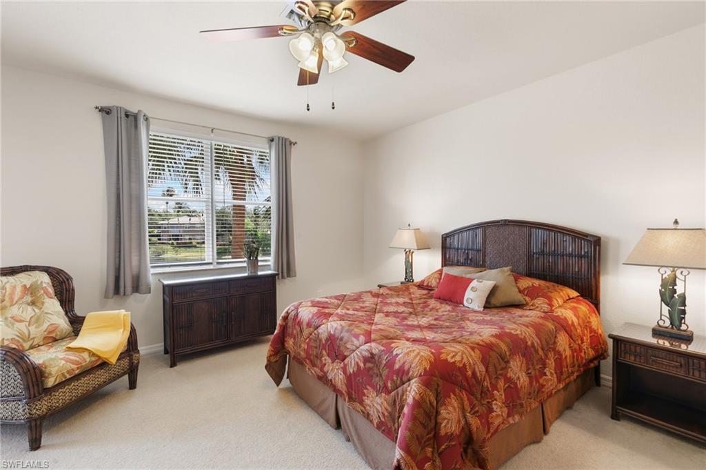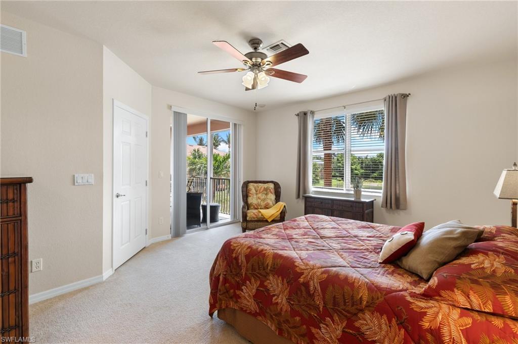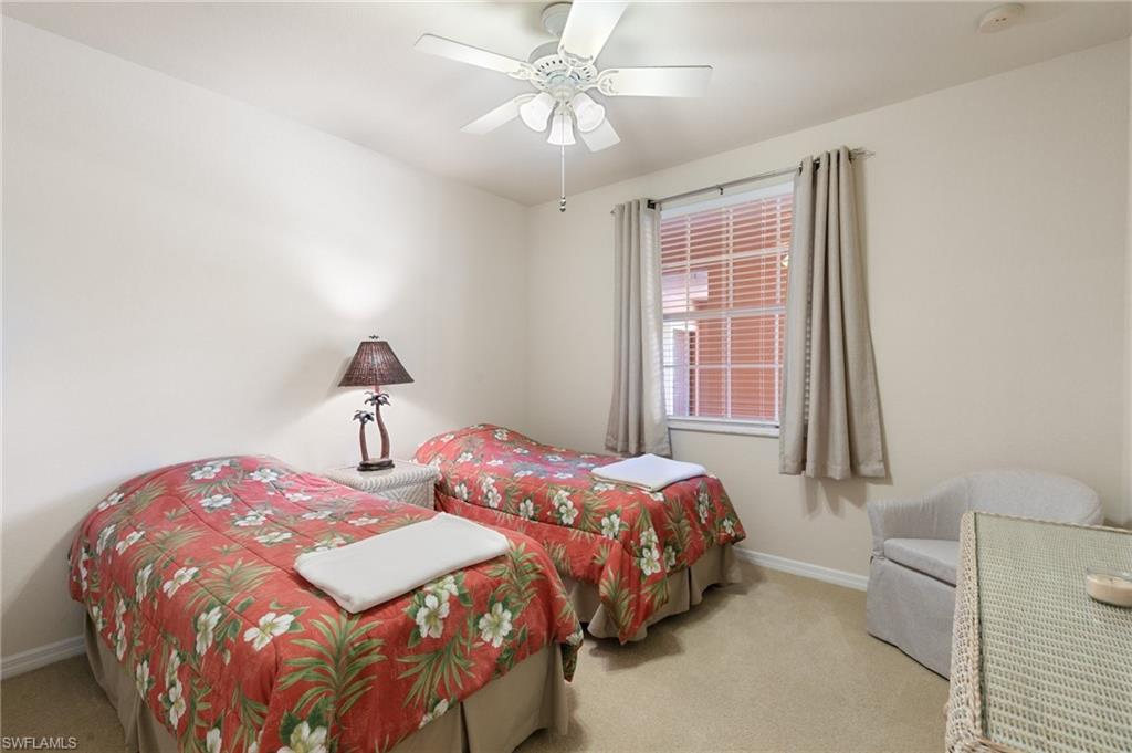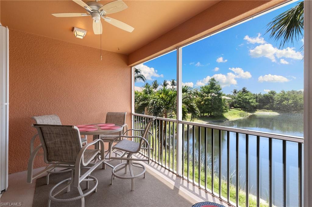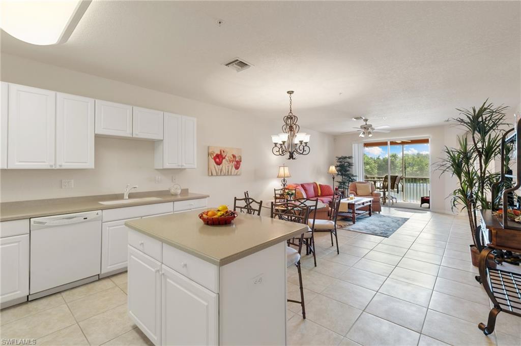 Luxury Living with Stunning Lake Views in Spanish Wells! Welcome to this immaculate turnkey/furnished 2-bedroom, 2-bathroom condo with a den, nestled in the highly sought-after Marbella subdivision of Spanish Wells. Located on the second floor, this light-filled and spacious home offers panoramic lake views from the private screened lanai and owner's bedroom. Step inside to find an open-concept layout with tile flooring throughout, except in the bedrooms. The kitchen features an island workspace, pantry, and lake views, making it perfect for entertaining. The primary suite is a serene retreat, with a walk-in closet, and a luxurious ensuite bathroom with dual sinks, a soaking tub, and a separate shower. The den/flex space offers versatility with elegant French doors, making it ideal for a home office or additional guest space. Hurricane accordion shutters on the lanai and impact glass windows! Additional perks include covered carport parking, storage space, and access to the subdivision's two heated community pools. Association dues also cover cable, internet, and water. Spanish Wells is a gated community and provides optional memberships for golf, sports, and social activities, allowing you to tailor your lifestyle to your preferences. The memberships afford access to such amenities as the 27-hole championship golf course, pro-shop, 32,000sqft clubhouse, tennis, bocce, pickleball, fitness center/classes, on-site restaurant dining, social events, and much more. Conveniently located just 3 miles from the sandy white Gulf beaches, and minutes from Bonita/Estero & Naples restaurants, shopping, entertainment, RSW Airport, this condo is the perfect blend of comfort, convenience, and luxury. Don’t miss this opportunity to embrace the Southwest Florida lifestyle—schedule your private showing today!