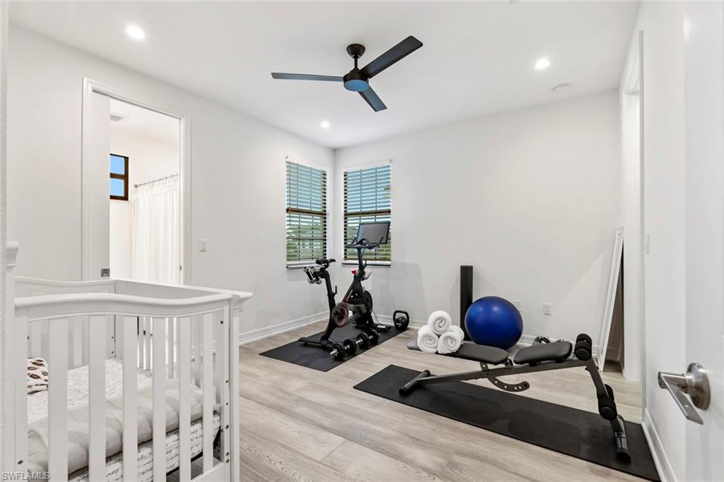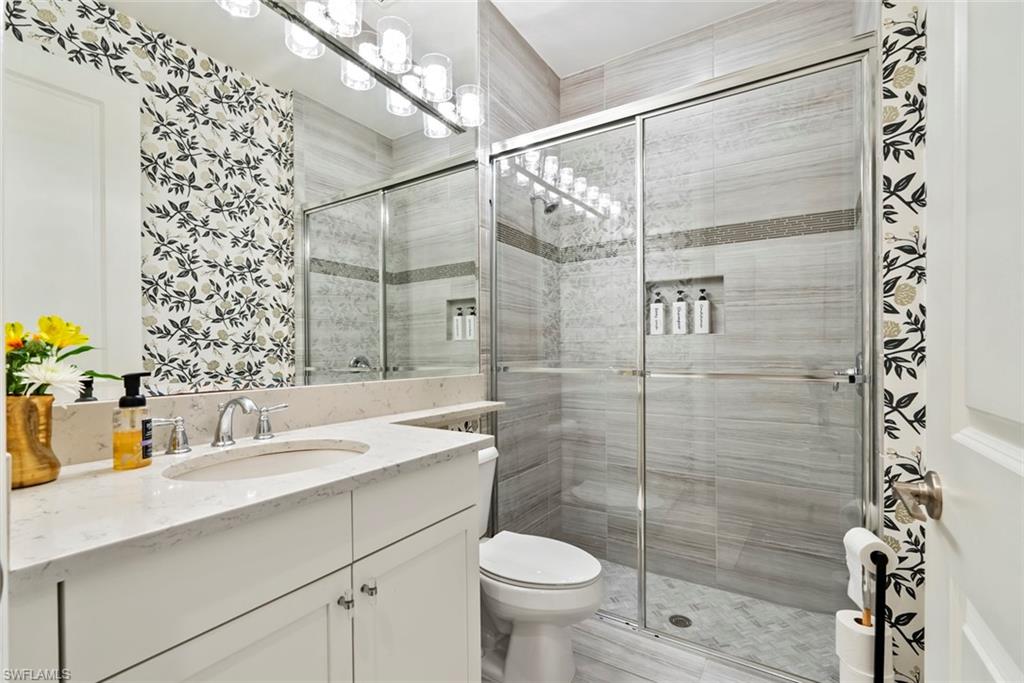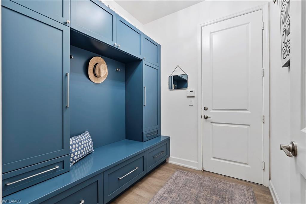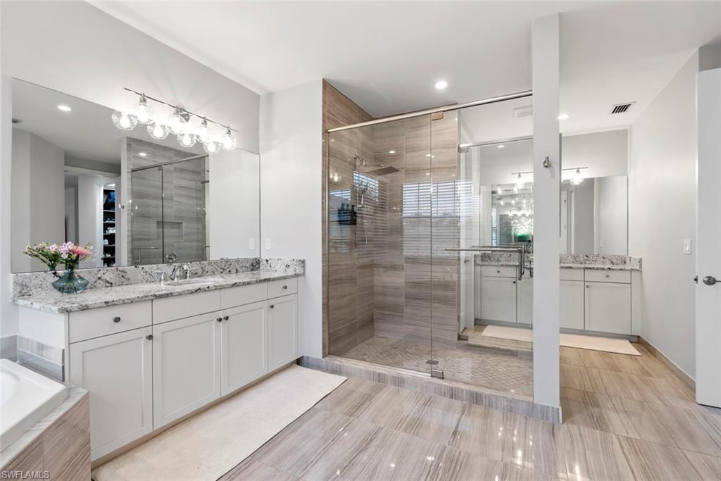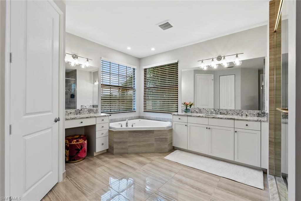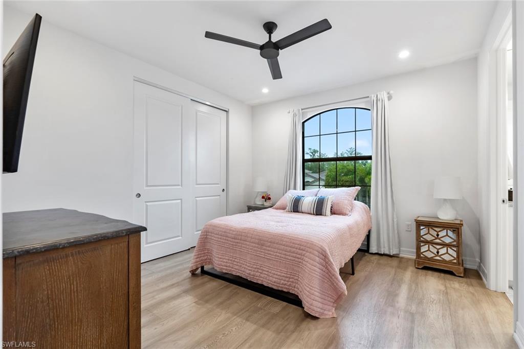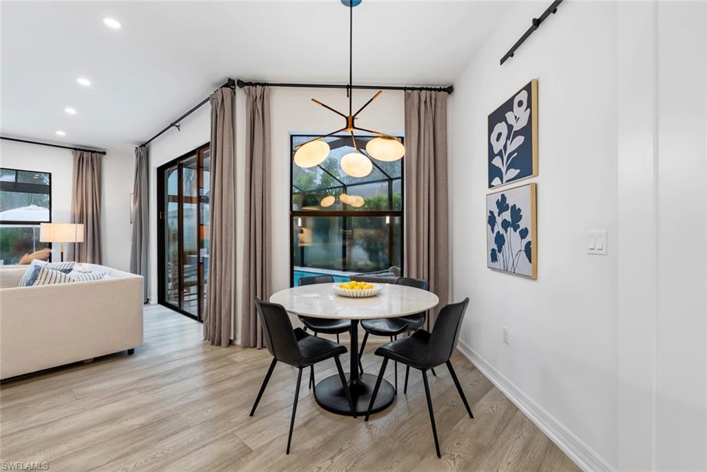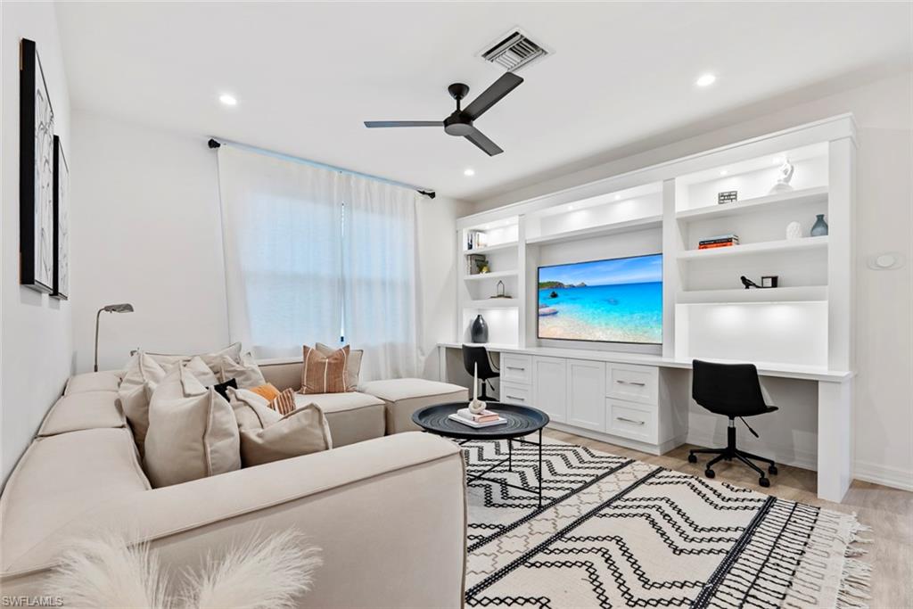 Welcome to your dream home—an elegant retreat designed for modern family living in one of Naples’ most desirable communities. Tucked away on a quiet, low-traffic street, this upgraded residence occupies a premium lot with serene pond views and exceptional privacy. It blends refined finishes with family-friendly comfort, creating a sophisticated yet inviting atmosphere. Inside, wide-plank white oak hardwood floors flow seamlessly throughout, including the laundry and mudroom, adding warmth and continuity. Custom stair rails, elevated ceiling fans, and designer lighting set a polished tone, while tasteful wallpaper accents in the office, dining room, and baths lend unique character. The fully remodeled 2022 kitchen is the centerpiece featuring a Sub-Zero 42" refrigerator, 30" Sub-Zero wine tower with refrigerator/freezer drawers and ice maker, Monogram double oven, cooktop, drawer microwave, and dishwasher. A 10-foot quartz island with under-cabinet lighting, full quartz backsplash, and custom range hood make it perfect for everyday living and entertaining. Functionality is elevated with five custom built-ins in the living room, family room, mudroom, loft, and office/6th bedroom. Clever under-stair storage maximizes space, while the versatile den/6th bedroom adds flexibility. The primary suite offers a tranquil retreat with an upstairs veranda overlooking the pond. Outdoors, a 2021 saltwater pool and spa with massage jets for 6, panoramic screen enclosure, no-see um screen, set the stage for resort-style living. Travertine pavers, LED lighting, hidden drains, WiFi automation, dual heat sources, bubbler, umbrella, shallow deck, and a 4-filter water system, and auto-fill, ensure effortless enjoyment. The outdoor kitchen with Delta gas grill, refrigerator, and storage makes entertaining a delight. The garage is equally impressive: epoxy floors, overhead racks, heavy-duty shelving, an 11kWh EV charger, air conditioning, and insulated doors perfect for a gym, golf cart, workshop, simulator, or collectible car storage. Additional features include a whole-house natural gas generator, fiber optic internet, and dual hurricane-impact entry doors. Community amenities rival a resort: three heated pools (lap, kids, and resort-style with spa), clubhouse with gym, indoor basketball, game lounge, card room, pickleball, tennis, volleyball, and playground—all with low HOA fees. Located in an A-rated school district and close to beaches, shopping, dining, and the airport, this home offers the perfect blend of security, serenity, and style—with a touch of luxury and a vibrant sense of community.