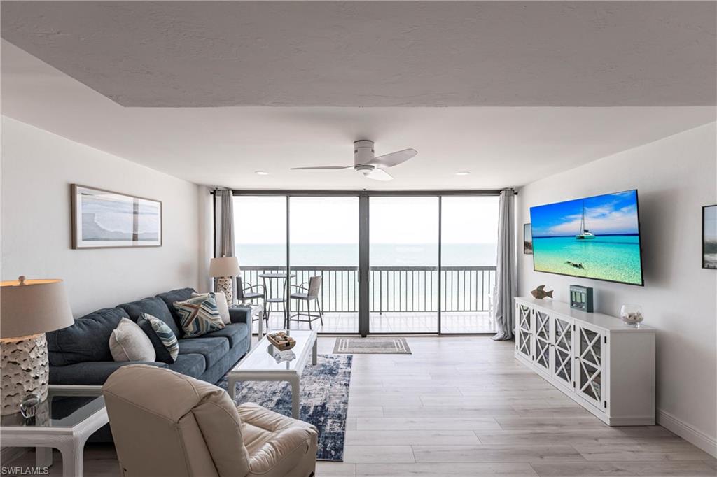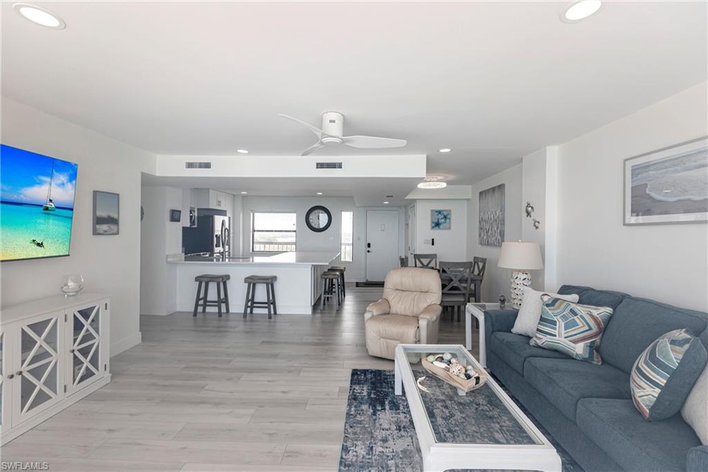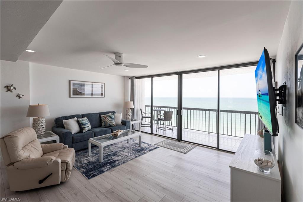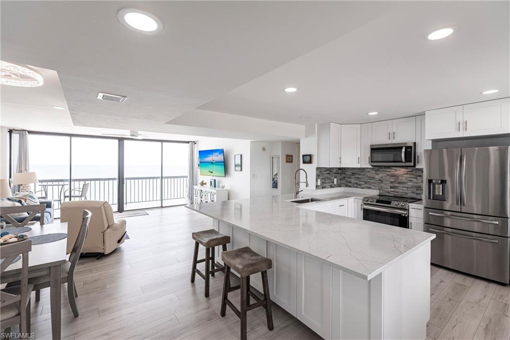 SELLER FINANCING AVAILABLE! Enjoy the ultimate beachfront lifestyle in this fully renovated corner-unit condo on Bonita Beach. A brand-new pool and spa are slated for completion soon, adding even more appeal to this standout property. Perched directly on the sand, the condo showcases panoramic Gulf views from the largest open-air balcony on the beach—the perfect spot for coastal breezes and unforgettable sunsets. Inside, the unit feels completely new. A new HVAC system and water heater ensure year-round comfort, while luxury vinyl plank flooring flows throughout. The kitchen and bathrooms have been fully remodeled with clean, modern, high-end finishes. Offered fully furnished—including designer pieces and LED TVs—the condo is truly move-in ready. Additional upgrades include inset LED lighting throughout the kitchen, living areas, bathrooms, and primary closet, giving the home a bright, contemporary feel. A rare under-building parking space (valued at over $40,000) provides secure, convenient access just steps from the beach. The open, spacious layout is one of the most desirable on Bonita Beach—perfect for everyday living or hosting guests. Set away from public beach access, the building offers a more private and peaceful environment. The community has undergone significant improvements as well: a renovated community room, updated elevators, fresh exterior paint, new landscaping, and a 2023 roof replacement. On-site management makes ownership effortless. Just 25 minutes from RSW Airport and close to top restaurants and shopping, this turnkey beachfront retreat is a rare opportunity in one of Southwest Florida’s most coveted locations.