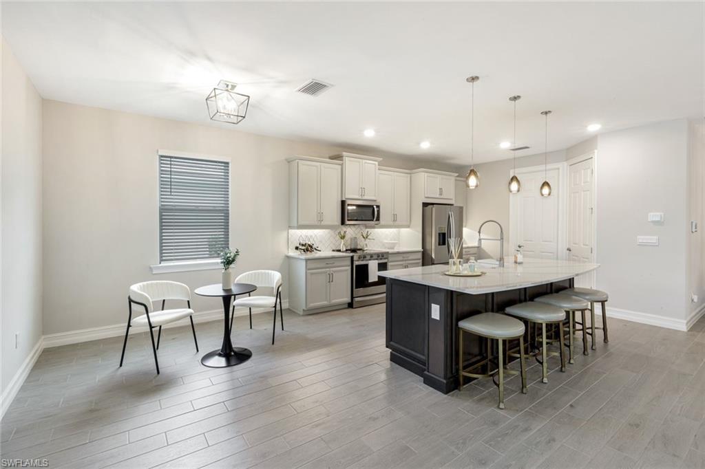 This beautifully upgraded Destin model pool home offers refined luxury and effortless Florida living. Featuring 3 bedrooms plus a den, 3 full bathrooms, a spacious 3 car garage, this residence is situated on a corner lot in the highly sought-after Seasons at Bonita Community. From the moment you enter, you'll notice the tasteful upgrades, including tile flooring throughout, quartz countertops, stainless steel appliances, upgraded lighting and fans, custom draperies, and built-in closet systems. Enjoy the serene outdoor space with a salt water pool and spa, fully fenced in and gated backyard perfect for your pet. Meticulously planned landscaping paired with lush, intentionally placed trees creates a truly private outdoor oasis for serene living. Seasons offers exceptional resort-style amenities including a grand resort pool, fitness center, pickleball courts, tennis, dog park, and a community room for social gatherings. Ideally located just minutes from I-75, Gulf beaches, and the exciting new Midtown Bonita development. This is the Florida lifestyle at its finest- schedule your private showing today!