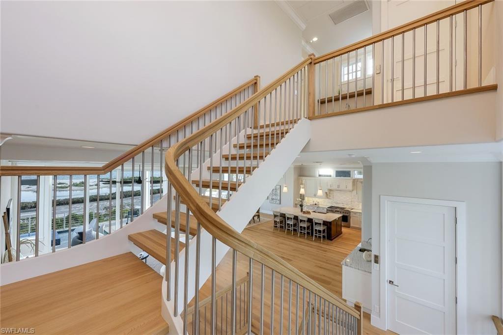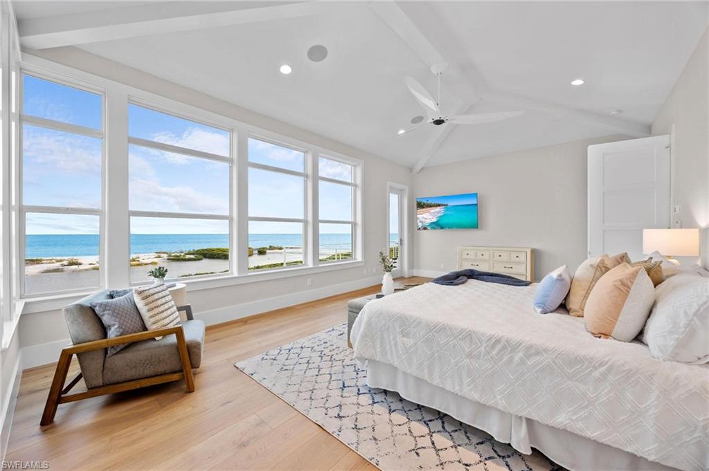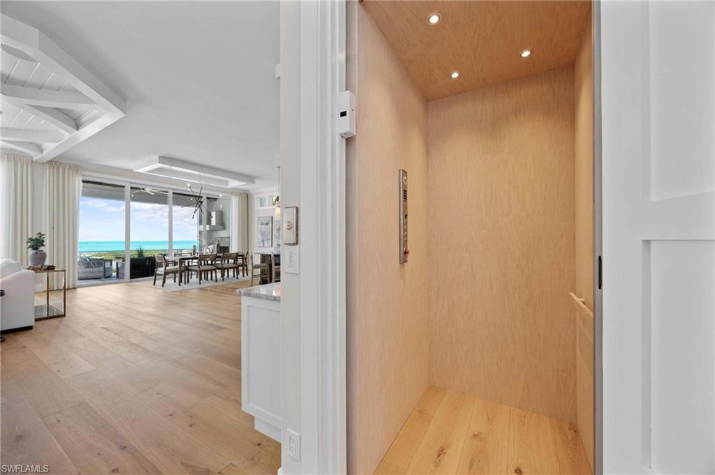 OFFERED FURNISHED! Enjoy the Gulf & Beach front lifestyle to its fullest with this newly remastered (ALAIR Custom Homes 2023/2024) coastal living, custom pool home. Originally built in 2015 by Gary W. Lau Inc. Custom Homes, here's the lifestyle you've always wanted & deserved with the scenic, stunning, unobstructed, shimmering views of the Gulf of Mexico right out your back door. From the moment you step into the foyer & take your private elevator or the custom-built staircase to the other levels, you know this is a special place for sharing with family & friends. As the home unfolds before you, your immediate focus may take you to the awe-inspiring expanded views of the Gulf of Mexico, its powdery-white sandy beach or the contrasting multi-shade turquoise gulf waters. Perhaps your eyes capture the spacious living room with coastal crisp décor’, natural sunlight, custom architectural ceilings, & the sprawling open floor plan. Then again, you may divert to the well-appointed kitchen that any chef would envy with new SS appliances, propane gas stove & oven, new tailored cabinetry, quartzite counter tops, glass-tiled backsplash, walk-in pantry & custom wood & tile flooring. Then again, it may direct you to the elevated pool & spa, the outdoor kitchen & lanai complete with gas fireplace & circular stairway to ground level where an outdoor shower, gas fire pit, direct access to the beach & gulf waters await you. Whichever, you'll be captivated & know, there is much more yet to see. Each of the 4 bedrooms are ensuites & there is a separate powder room as well. Custom closets, day-bar on both the 2nd & 3rd levels add to purposeful function & convenience. The list goes on, western-facing 3rd floor open balcony, 6-car garage, generator, electric hurricane shutters on the west-side of the home, impact resistant windows & doors, heavy gauge metal roof, new A/C, Security System, 350-gallon propane tank, new pool equipment & concrete block construction. The lot extends approximately 740' to the high-water mark on a select stretch of beach. The adjacent "buffer-zone" & designated bird sanctuary is home to Osprey, Eagles, Spoonbills & Pelicans along with a variety of other species that are indigenous to Florida to come & go as they please. The home has a set-back position from public beach goers, offering the utmost in privacy. Sunsets, as well as the distant lights of Naples, Bonita Beach & Sanibel on clear nights, add to the ambiance & will sweep you into your own oasis.