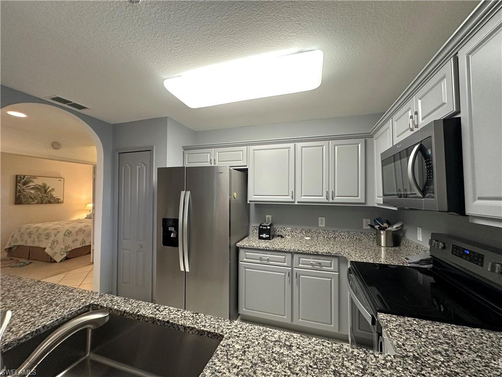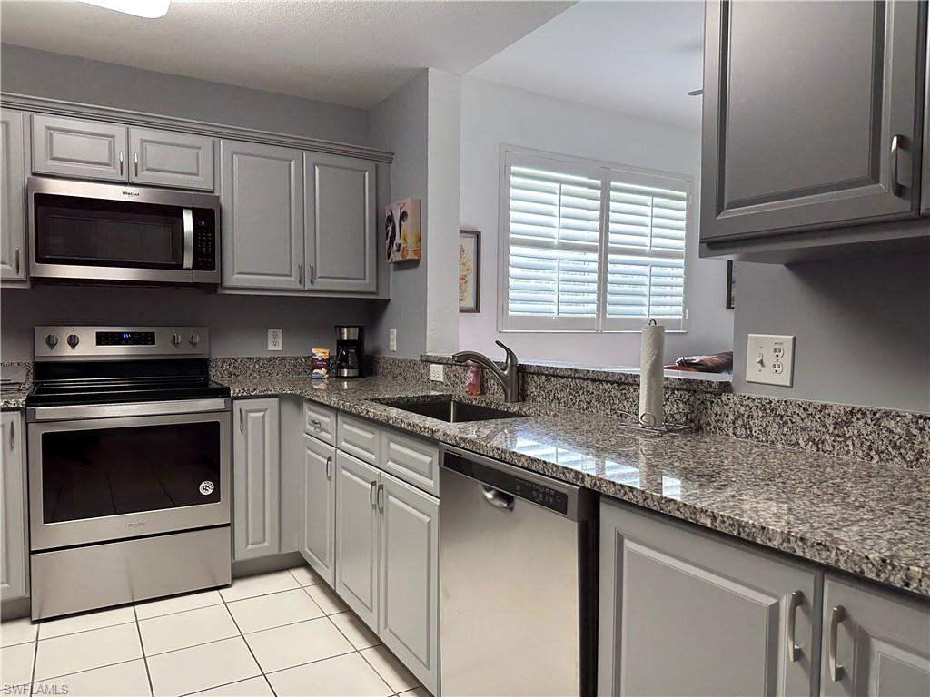 Enjoy the ease of first-floor living in this beautifully updated end unit in Glen Eagle Golf and Country Club. Designed for comfort and convenience, this turnkey-furnished 3-bedroom, 2-bath condo offers generous living space and tasteful upgrades throughout. The open-concept layout features luxury vinyl flooring in the main living areas and primary suite, granite countertops, upgraded cabinetry, and a full suite of new stainless steel Whirlpool appliances. Plantation shutters add timeless style and privacy. Take in peaceful golf course views from the screened lanai, where tile flooring makes for low-maintenance relaxation. The spacious primary suite offers double vanities with granite tops and new fixtures. A dedicated laundry room with utility sink adds practical function. Glen Eagle is a vibrant, gated community offering the perfect blend of active living and convenience, ideally located just minutes from 5th Avenue shopping, dining, and Naples’ world-renowned beaches. SOCIAL MEMBERSHIP is included, granting year-round access to resort-style amenities such as dining, fitness center, tennis, bocce, and limited golf access from May through October. Wheelchair-accessible shower with grab bars for added peace of mind.