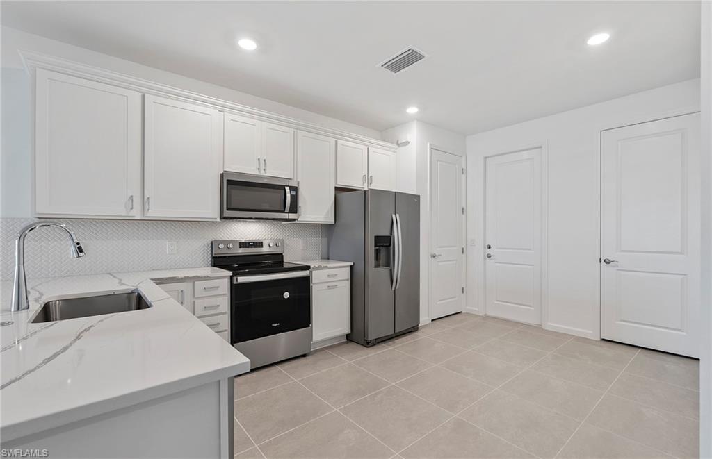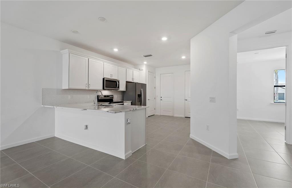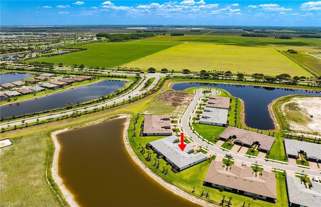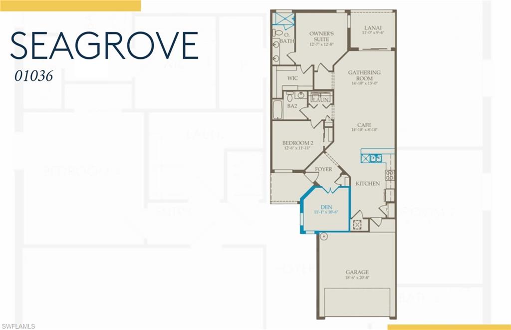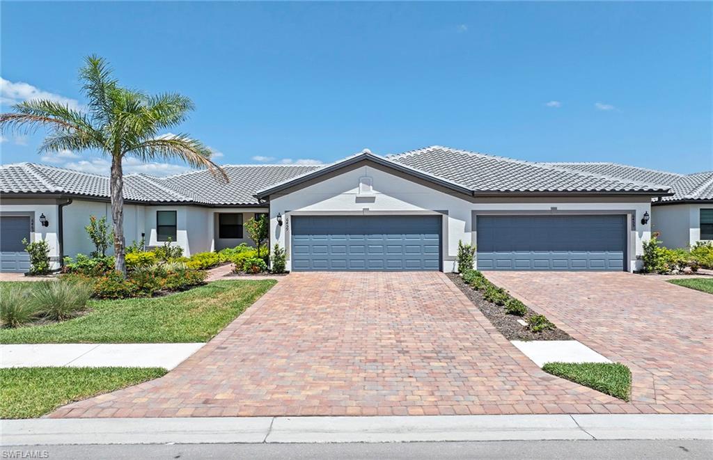 Move-in ready and newly constructed, the Seagrove is a beautifully designed quad-style home offering 2 bedrooms, 2 bathrooms, a versatile den, and a 2-car garage. This home showcases a host of high-end finishes, including white cabinetry paired with quartz countertops, a striking herringbone mosaic backsplash, and Whirlpool stainless steel appliances. The kitchen features a peninsula with pendant lighting pre-wire, while the owner’s suite includes a walk-in shower with a built-in niche for added convenience. Additional upgrades include tile flooring throughout, 8' interior doors, impact-resistant windows, a tile roof, epoxy-coated garage flooring, and laundry room cabinetry for added storage and function. Located in the top-rated master-planned community of Ave Maria, residents enjoy access to charming pocket parks and a wide array of recreational amenities. Just one mile away, Ave Maria North Park offers sand volleyball courts, soccer and baseball fields, basketball courts, a playground, and picnic pavilions. Optional membership at the nearby Ave Maria Water Park provides access to a resort-style pool, fitness pool with lap lanes, interactive kids’ pool, and waterslides. Less than two miles away, South Park features a dog park, bocce ball and pickleball courts, softball fields, and scenic walking and biking trails—delivering a complete lifestyle of leisure, activity, and community connection.
