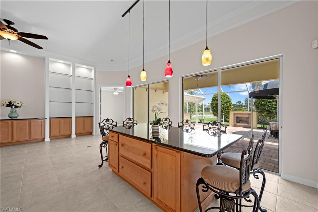 Welcome to your dream home in the highly sought-after community of Village Walk! Perfectly positioned on an oversized lot, this home was designed for entertaining—inside and out. The chef’s kitchen impresses with premium appliances, abundant counter space, and a custom island ideal for gatherings. The open-concept layout offers a stylish dining area, a versatile den or office, and a spacious living room that flows effortlessly for modern living. The primary suite provides a serene retreat, while three additional bedrooms ensure comfort and privacy for family or guests. Step outside to enjoy a charming front porch and an extended lanai that’s truly built for fun—complete with an outdoor kitchen, pizza oven, bar, and fireplace for unforgettable evenings under the stars. Notable upgrades include a newer A/C, hot water heater, high-efficiency washer and dryer, fresh interior paint, hurricane shutters, and a whole-house generator with a buried propane tank for added peace of mind. The lanai is fully equipped for family gatherings and weekend entertaining. Ideally located just minutes from world-class beaches, shopping, dining, and RSW Airport—this home truly has it all!