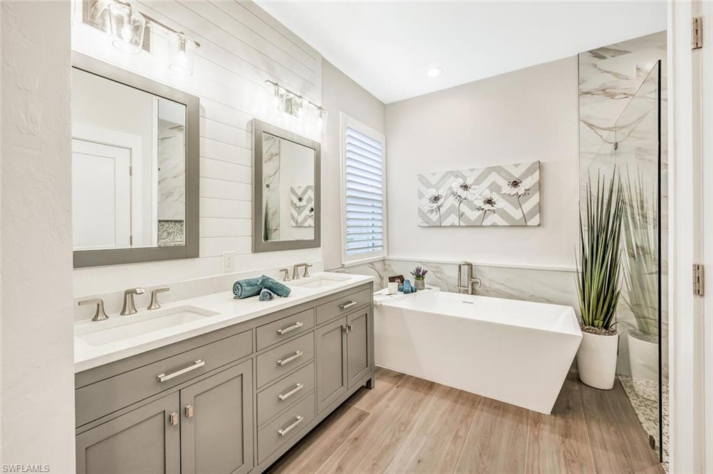 Stunning 5 Bedroom, 3.5 Bath Fully Remodeled Pool/Spa Home! EVERYTHING is NEW! Roof (2022), 2 A/C Units (2020), NEW KitchenAid Appliances, NEW Flooring Throughout, NEW Quartz Countertops, NEW Travertine Pool Deck, NEW Outdoor Kitchen, NEW Plantation Shutters, NEW Epoxy Garage Floor, and NEW Pool/Spa with NEW Heater and Equipment! This home boasts almost 3000 sqft of luxurious living space with a first-floor master suite featuring walk-in closets, an oversized bathtub, dual sinks, floor-to-ceiling tile, and custom millwork. The second floor offers additional bedrooms, a loft, or a movie theater room, providing flexible spaces for a home office or play area. Located in Andalucía, a gated community west of I-75 and south of Pine Ridge, this home comes with LOW HOA fees and is conveniently located just a 15-minute drive to downtown Naples or the white sands of the world-renowned Naples Beach. Andalucía offers a community resort-style pool, playground, community room, and fitness center. Additionally, it's situated in a premier school district, making it perfect for families. Don’t miss the chance to own this breathtaking home that combines elegant finishes with practical spaces for everyday living!