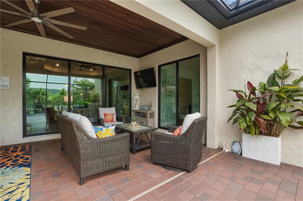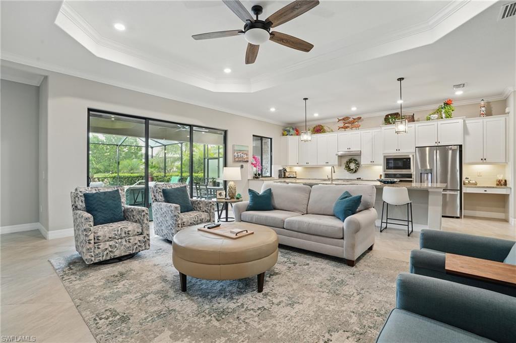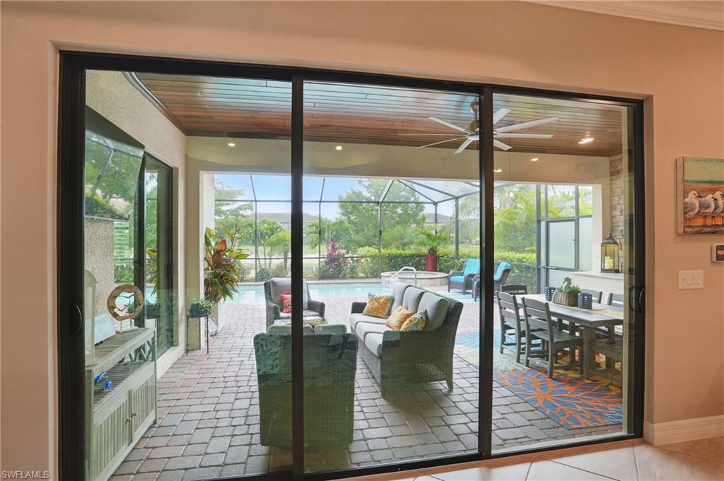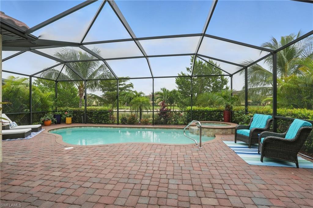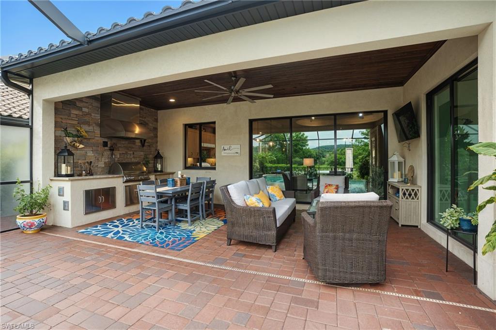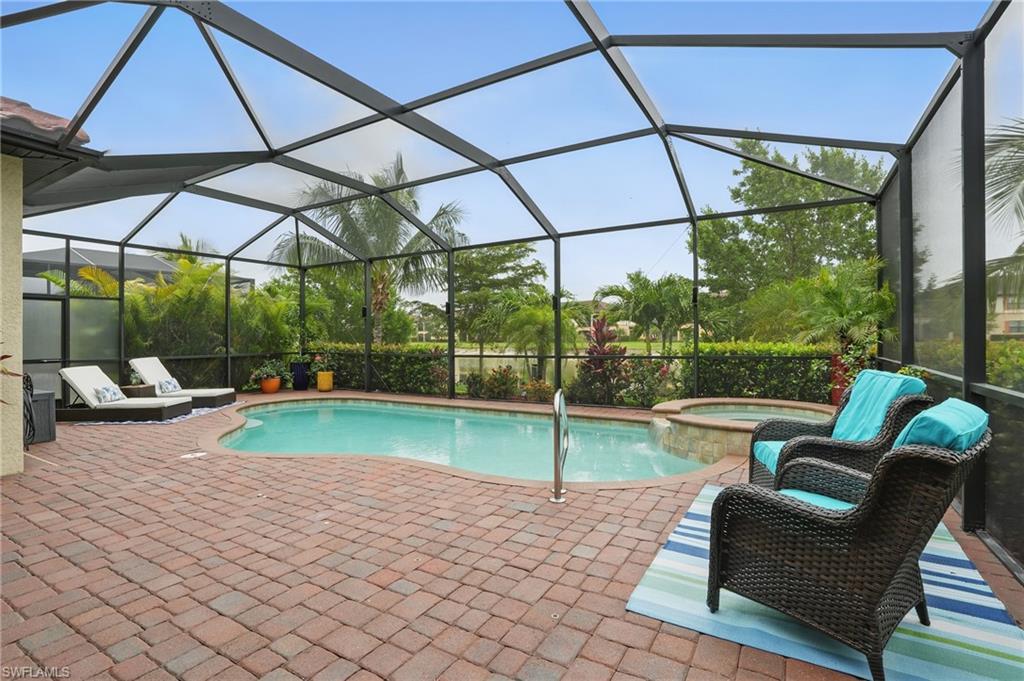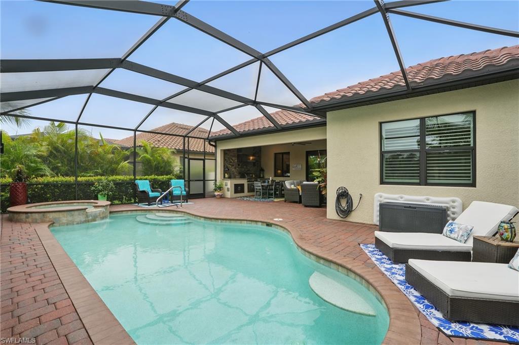 Rare and desired Angelina model in the Bonita National Community, ,blending elegance style and comfort. Step into this beautifully designed open-concept living space where the kitchen, dining and living areas flow seamlessly together - perfect for entertaining or relaxed everyday living. At the heart of the kitchen a large center island offers ample seating, prep space and storage, making it the ultimate gathering spot. This model maximizes natural light and creates a spacious inviting atmosphere ideal for modern lifestyles. The home has been thoughtfully upgraded from the builder's model, reflecting the pride of ownership. Key features include a salt water pool, a custom-built entertainment cabinet, an accent wall in the dining room and a Provia glass front door adding lots of natural light. Enhancing the living experience, the property boasts motorized shades, plantation shutters, a new washer & dryer, and custom lighting throughout. The kitchen is equipped with upgraded large basin sink, and the outdoor living space includes an outdoor kitchen with wood ceiling upgrade. For added storage, custom racks installed in the garage. Overall this property presents an ideal living environment catering to the needs and preferences of discerning homebuyers. Golf privileges are available for social members from May thru October. Bonita National Community is conveniently located 9 miles to the beach, 20 miles to Fort Myers Airport, and only 4 miles to the new developing Midtown at Bonita. Locals are excited to have this innovative development designed to serve as a vibrant downtown hub for the area. Featuring retail & dining, hospitality, green spaces and lifestyle amenities. Don't miss this opportunity to view this exceptional home at Bonita National Golf & Country Club