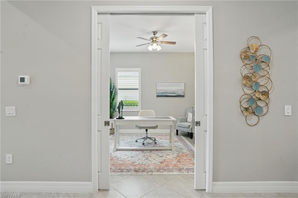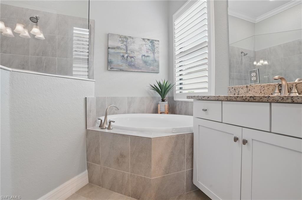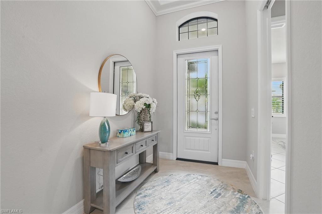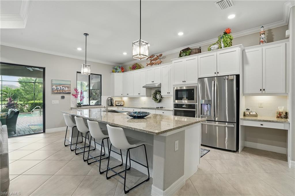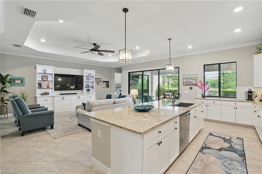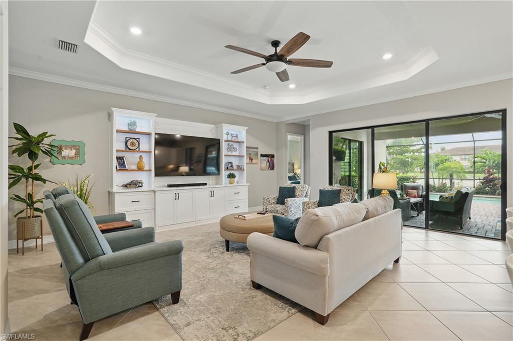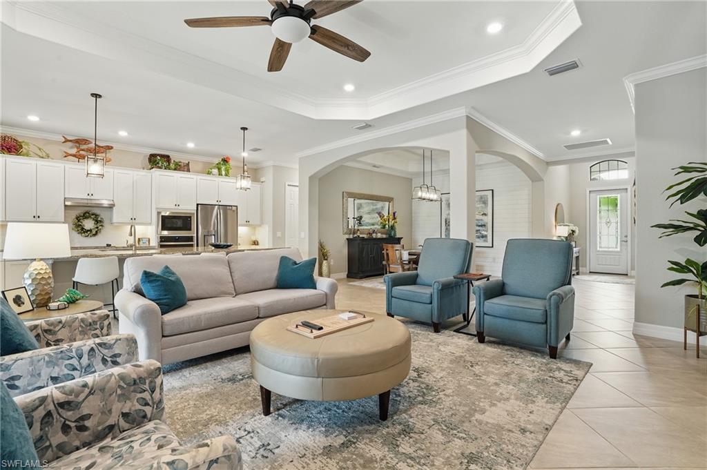 Rare and desired Angelina model in the Bonita National Community, ,blending elegance style and comfort. Step into this beautifully designed open-concept living space where the kitchen, dining and living areas flow seamlessly together - perfect for entertaining or relaxed everyday living. At the heart of the kitchen a large center island offers ample seating, prep space and storage, making it the ultimate gathering spot. This model maximizes natural light and creates a spacious inviting atmosphere ideal for modern lifestyles. The home has been thoughtfully upgraded from the builder's model, reflecting the pride of ownership. Key features include a salt water pool, a custom-built entertainment cabinet, an accent wall in the dining room and a Provia glass front door adding lots of natural light. Enhancing the living experience, the property boasts motorized shades, plantation shutters, a new washer & dryer, and custom lighting throughout. The kitchen is equipped with upgraded large basin sink, and the outdoor living space includes an outdoor kitchen with wood ceiling upgrade. For added storage, custom racks installed in the garage. Overall this property presents an ideal living environment catering to the needs and preferences of discerning homebuyers. Golf privileges are available for social members from May thru October. Bonita National Community is conveniently located 9 miles to the beach, 20 miles to Fort Myers Airport, and only 4 miles to the new developing Midtown at Bonita. Locals are excited to have this innovative development designed to serve as a vibrant downtown hub for the area. Featuring retail & dining, hospitality, green spaces and lifestyle amenities. Don't miss this opportunity to view this exceptional home at Bonita National Golf & Country Club