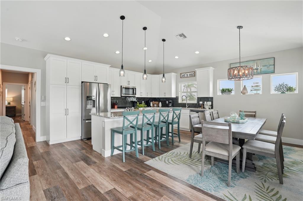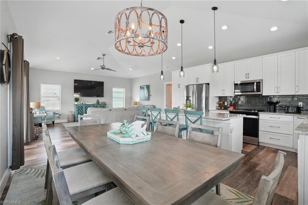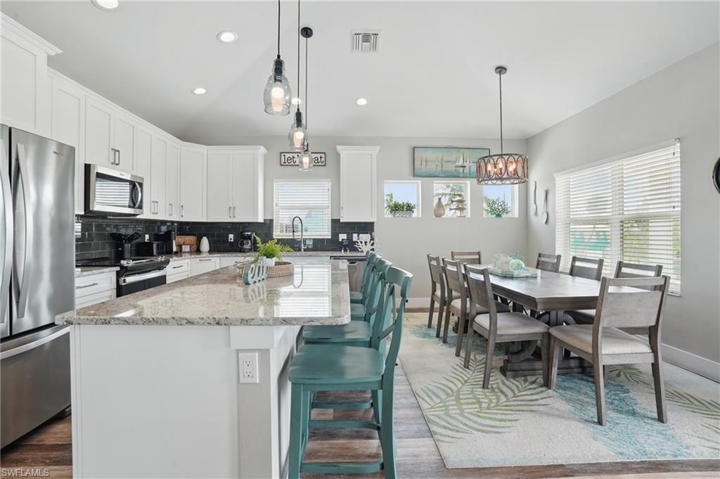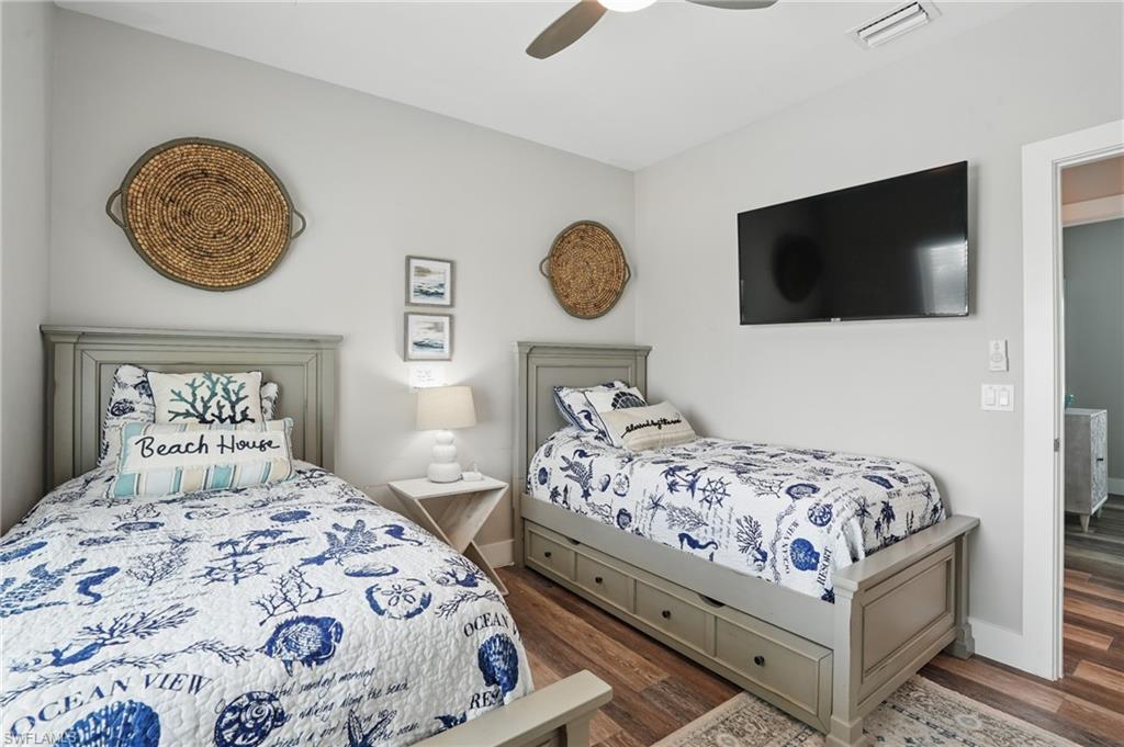 Enjoy luxury coastal living in this newly built, custom elevated home just 948 feet from beach access to the Gulf of Mexico. This 3-bedroom, 2-bath retreat is fully furnished and turn-key, offering a high-performing investment opportunity with weekly rental zoning and strong rental history. Designed for comfort and style, the open-concept layout features vaulted ceilings, plank flooring, and upscale finishes throughout. The chef’s kitchen is fully equipped for everyday living or guest stays, complete with custom cabinetry, granite countertops, stainless steel appliances, a large center island with bar seating, and everything needed to prepare and serve meals — from cookware and utensils to small appliances. The spacious living area includes a 72” flat-screen TV and queen sleeper sofa, with a pocket door separating living and sleeping areas for added privacy. The primary suite features a king bed, walk-in closet, and spa-style bath with dual quartz vanity and a walk-in tiled shower. Two additional bedrooms offer a queen bed and two twin beds with ample storage. Step outside to your private zero-entry heated pool, surrounded by a paver patio, outdoor shower, grill, and privacy fence. Additional features include covered parking, under-house storage, and a raised pool pump with auto-fill system. Just a short walk to beach access, the historic Mound House, Publix, dining, and entertainment. Only 1.8 miles to Times Square. Professionally managed with high occupancy – the perfect blend of personal getaway and income-producing property.