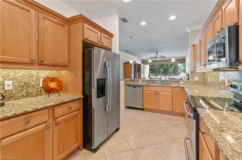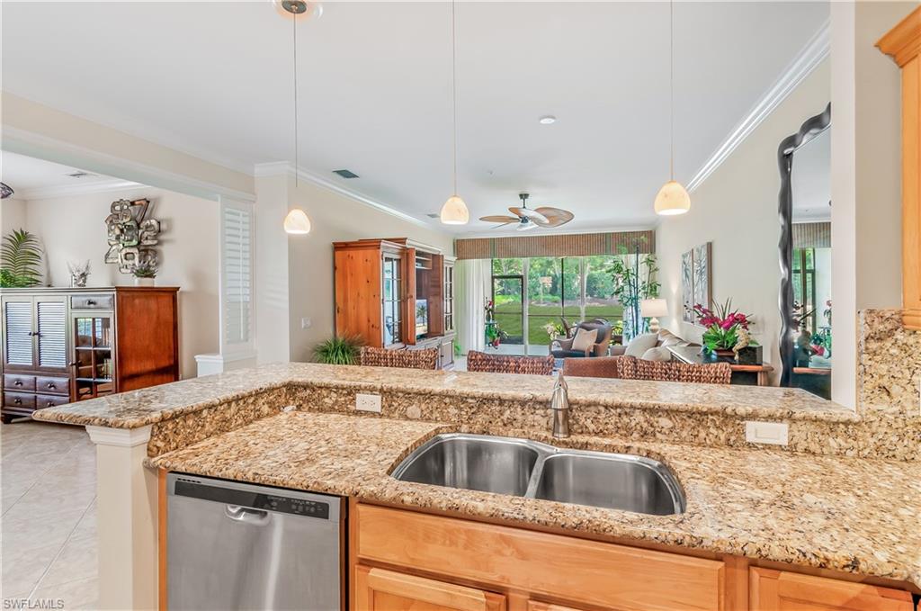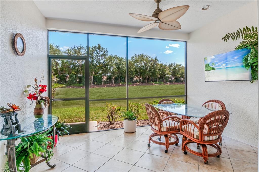 End-unit with Lake & Golf Views on a Quiet Cul-de-sac and GOLF INCLUDED! Enjoy the best of Florida living in this beautifully updated TURNKEY first-floor, end-unit condo featuring 2 bedrooms, 2 full baths, and a versatile flex room—perfect as a den, home office, or guest space. With sweeping views of the lake and golf course, the screened lanai faces southwest, offering breathtaking sunsets and serene privacy. This open-concept floorplan is designed for both relaxed living and effortless entertaining, with split bedrooms ensuring guest comfort and privacy. Located in the highly desirable bundled golf community of Vasari, residents enjoy golf, tennis, a state-of-the-art fitness center, luxurious resort-style pool and spa, and a vibrant clubhouse—all included! Ideally situated near award-winning Gulf beaches, lively 5th Avenue in Naples, and just a short drive to RSW Airport. With an abundance of dining, arts, shopping, and nature trails nearby, this home is the perfect blend of relaxation and recreation.