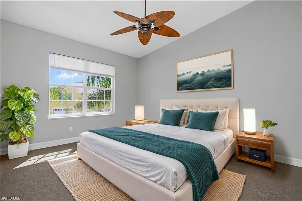 Lowest price per square foot property in Naples with a minimum of 3beds, 2baths, and 2car garage at $146.20 Welcome to Nottingham at Pebblebrooke Lakes, nestled in the heart of desirable North Naples. This spacious 2nd-floor coach home features: 3 spacious bedrooms and 3 full baths, 2,394 square feet of living space with vaulted ceilings, Open concept floorplan that lives like a single-family home including the must have large 2 car garage. The stylish kitchen is equipped with solid countertops, a designer backsplash, stainless steel appliances, a new range, and a large breakfast nook. Each bedroom boasts walk-in closets, and the main suite's bath includes a garden tub and walk-in shower. There's also a large laundry room with a built-in sink. Plus, a new water heater adds extra value to this already delightful home. Enjoy the serene view of the community pool from your private screened lanai. Pebblebrooke Lakes offers a clubhouse, heated pool, New surfaced tennis and basketball courts and 4pickleball courts, fitness room, and proximity to beaches, dining, and shopping. HOA dues include Water/Sewer, Basic cable and Wifi. Shopping and dining is within walking distance at any of the plazas on the four corners of Collier and Immokalee roads. Also within walking distance A-rated school district, and as a pet-friendly community, Nottingham at Pebblebrooke Lakes truly has it all. This home is just waiting for your personal touches don't miss this great opportunity to own a naples address for only $146.20 per sqft!
