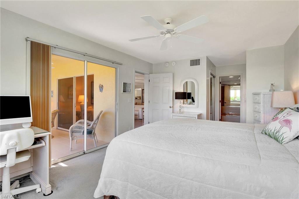 Incredible Price! This turnkey condo features many recent updates over the past few years, offering picturesque private views that include a glimpse of Wiggins Bay with boats coming and going from the marina. If you’re looking for a active social lifestyle, these Condo owners currently have a membership to Tarpon Cove Yacht & Racquet Club, just steps away to enjoy the amenities of tennis, dining, bocce, fitness, and a boat taxi to the beach—all at a reduced cost to transfer to new buyer. The south-facing location ensures uniform daylight and to the west you get bright colorful evening skies. Improvements: air conditioning system put in 2020 with a 2025 Ecobe Bluetooth control system, water heater 2021, and stainless steel appliances from 2019, including a washer and dryer purchased in 2021. The condo was completely re-piped in 2021. Additional enhancements include recent lighting installed above the kitchen cabinetry, as well as three recessed LED lights over the bar area. The kitchen windows are fitted with light-filtering sheer shades, and the guest bedroom has a retractable black-out shade. The master bedroom window has been replaced with hurricane impact-proof glass, complete with a warranty. The tile floors in the entryway, kitchen, hallway, bathrooms, and lanai have been treated and re-grouted, giving them a like-new appearance. For added protection, there is a manual hurricane shutter on the lanai, which can be easily deployed in the event of a power loss. Move in and enjoy this beautiful condo, or use it as an investment rental. The Princeton Place neighborhood community offers a pool with a bathhouse, separate grilling areas, and outdoor seating.
