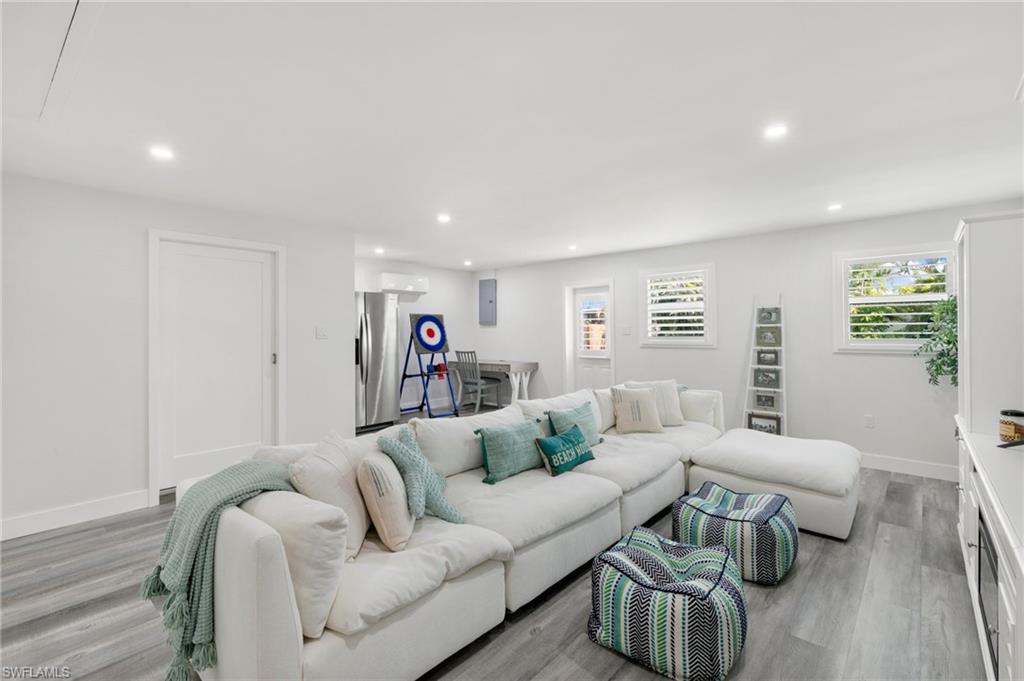 Step into modern coastal living with this beautifully renovated single-family home in highly desirable Naples Park, a vibrant neighborhood just moments from world-class beaches, upscale shopping, and dining. No HOA. No rental restrictions. Situated on a premium corner lot in the coveted X flood zone, this home blends peace of mind with prime location. A full interior remodel in 2022 brings a fresh, contemporary feel throughout, from sleek flooring and updated finishes to a thoughtfully redesigned layout perfect for relaxed Florida living. Newer impact windows offer energy efficiency, storm protection, and an abundance of natural light. Originally a 2-car garage, the space has been transformed into a functional bonus room ideal as a guest suite, home office, or media room, adding valuable living square footage. 2-detached sheds in the backyard provides extra storage for beach gear, bikes, or tools. Whether you're seeking a seasonal escape, a full-time residence, or a savvy investment in one of Naples’ most sought-after neighborhoods, this home checks every box. Just sunny skies, swaying palms, and the laid-back lifestyle you’ve been dreaming of.