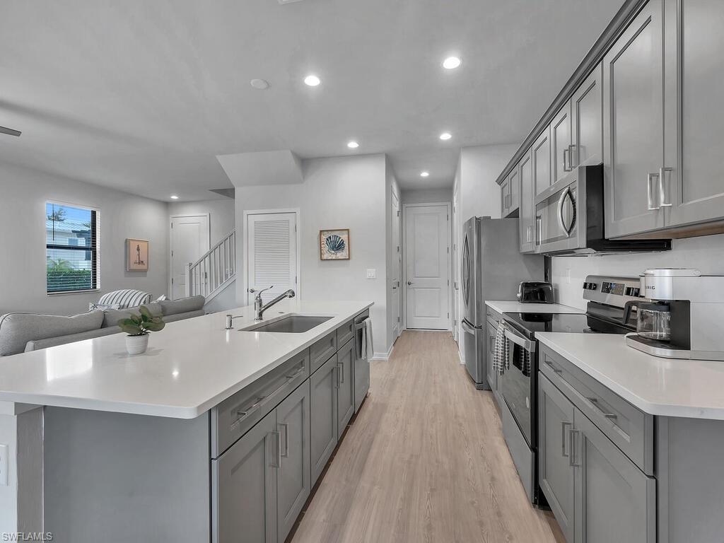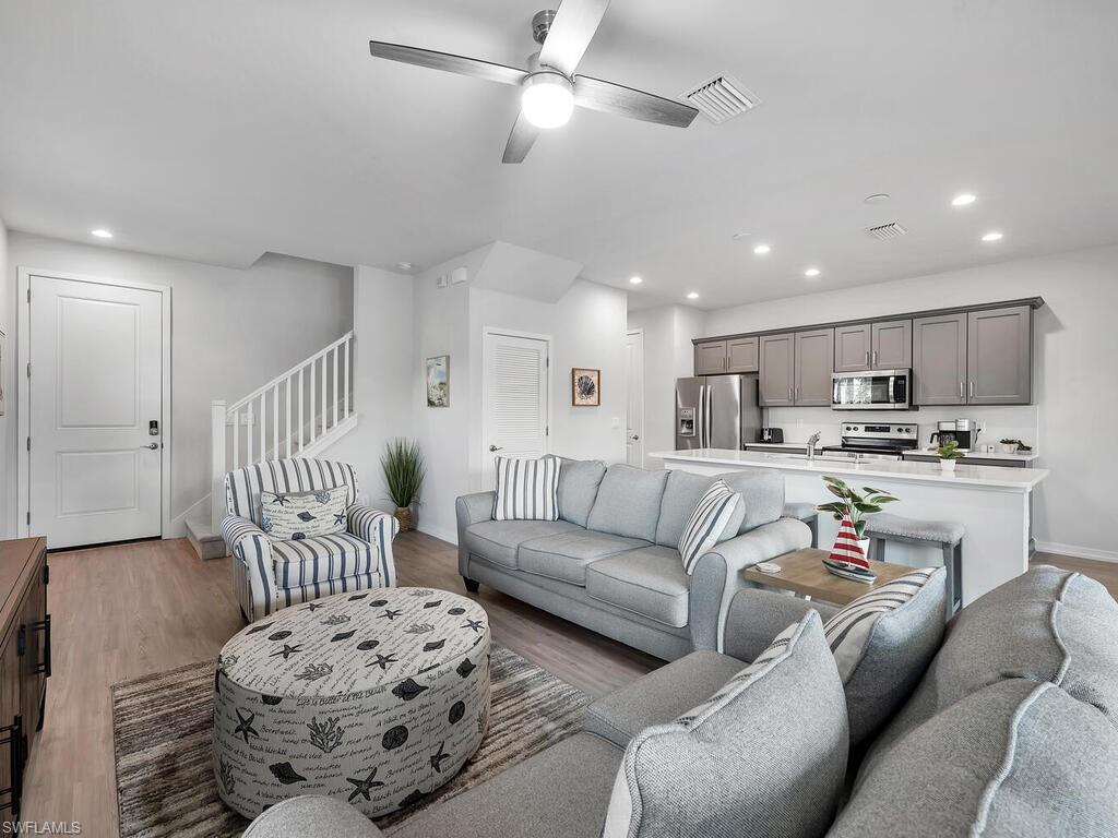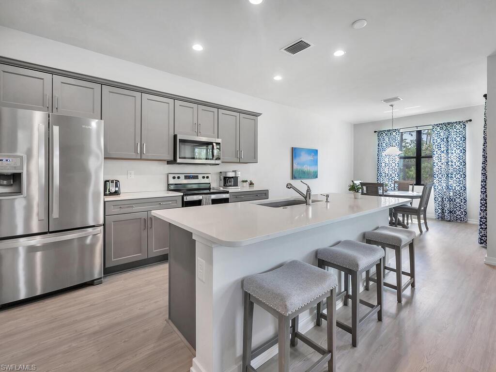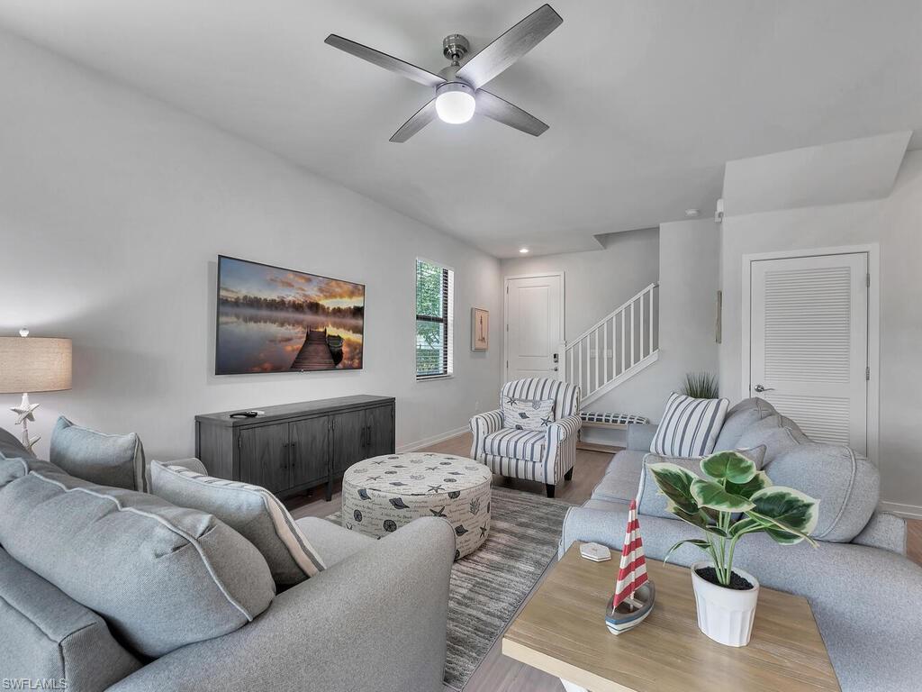 ONLY 6 HOMES IN THIS COMMUNITY HAVE THIS!!...Welcome to one of the most coveted locations in Hamilton Place, where only six residences enjoy this tranquil and UNOBSTRUCTED LAKE VIEW—and now, one of them can be yours! Nestled in this private, gated Toll Brothers community, this end-unit townhome offers not just a home, but a lifestyle defined by peaceful water views, tropical breezes, and a connection to nature that’s hard to find in the heart of Naples. Imagine starting your day on the screened lanai, sipping coffee while overlooking the calm lake waters, or winding down with an evening cocktail to the soft sounds of nature - sounds relaxing, doesn't it? Steps from the sparkling community pool and just minutes to downtown Naples, Park Shore, and Clam Pass beaches, this residence offers an ideal blend of serenity and accessibility. Inside, you’ll find 3 bedrooms + den, 2.5 baths, and an attached 2-CAR garage, with bright, open-concept living spaces filled with natural light thanks to its end-unit placement. Luxury vinyl plank flooring on the main level adds style and durability, while the upstairs features plush carpeting and a flexible loft/family room. The oversized primary suite is your private retreat, complete with a spa-like bath featuring dual sinks, a walk-in shower, vanity station, and lake-facing windows that flood the space with natural light. The gourmet kitchen is designed for both beauty and function, offering an oversized island with breakfast bar, upgraded countertops, and abundant cabinetry. Additional upgrades include a finished garage with polished floors, painted walls, and extra storage. This is more than a home—it’s a rare opportunity to own one of only six properties in Hamilton Place with this spectacular lakefront setting! Schedule your private tour today!